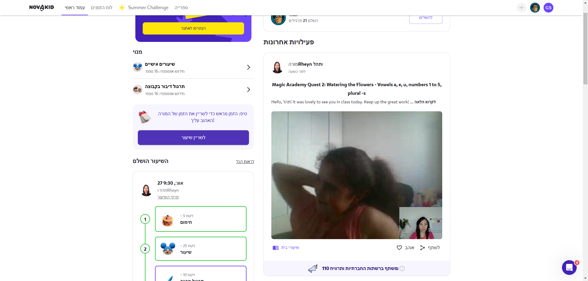 לחצו על "שיעור"