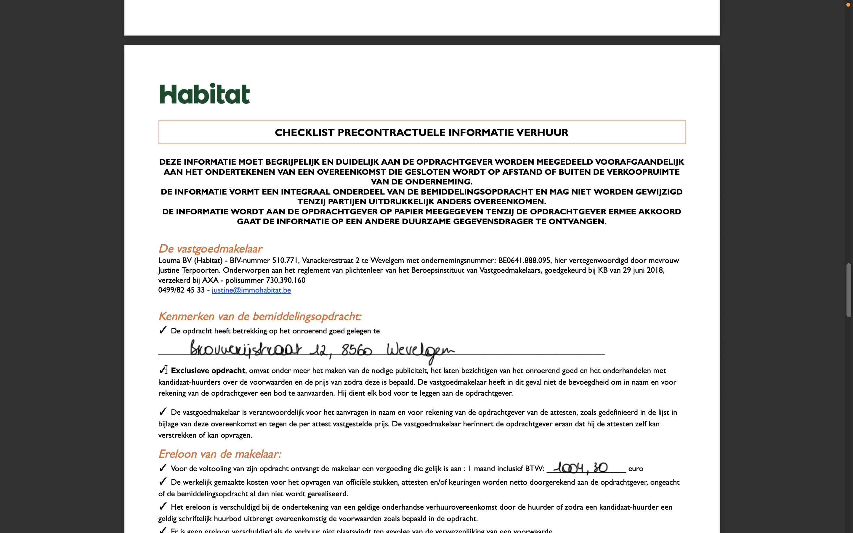 Naast de verhuuropdracht is er ook een checklist voor pre-contractuele informatie verhuur.