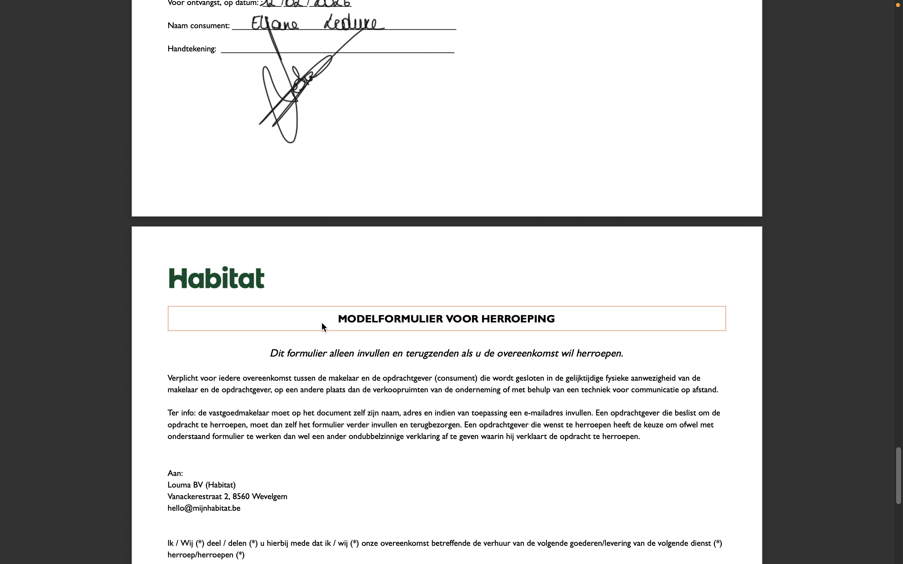 Bijgevoegd is een modelformulier voor herroeping. Dit hoeft op dit moment niet ingevuld te worden. Dat is alleen als zij binnen die veertien kalenderdagen de herroeping willen toepassen.