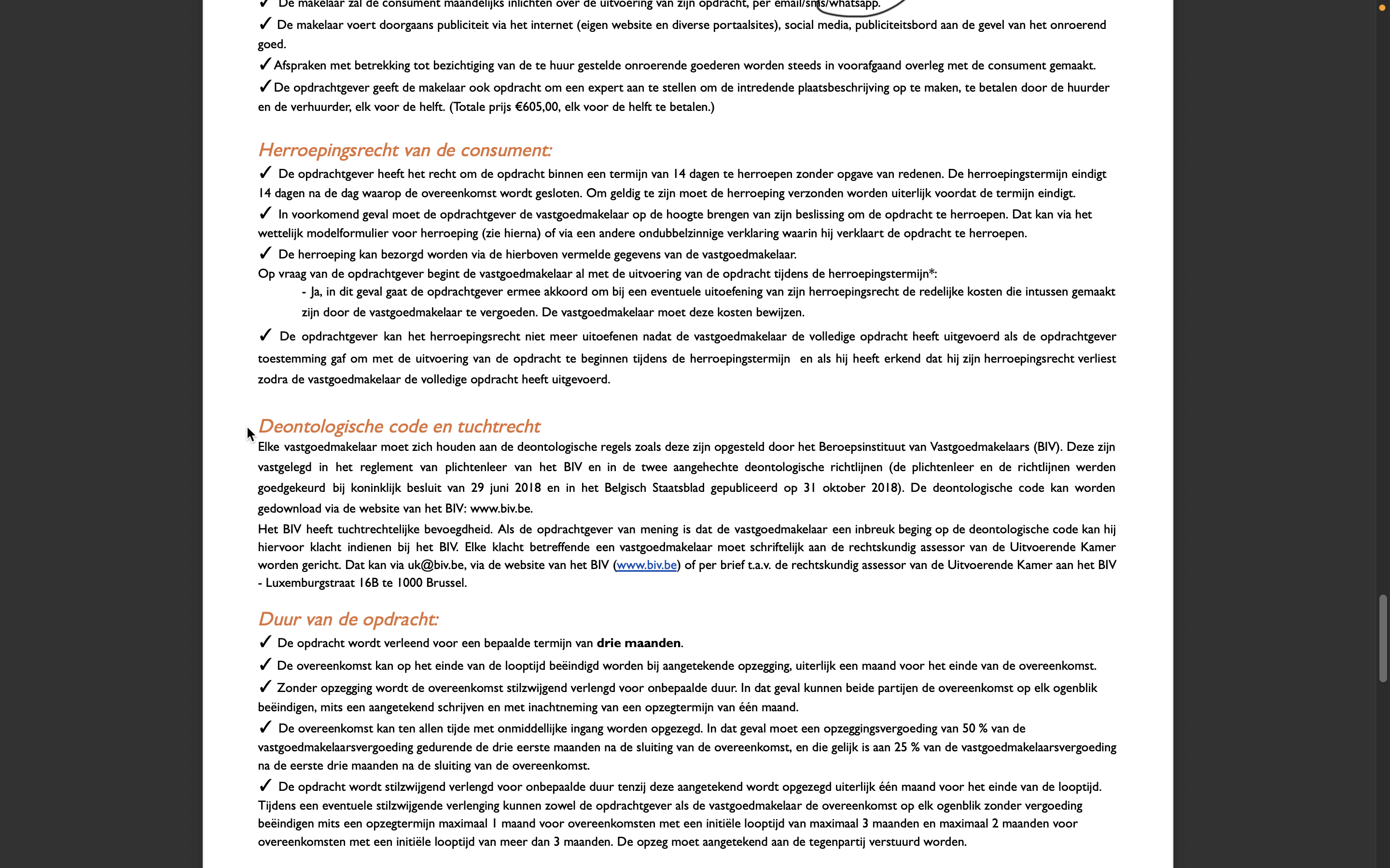 Hier vermeld ik enkel dat de deontologische code en het tuchtrecht. Dit zijn de regels en codes die wij als makelaar moeten gaan volgen. Niet veel belangrijks.