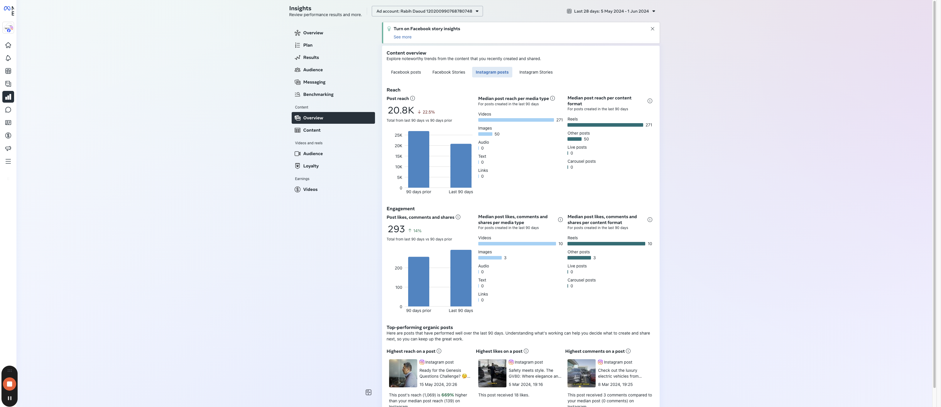 Click "Highest reach on a post ①"