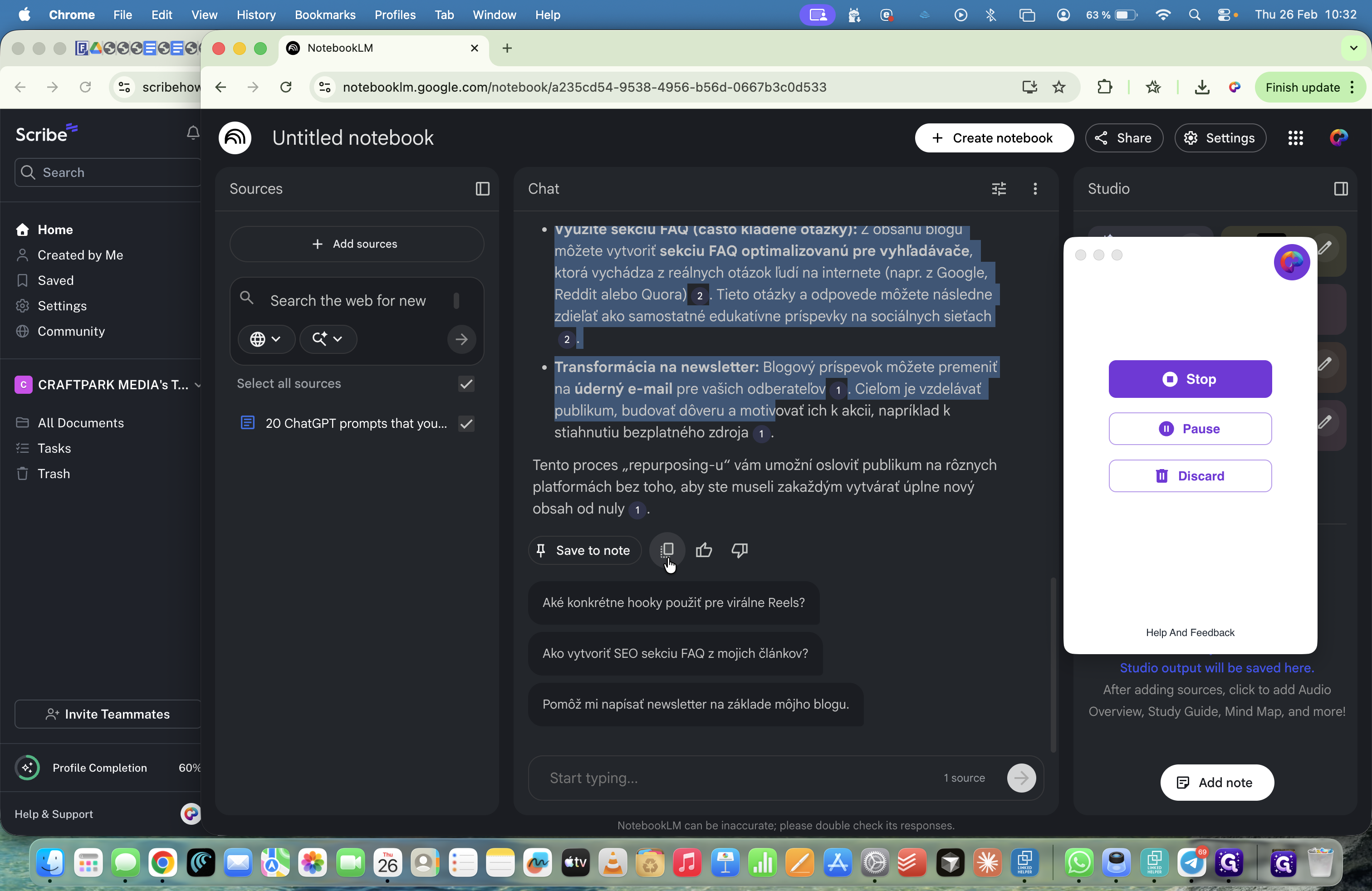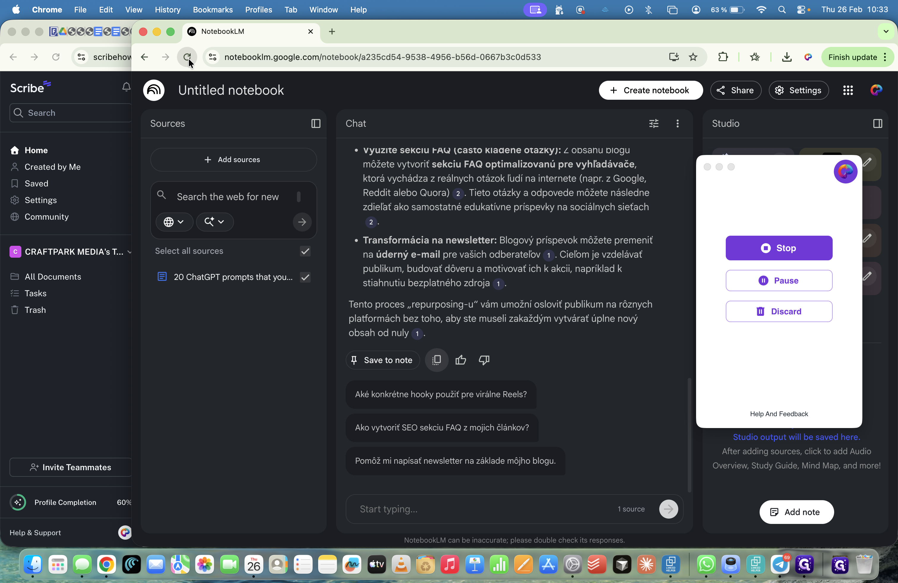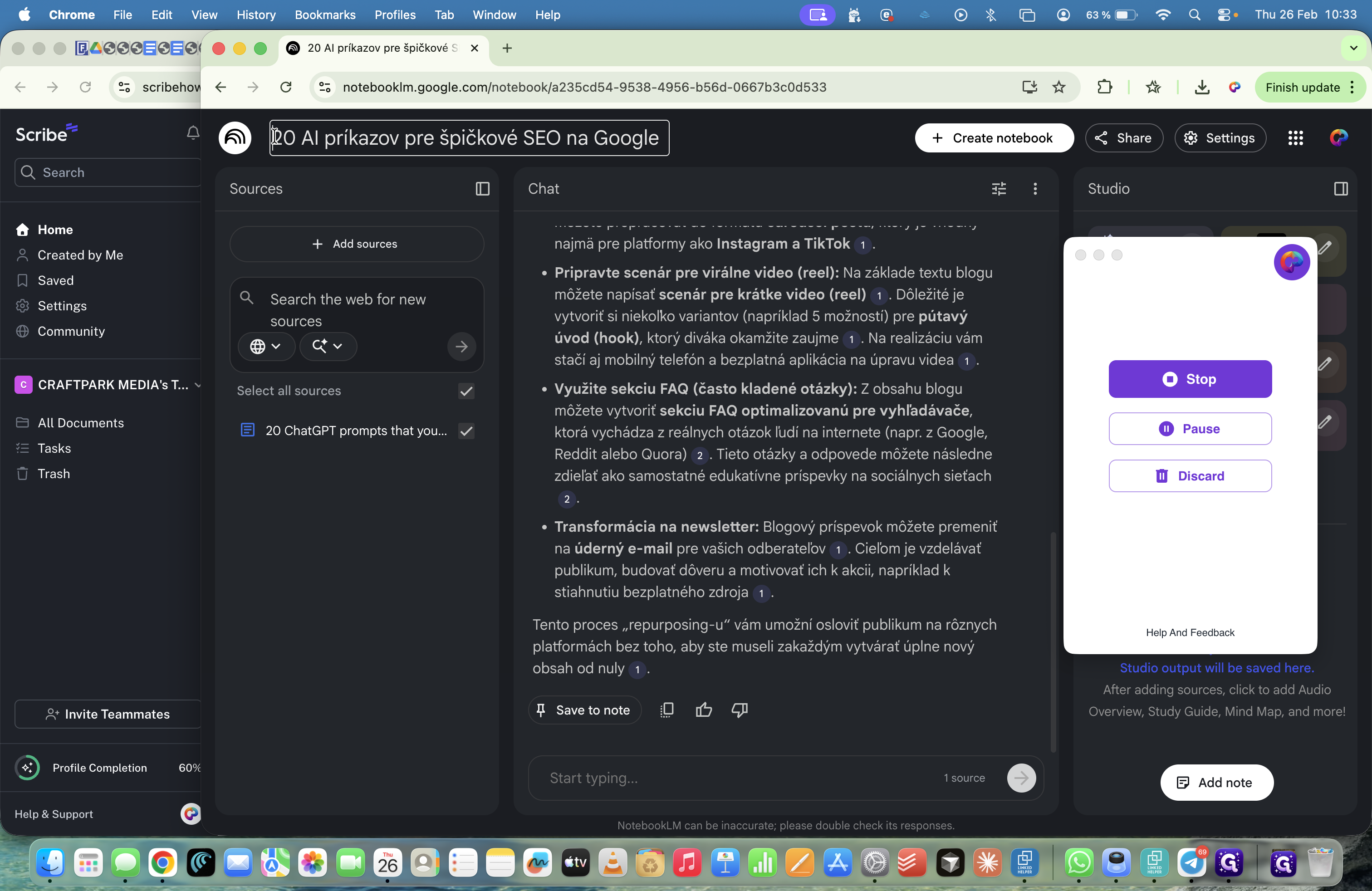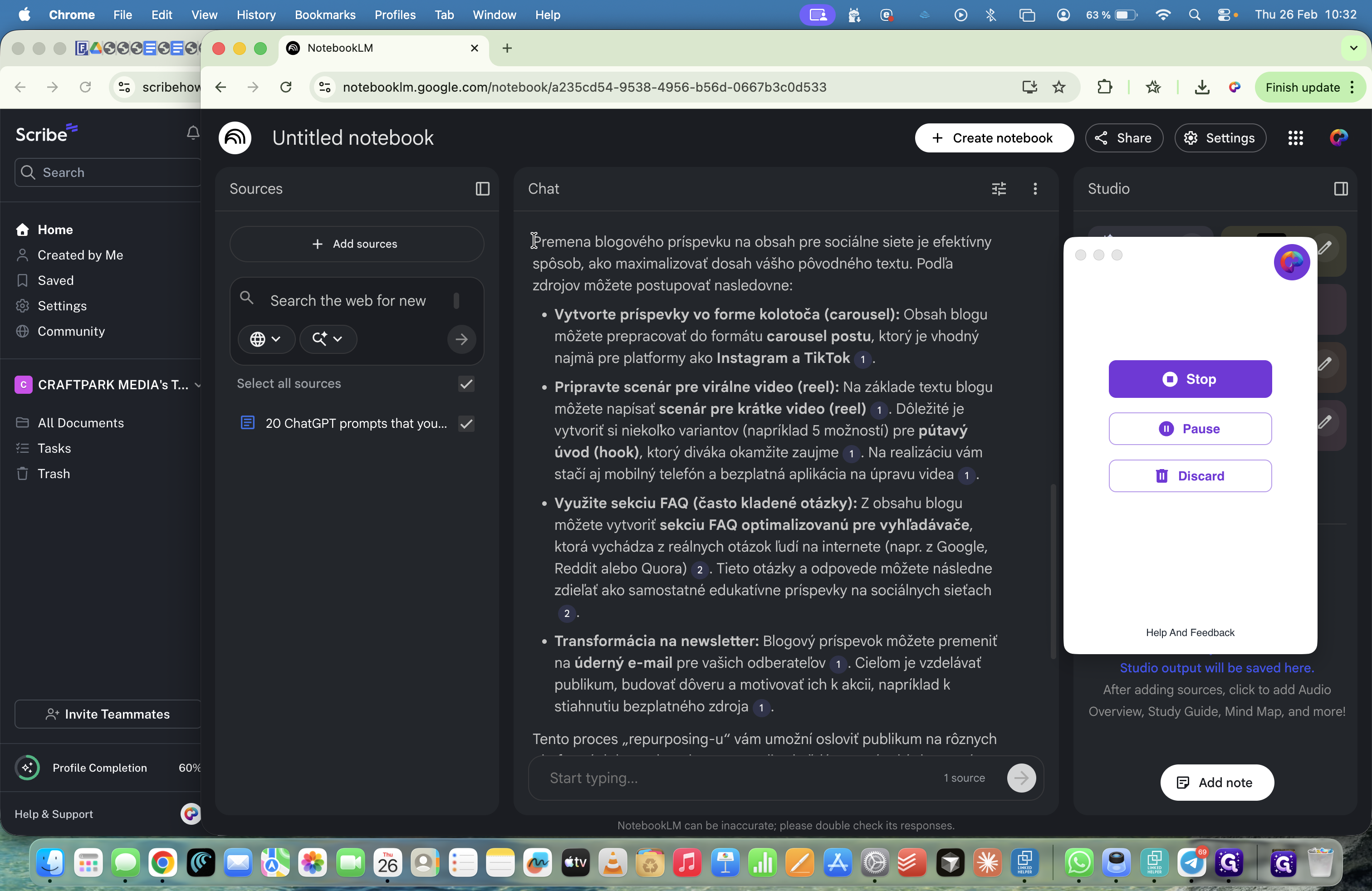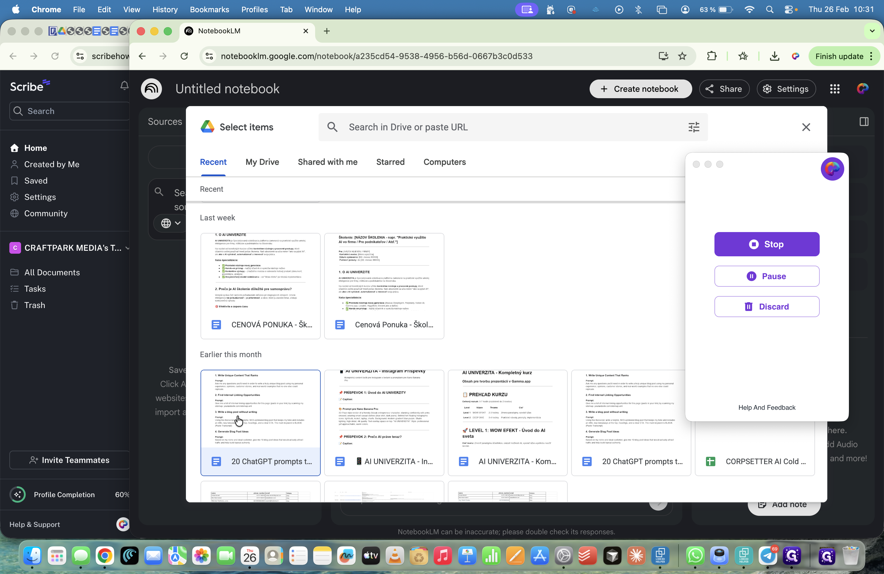 Môžeme tu nahrávať aj webstránky, spraviť sumarizáciu tej webstránky a nahrať to ako podklad.