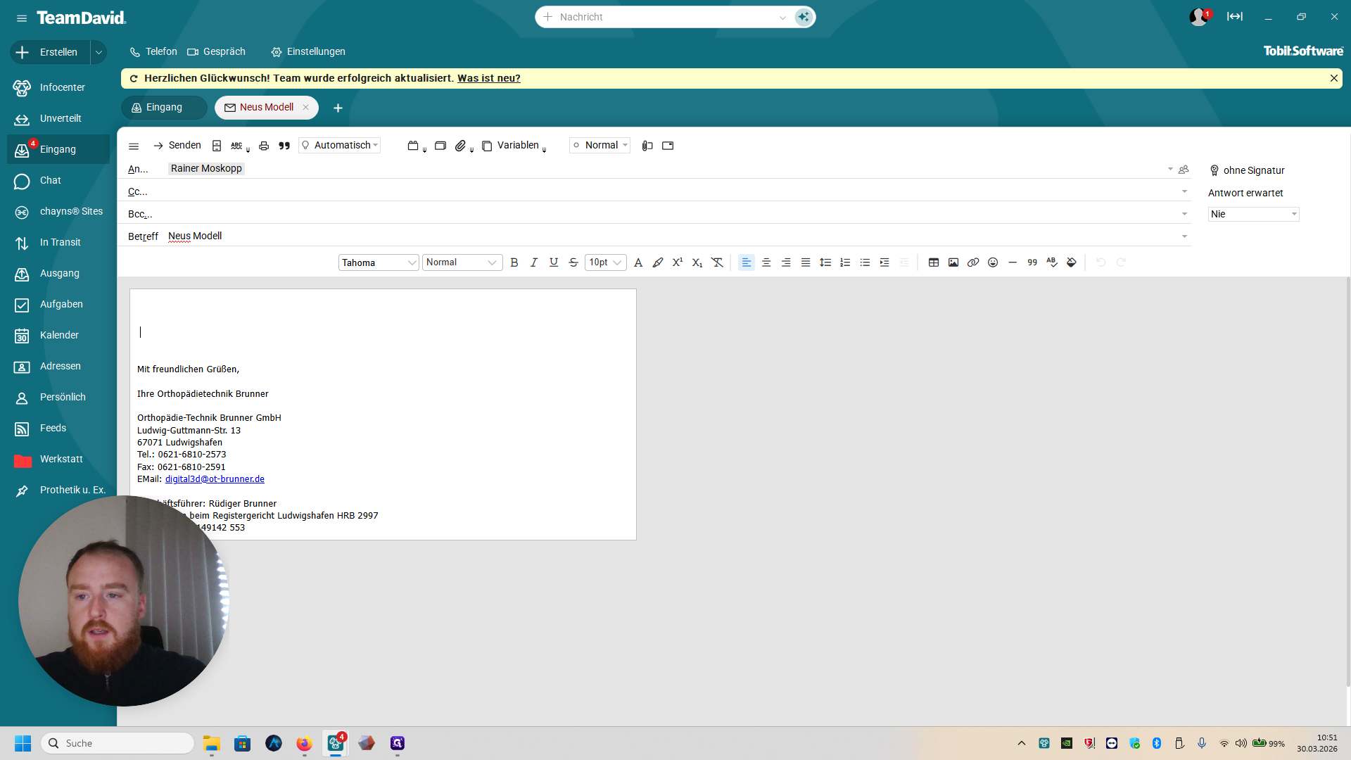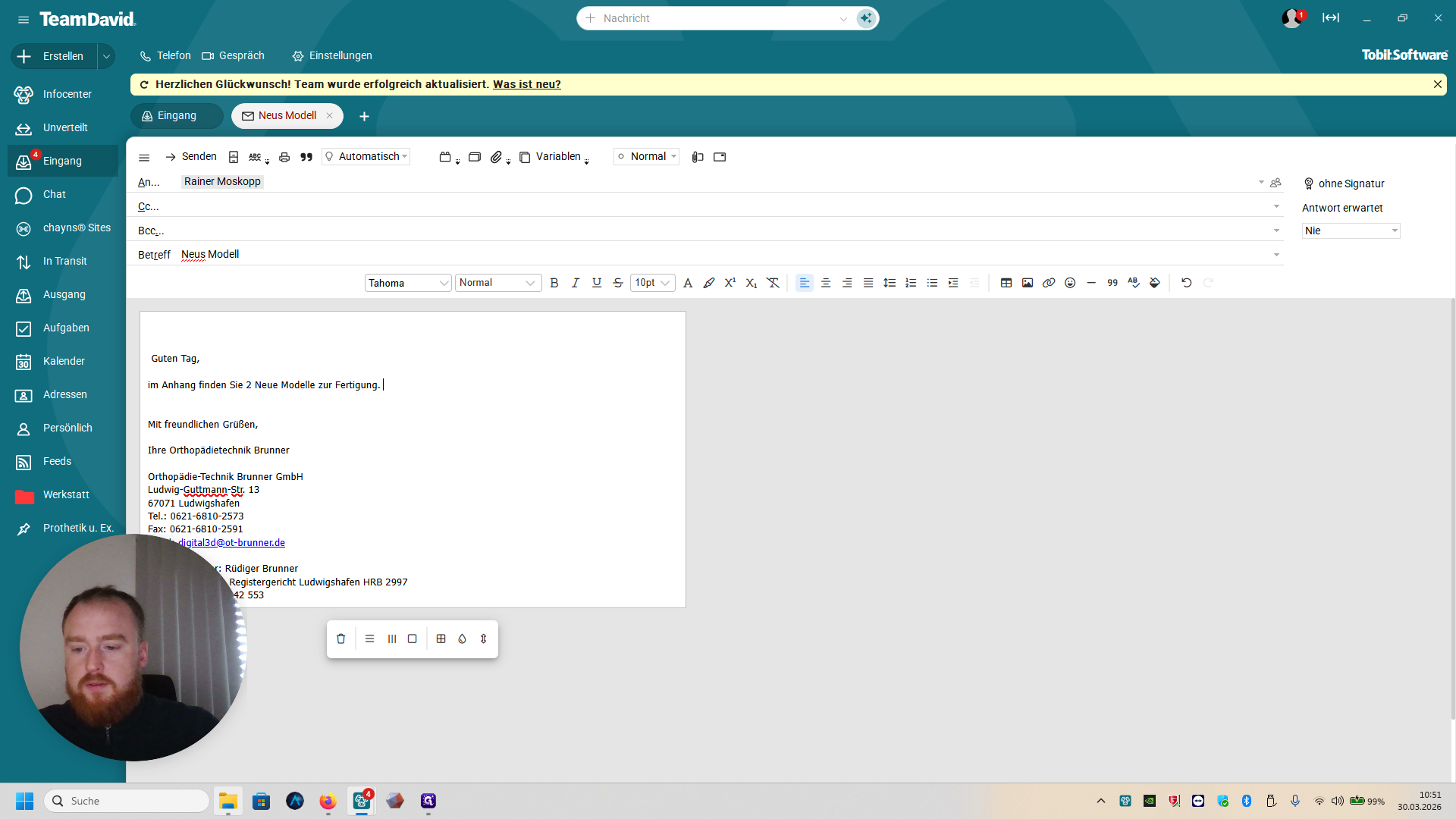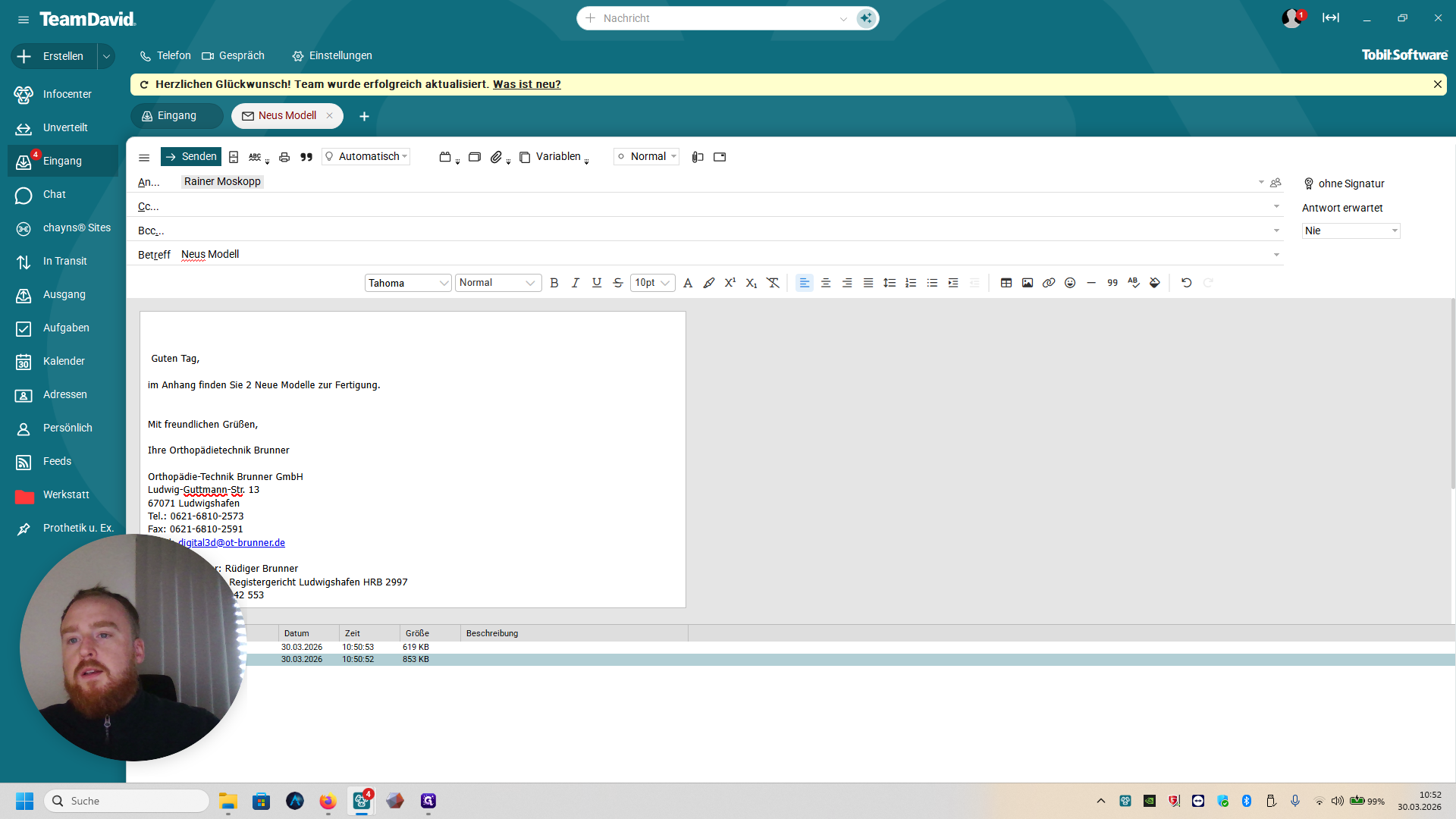 Und dann schreibt ihr hier: Guten Tag, im Anhang finden Sie zwei neue Modelle zur Fertigung.