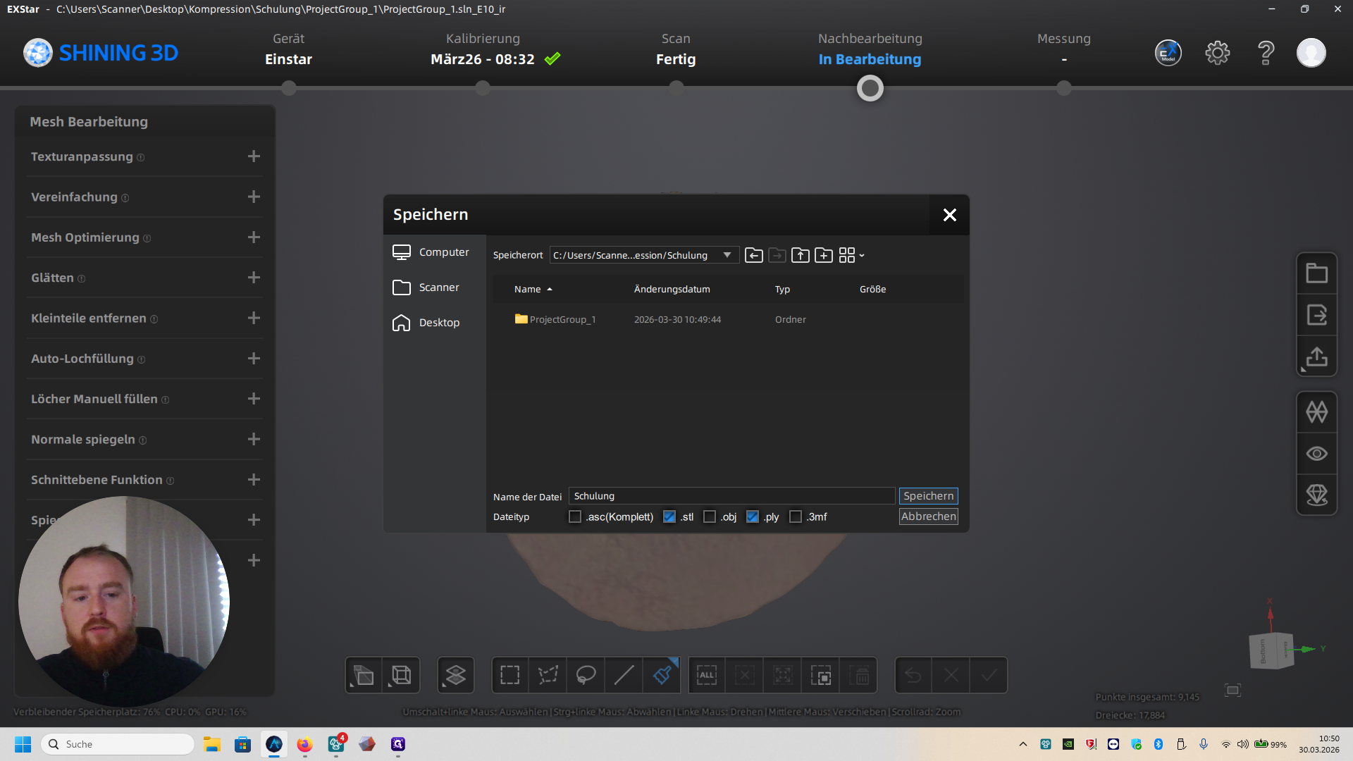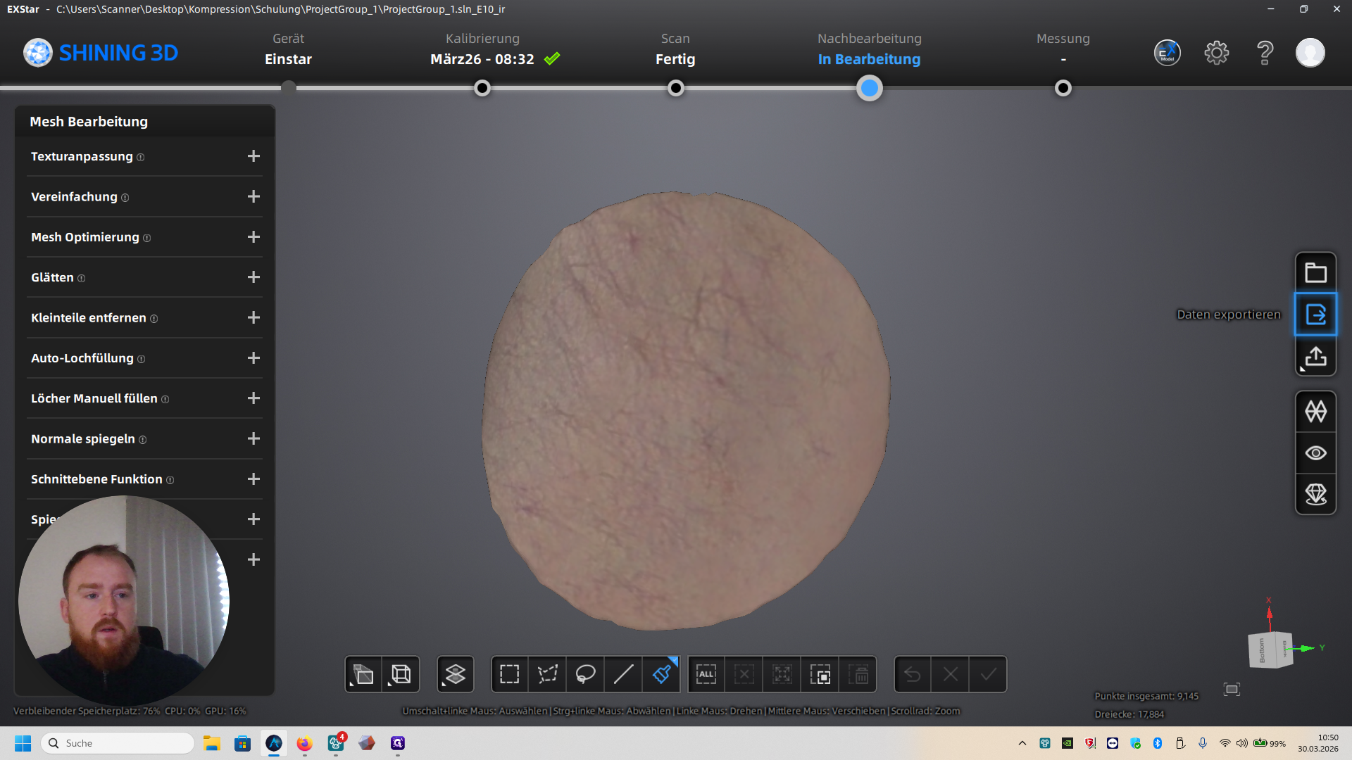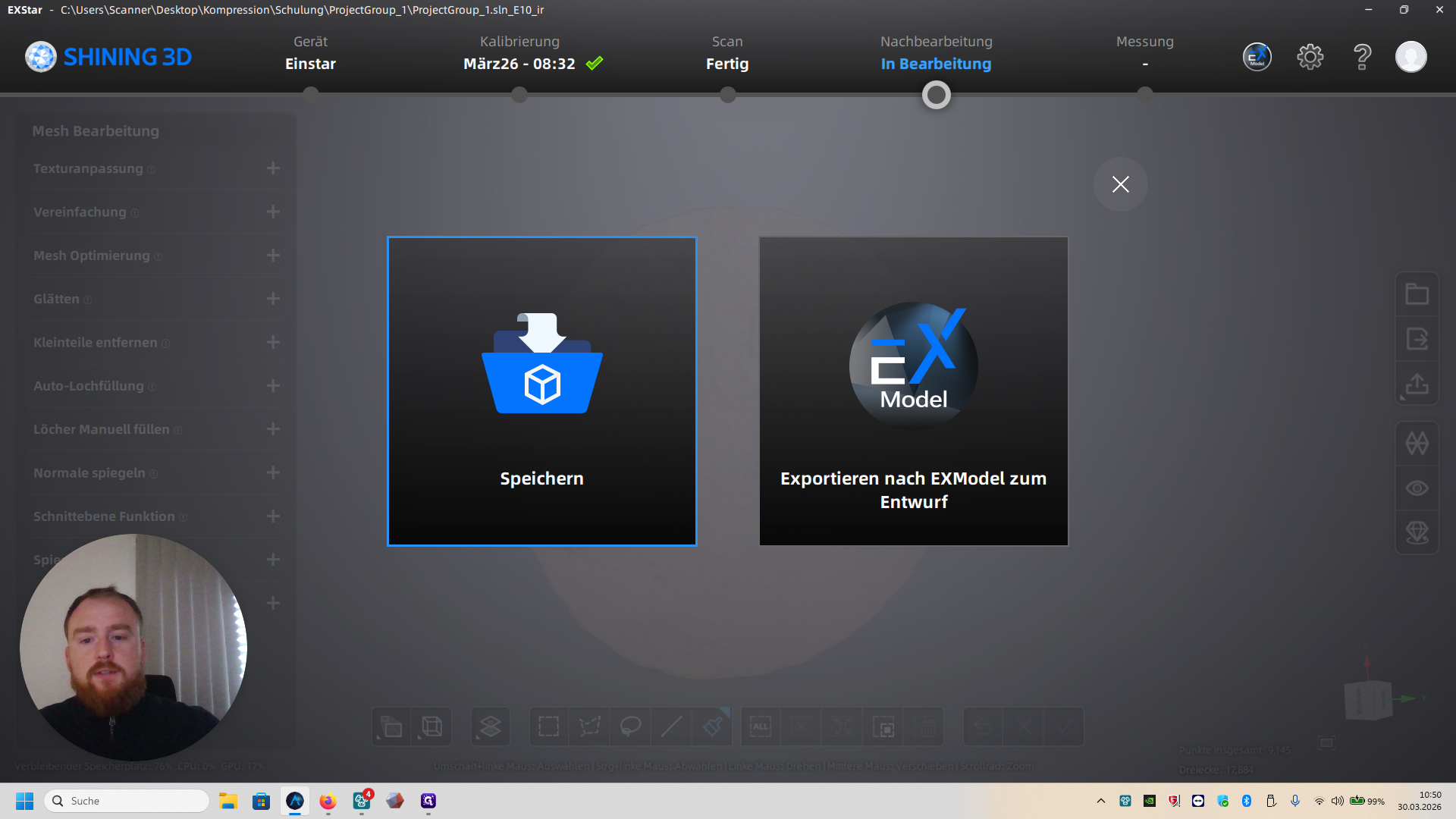 Anleitung: 3D-Scan und Modell-Export mit XStar Software