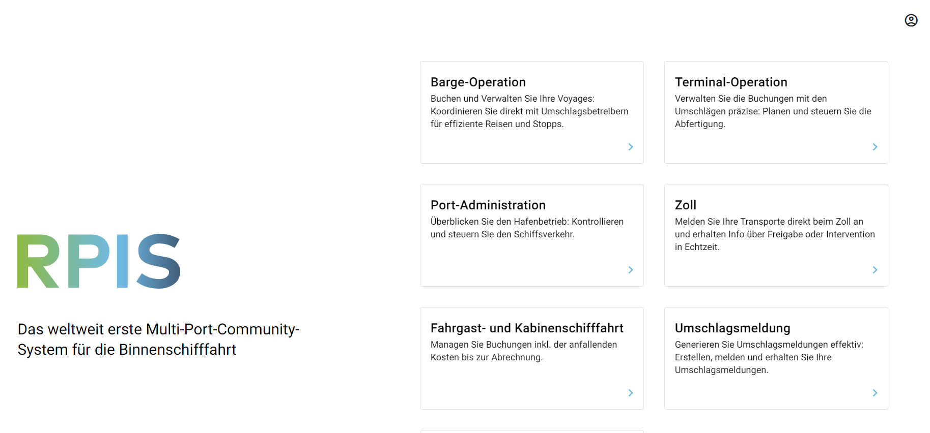 Auf der RPIS Plattform den Bereich „Fahrgast- und Kabinenschifffahrt“ wählen.