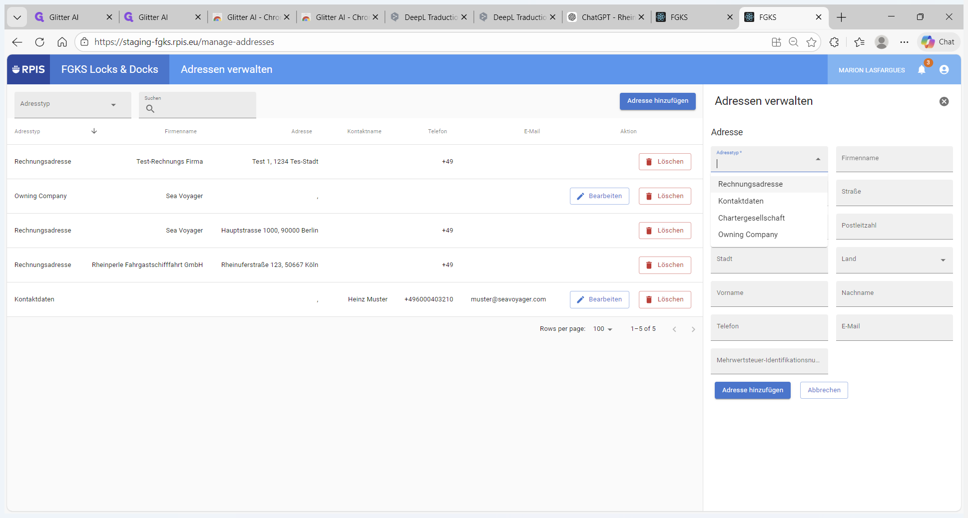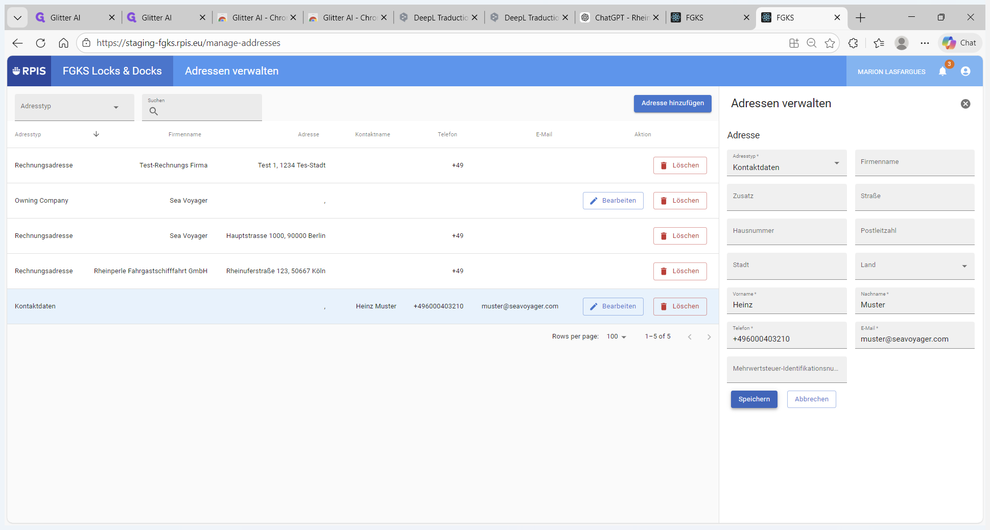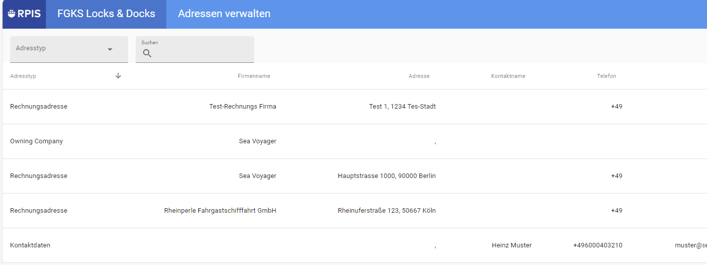 FGKS Locks & Docks: Adressen verwalten