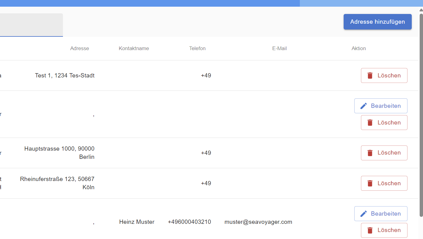 Die neu erfasste Adresse erscheint in der Liste aller Adressen.