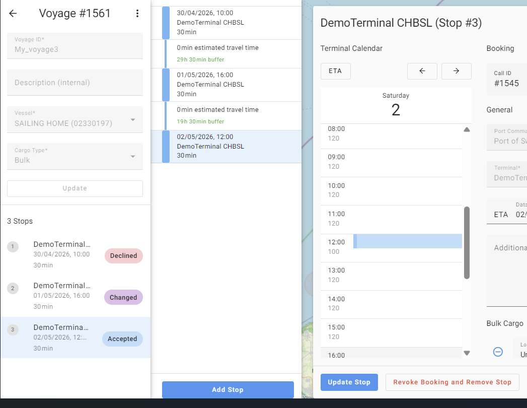 You will be notified directly by email of the status of your booking requests and of any changes. You can also manage your booking requests directly within the voyage plan.