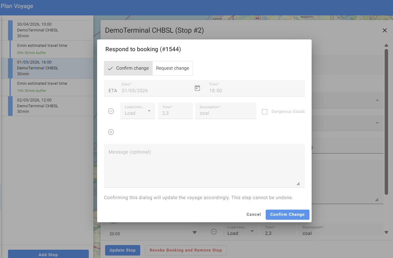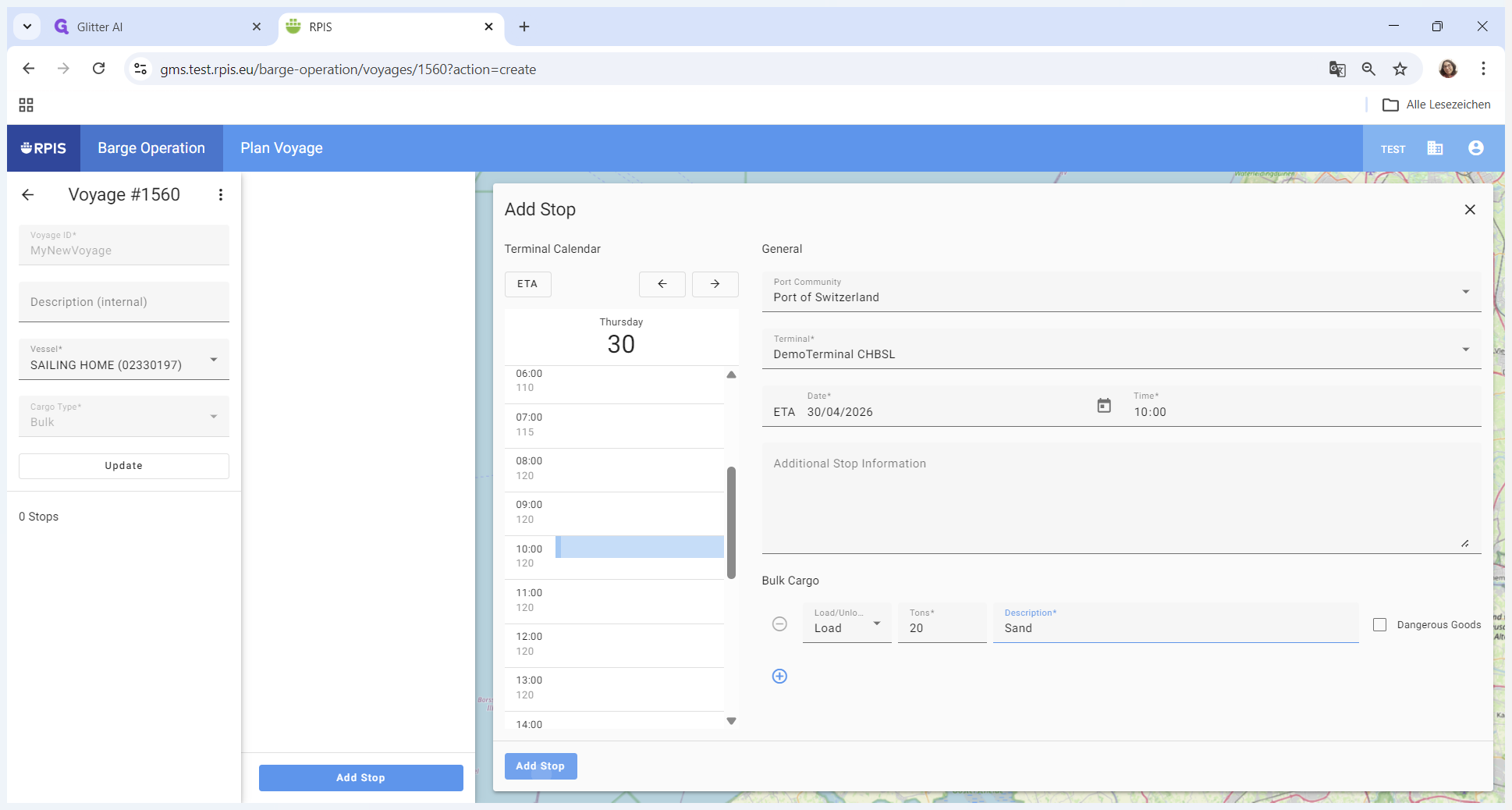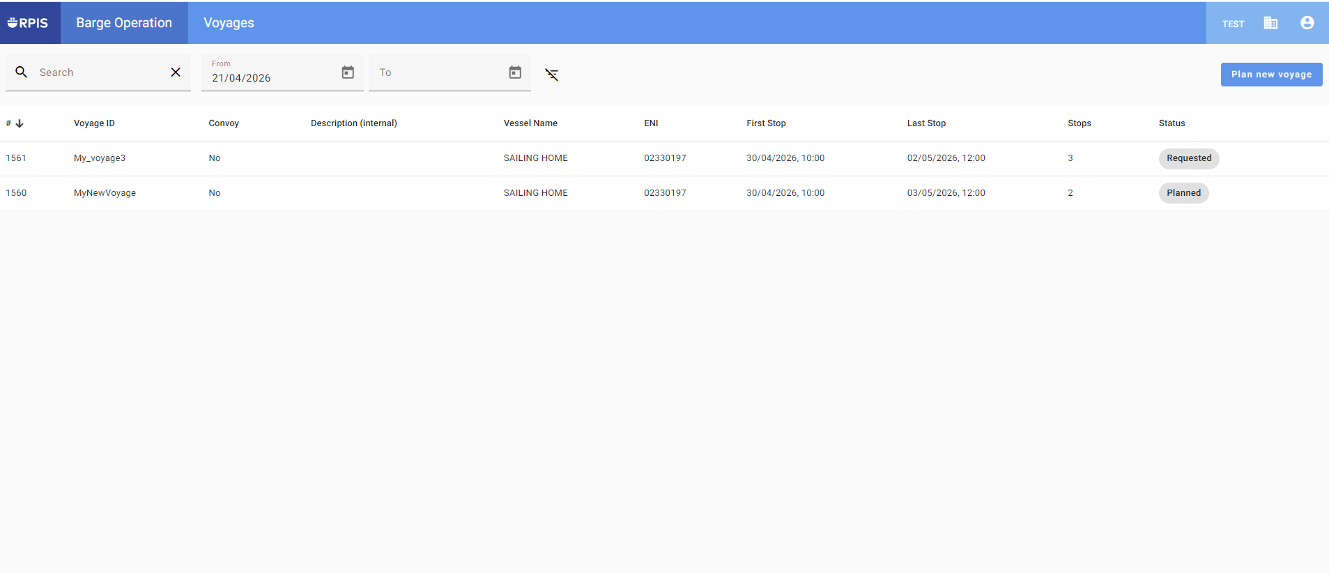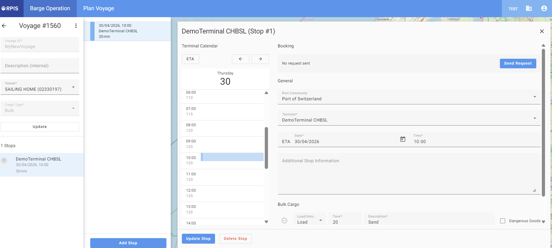 As a barge operator, you can plan voyages in RPIS, send booking requests to terminals, and arrange appointments.