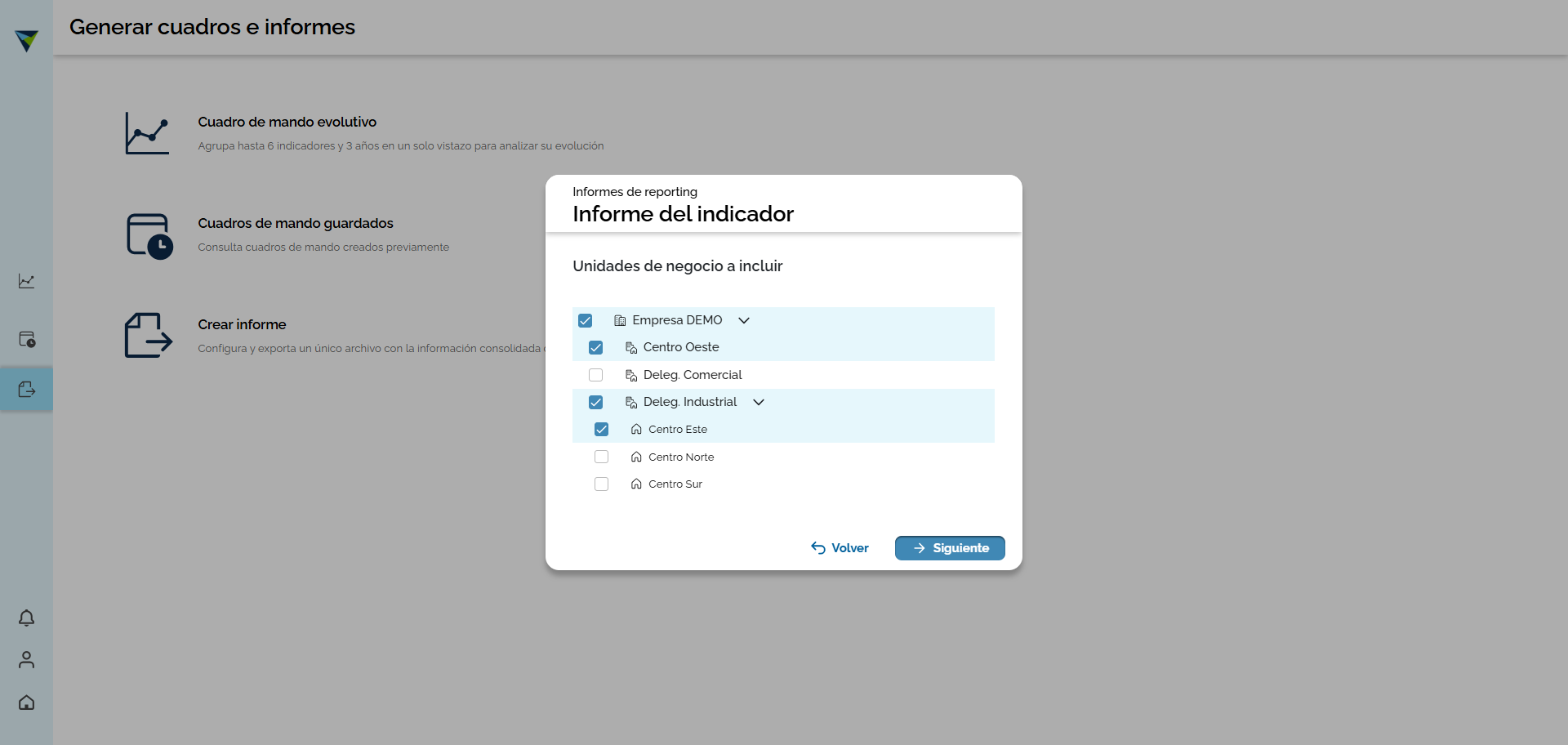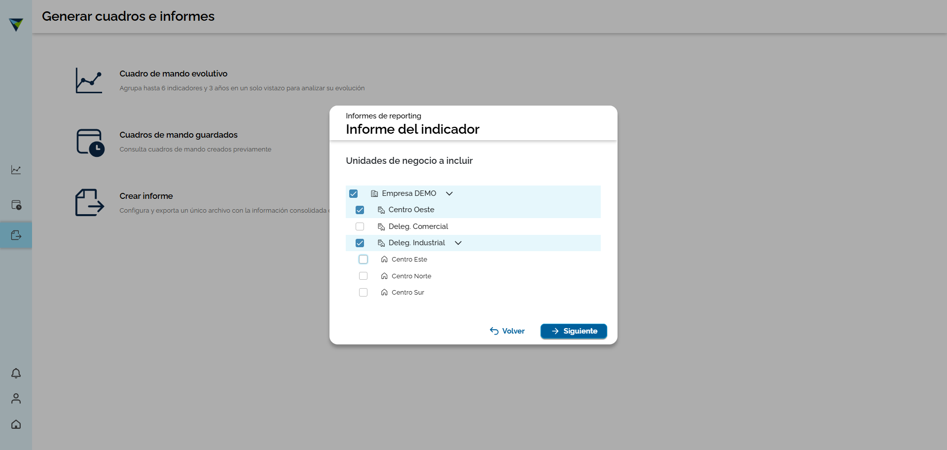 En esta guía aprenderás a visualizar informes consolidados de las distintas unidades de negocio, seleccionando los indicadores necesarios para su análisis. El objetivo es facilitar el acceso y la interpretación de la información consolidada de cada unidad de negocio, permitiendo elegir periodos, centros y tipos de indicadores según las necesidades.