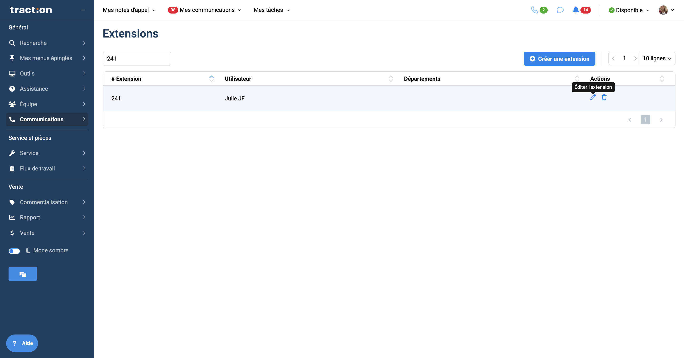 Vérifier que l'extension n'est pas associée à un autre employé
