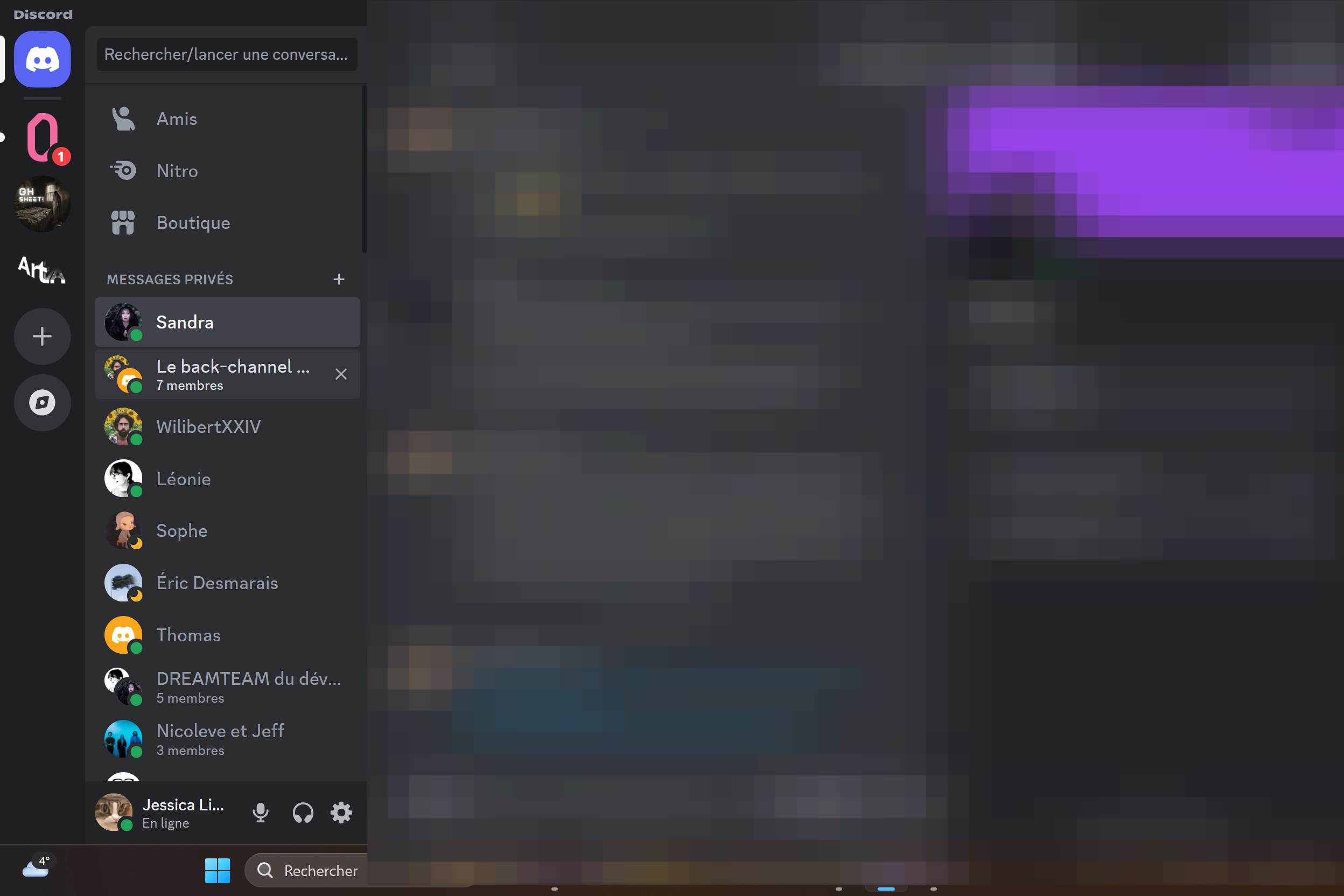 Pour envoyer un message sur Discord, ouvrez l'application. Allez dans vos messages privés. Vous pouvez changer de destinataire en cliquant ici.