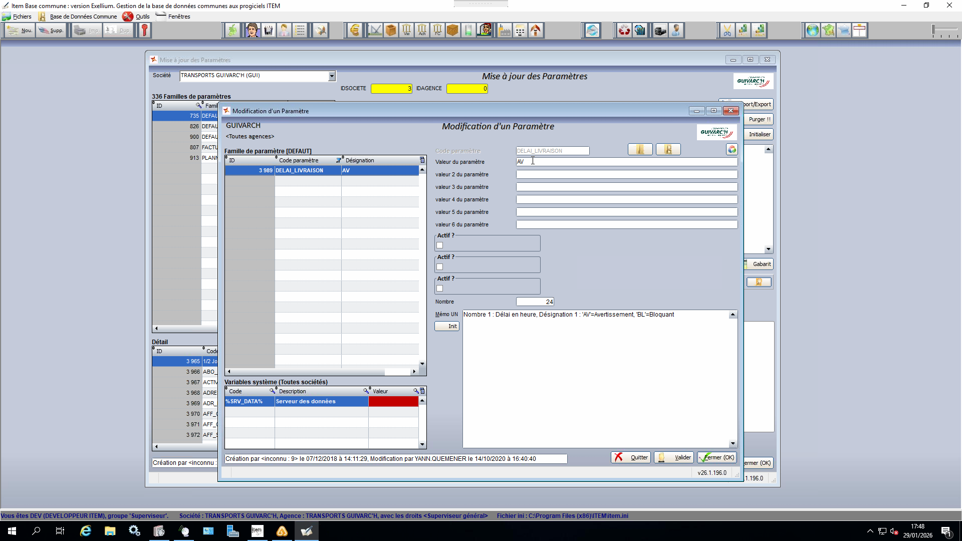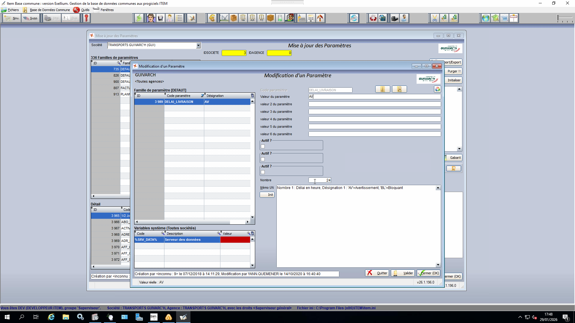Donc, jusqu'à présent, c'était fixé à vingt-quatre heures pour la société Transport Guivarc'h. Selon la société, vous définissez ou suivez le même chemin. Donc, lorsque vous avez terminé de remplir ces paramètres, validez puis fermez.