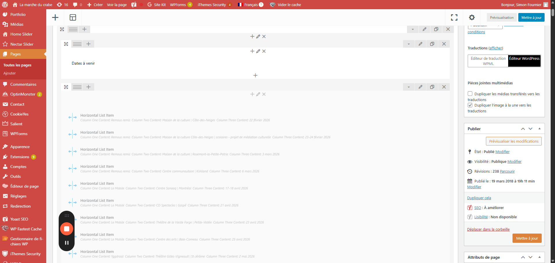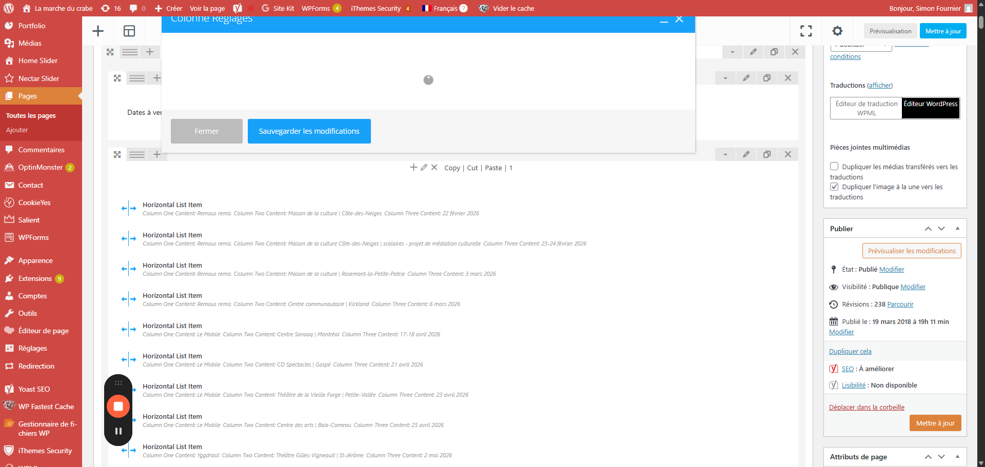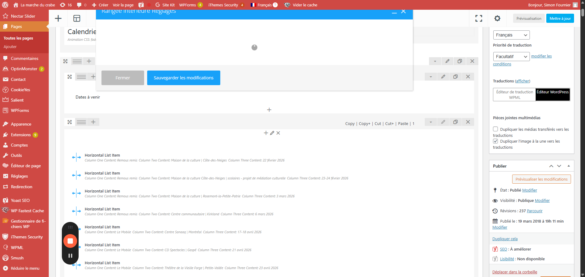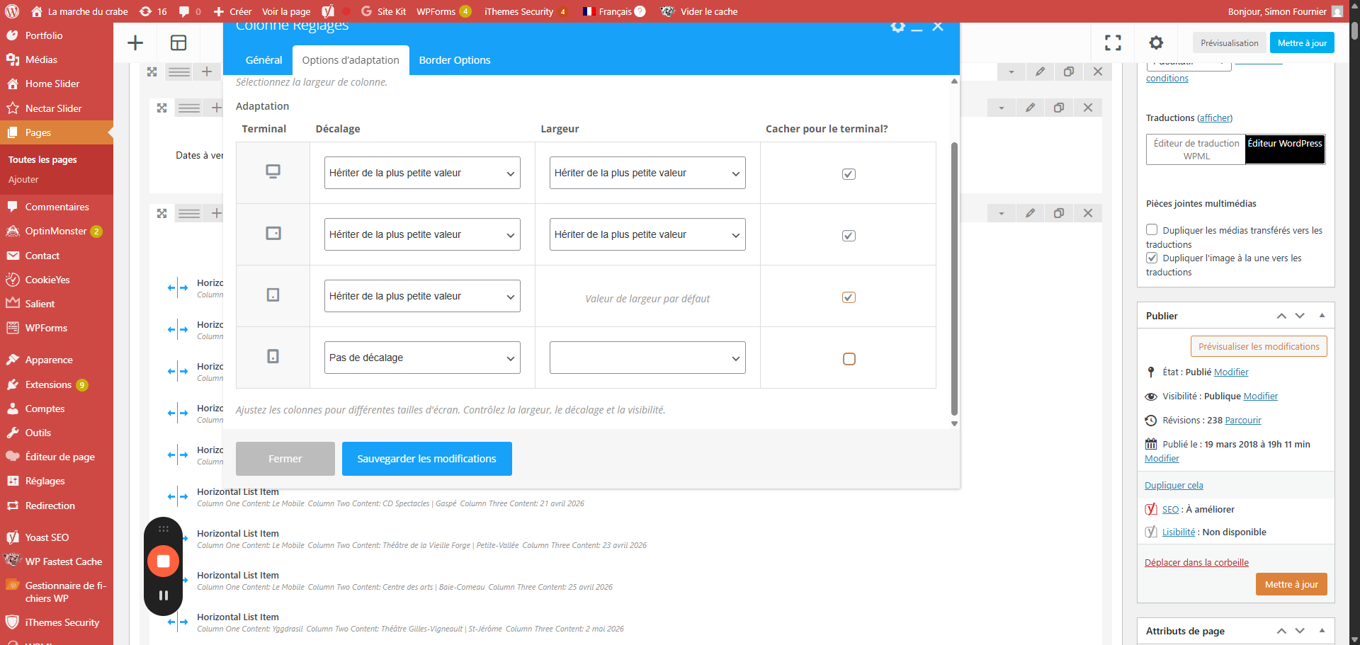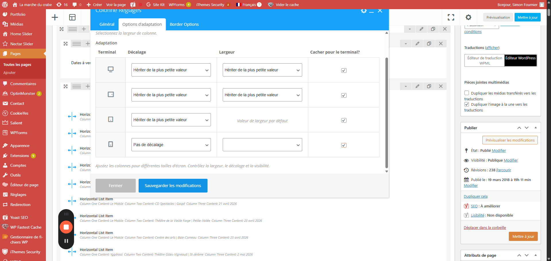 Cochez toutes les cases présentes pour cacher la section pour tous les terminaux. Ensuite on sauvegarde les modifications et on met à jour la page.