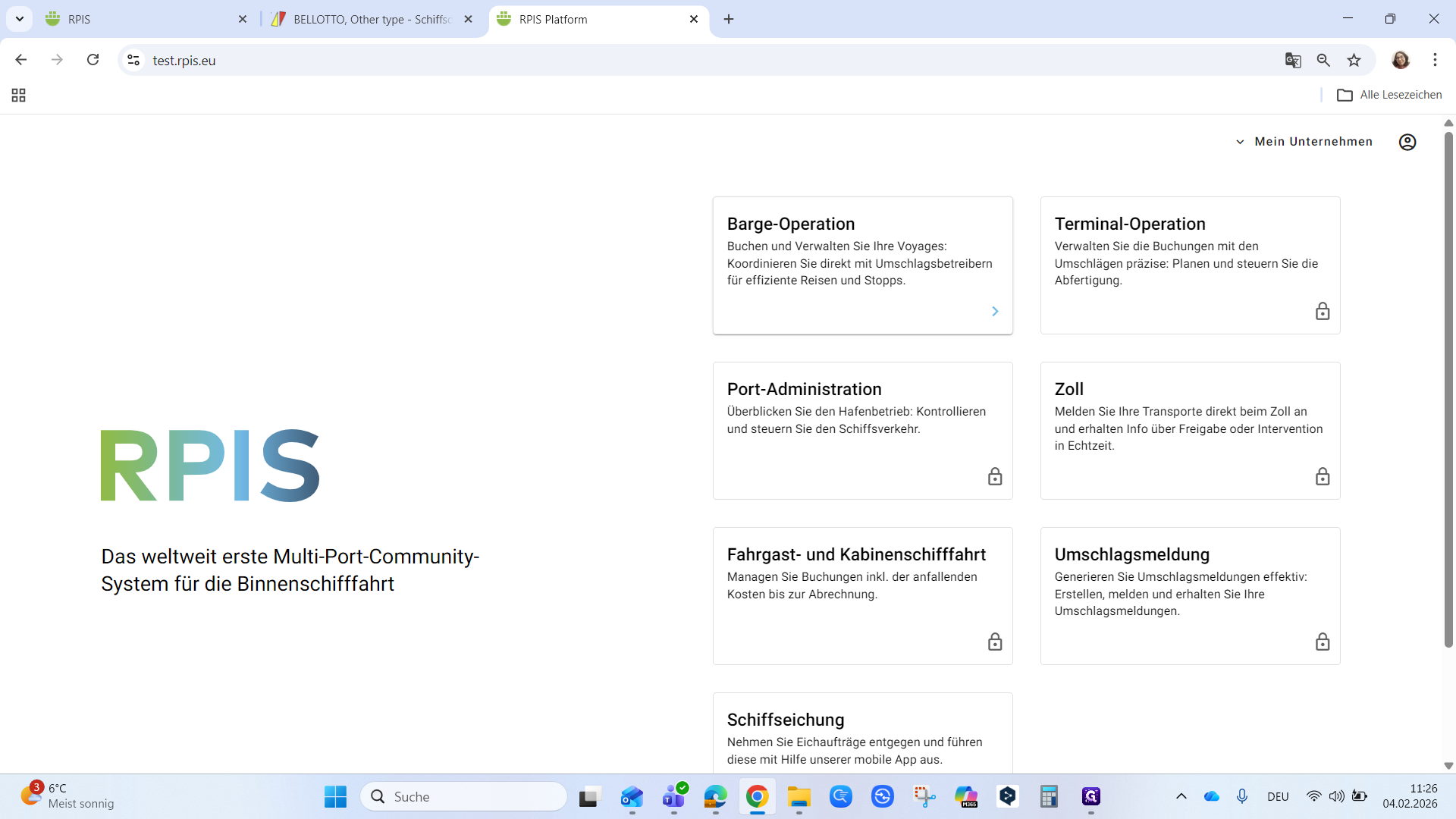 Auf RPIS Platform den Bereich "Barge-Operation" wählen.