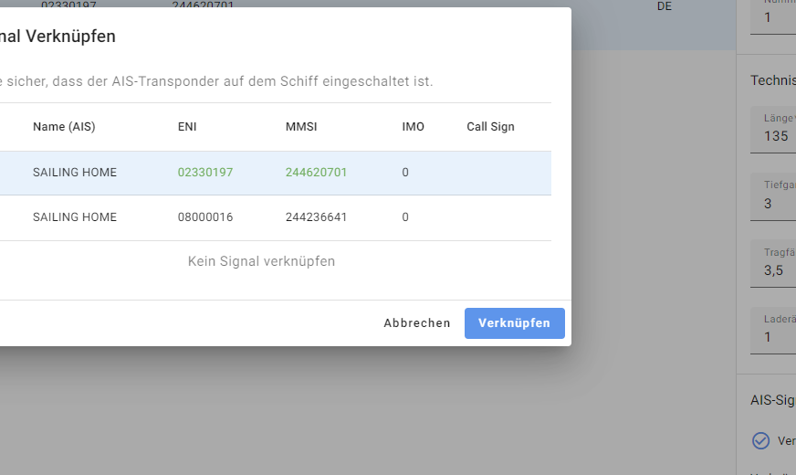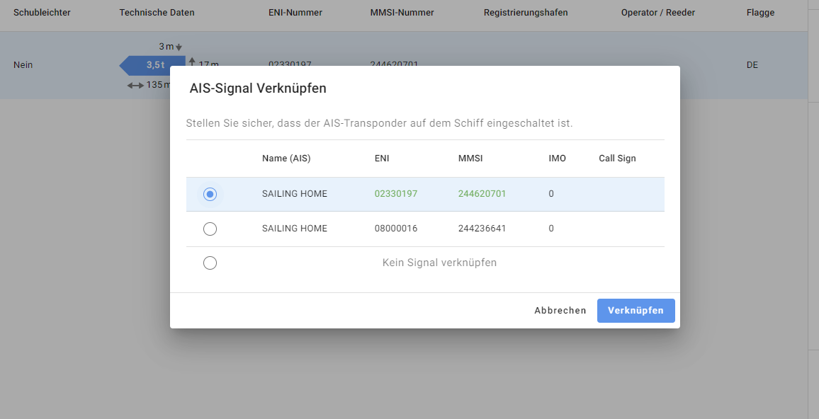 AIS-Signal Verknüpfung überprüfen und ggf. einrichten.