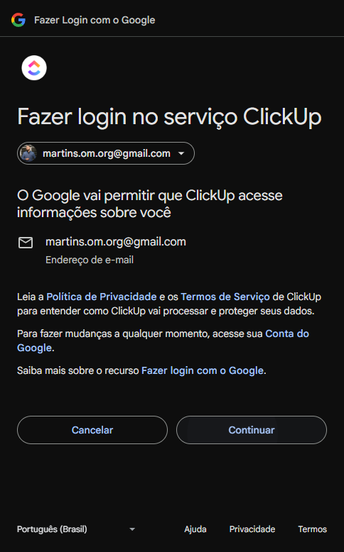 Existem diferentes formas. Dessa forma, o acesso ao ClickUp está configurado.