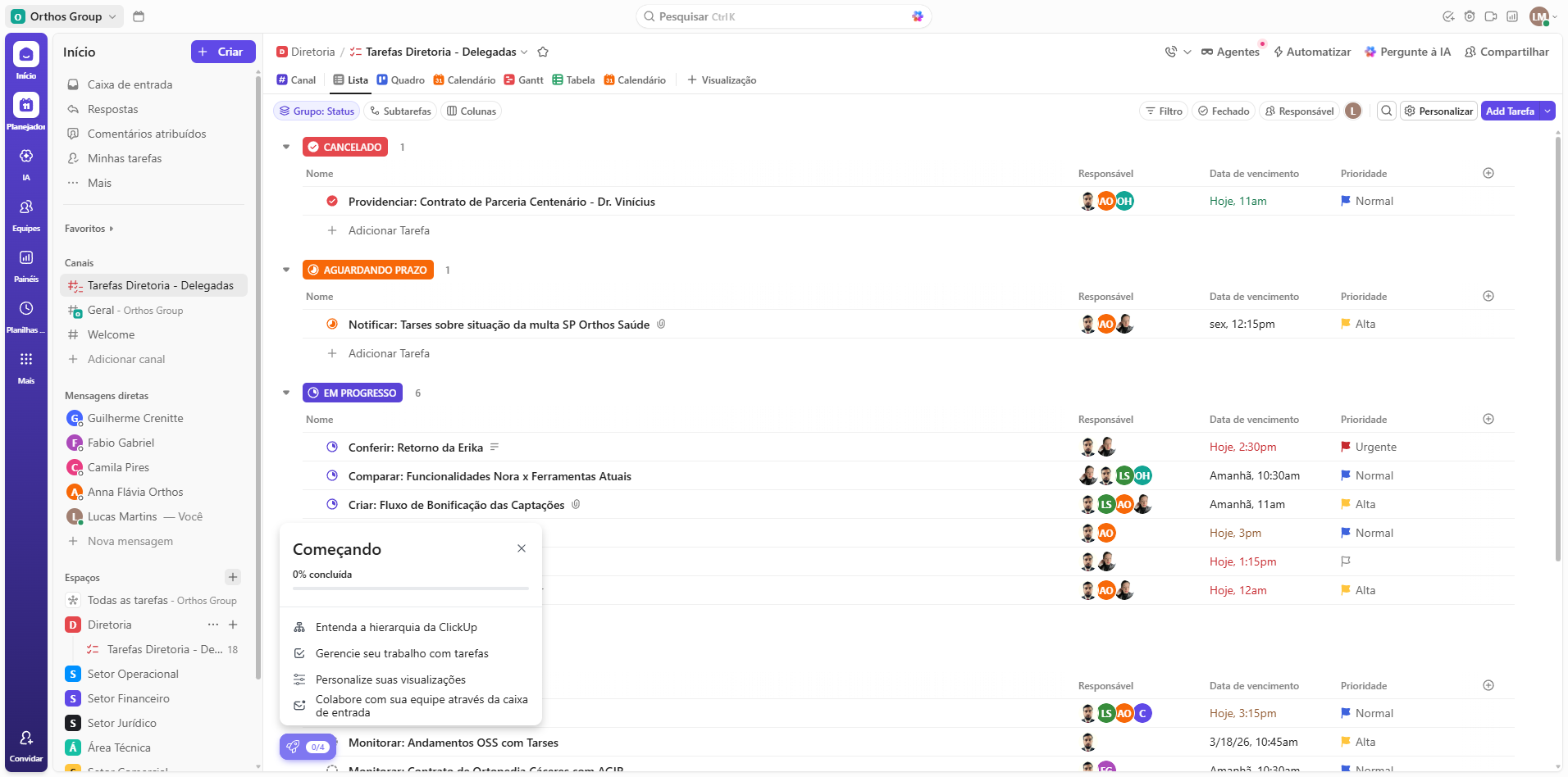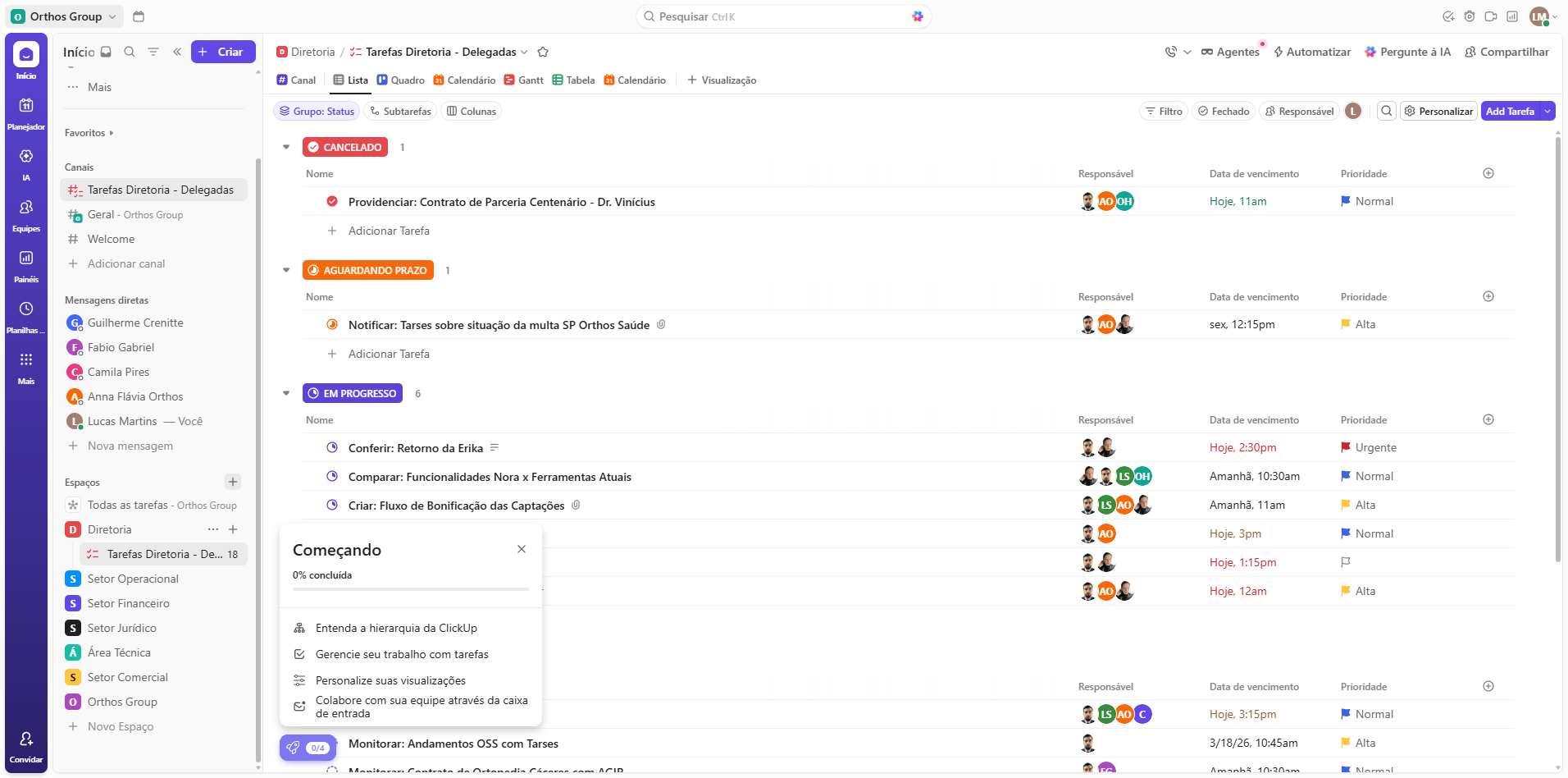 Nisso, o ClickUp vai abrir alguns tutoriais. Assistam, é interessante. Mas, nesse momento, vou mostrar para vocês o layout base dele, tá?