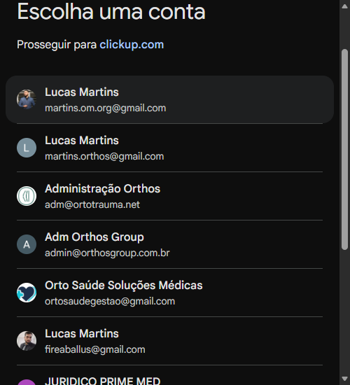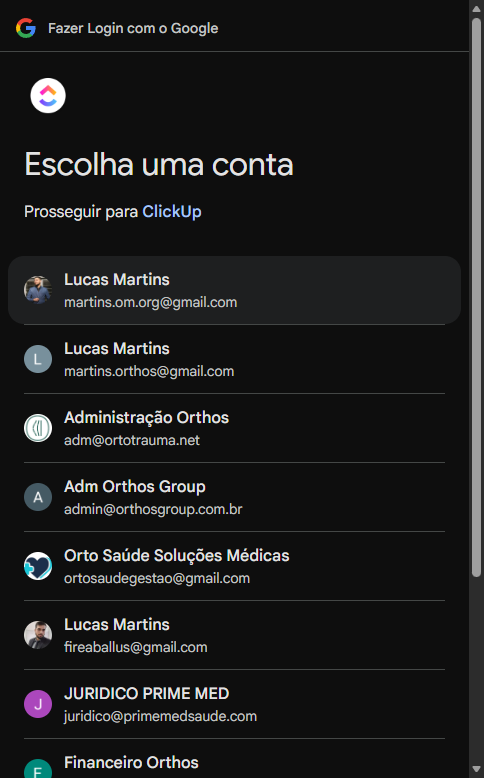 Clicando, acessem com o e-mail de vocês. Aí, clique em "continuar como" ou "acessar com o Google". Aí vão aparecer as opções. Vocês escolhem o e-mail Orthos de vocês, para o qual foram convidados.
