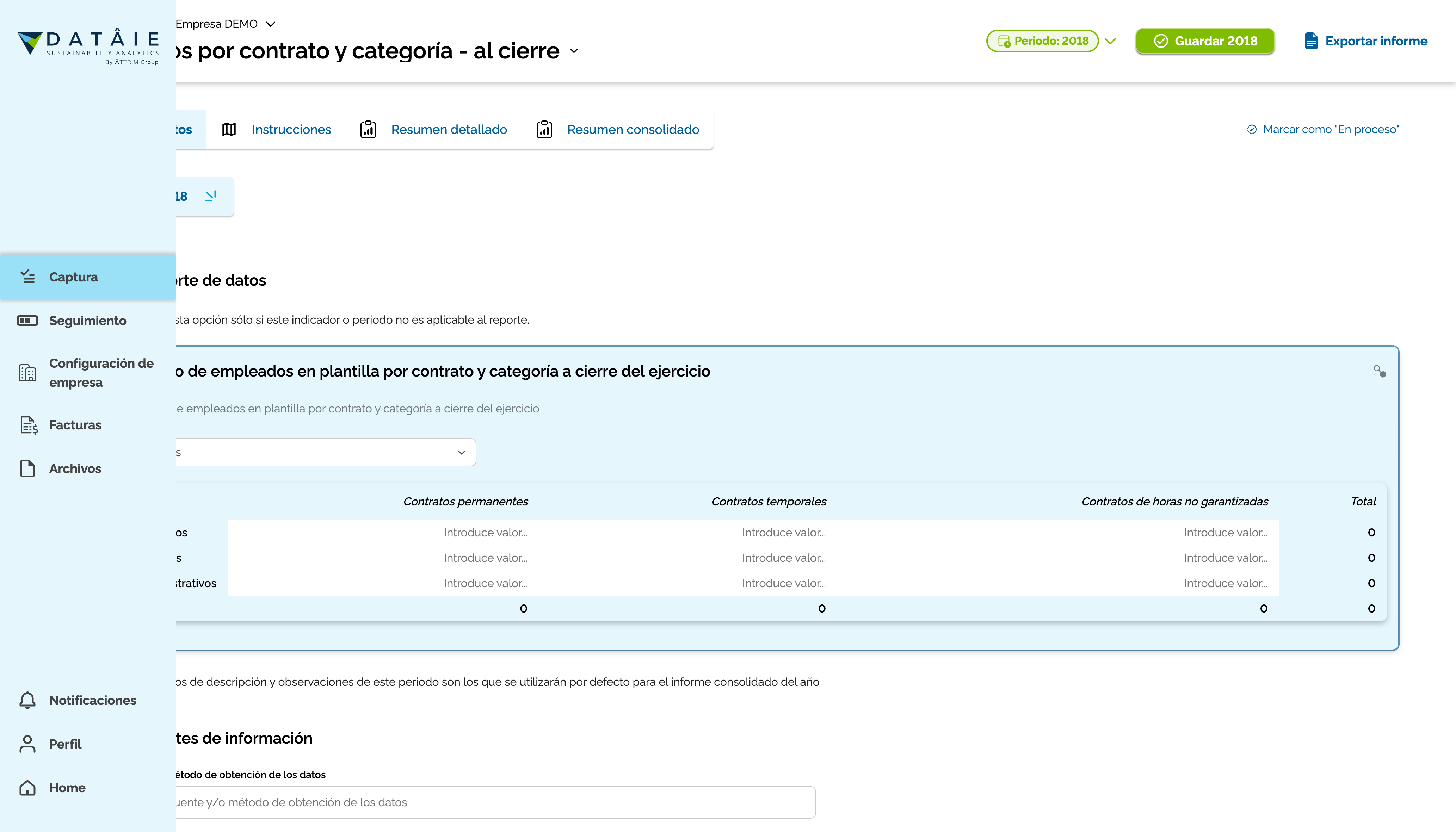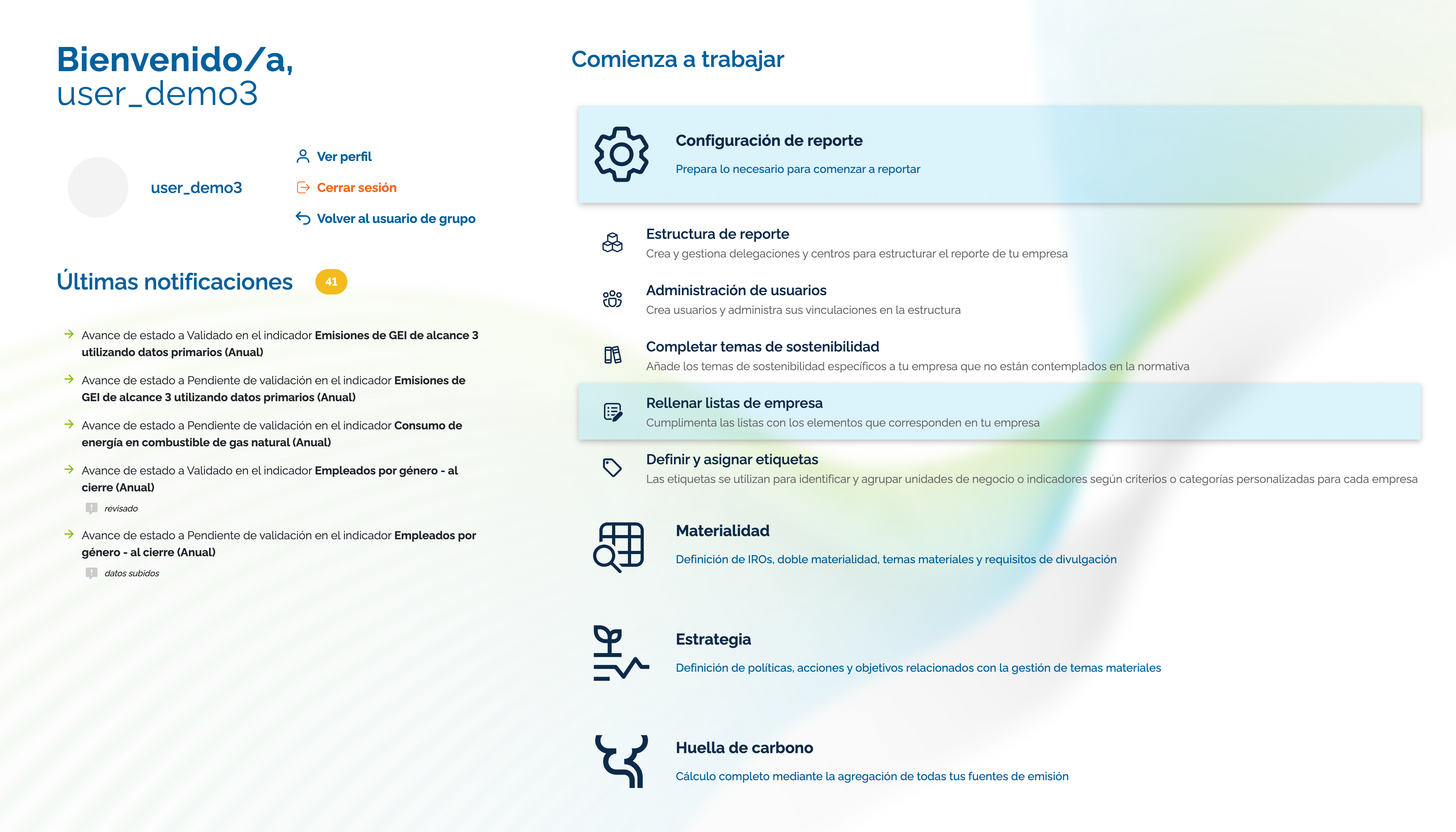 Vamos a revisar algunos aspectos para configurar el reporting. La empresa debe prepararse antes de iniciar la captura de datos. Estas funcionalidades solo están disponibles para usuarios ocn permisos de Administración a nivel Empresa.