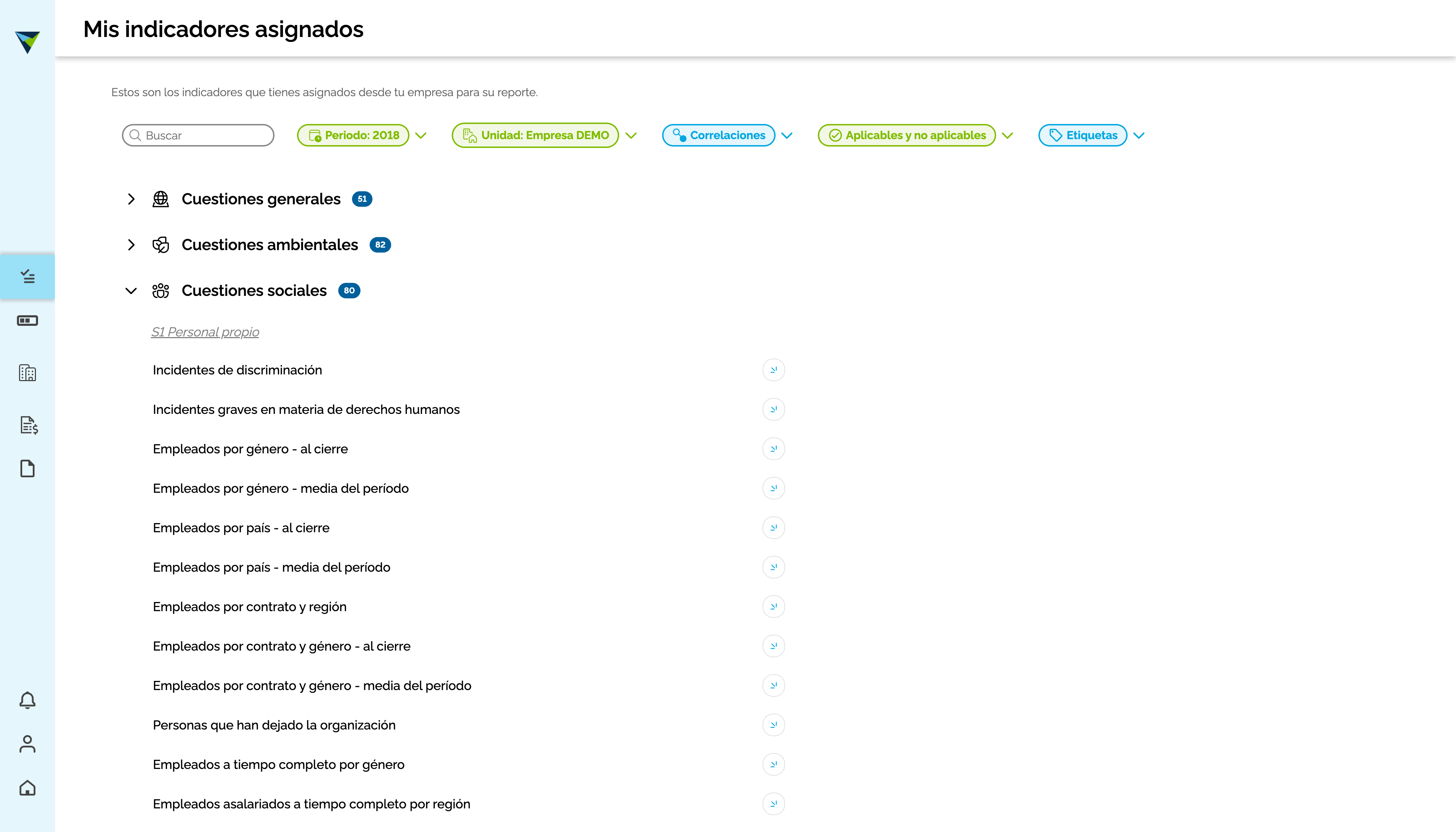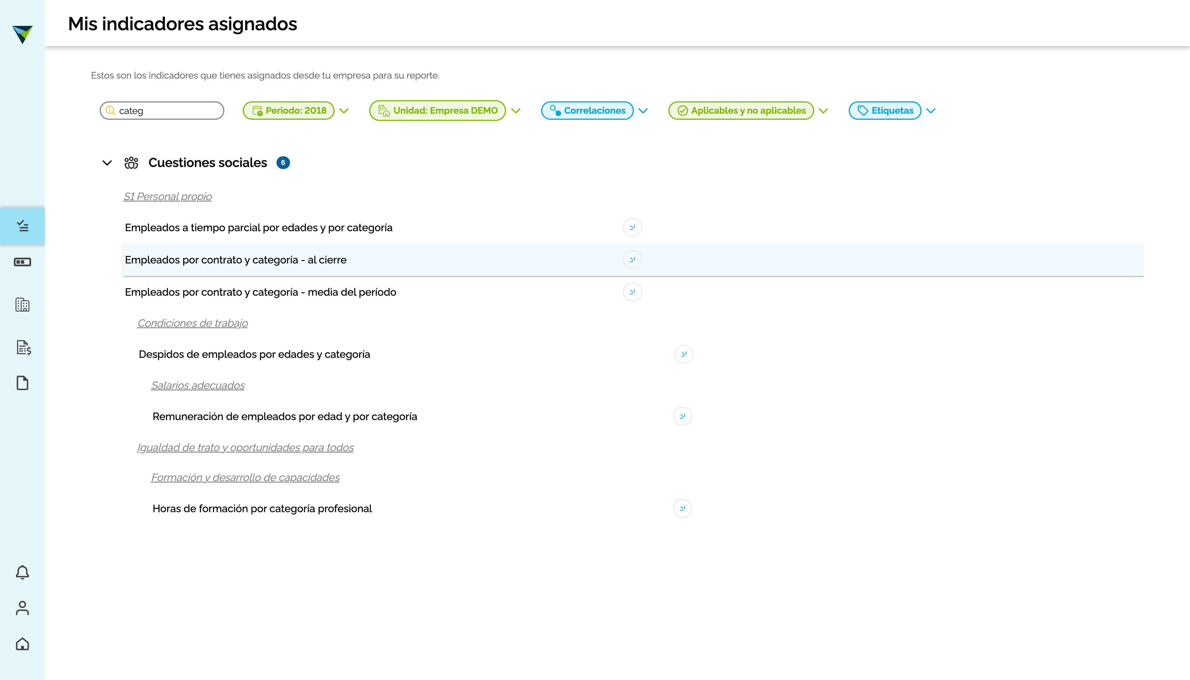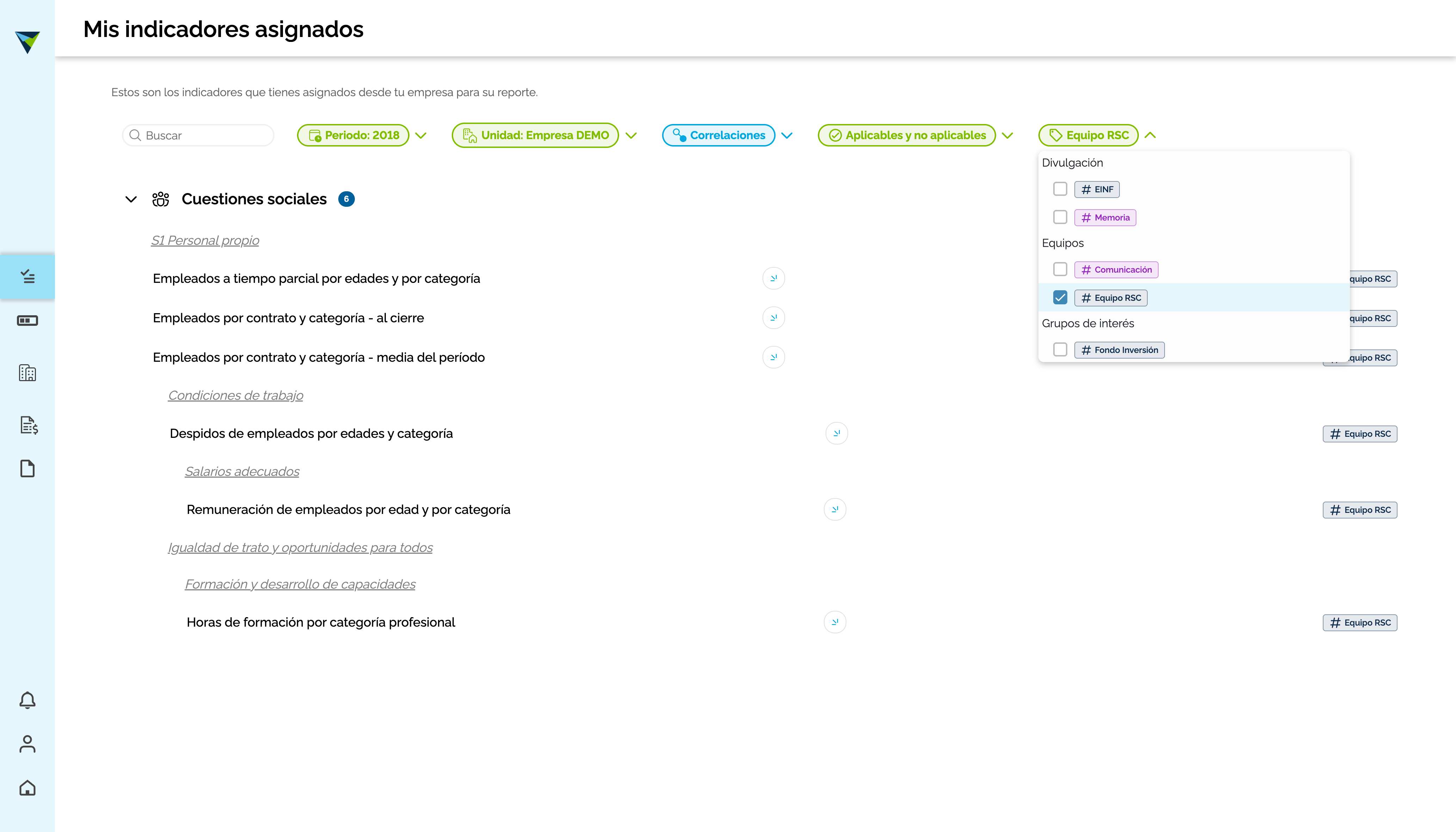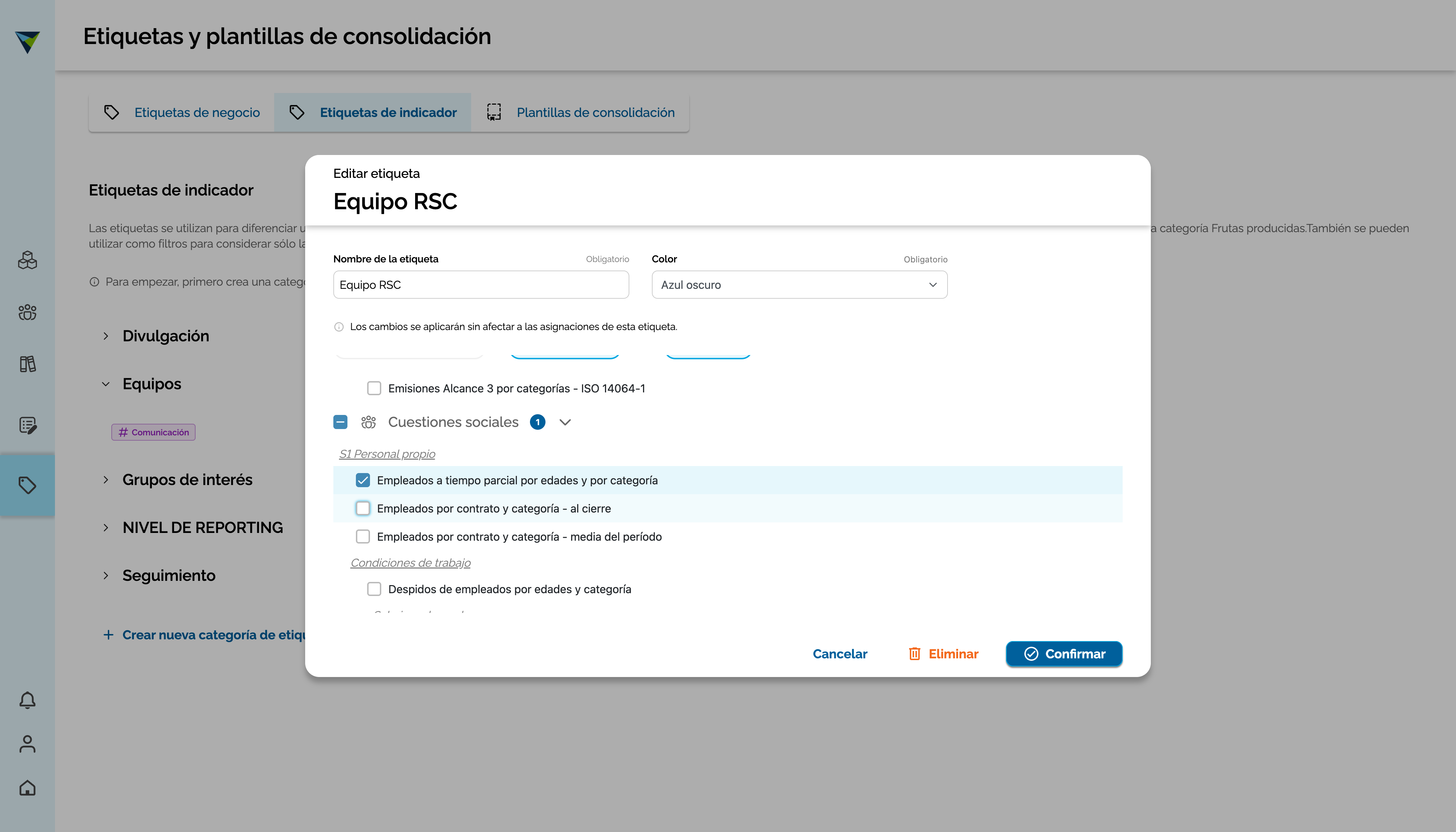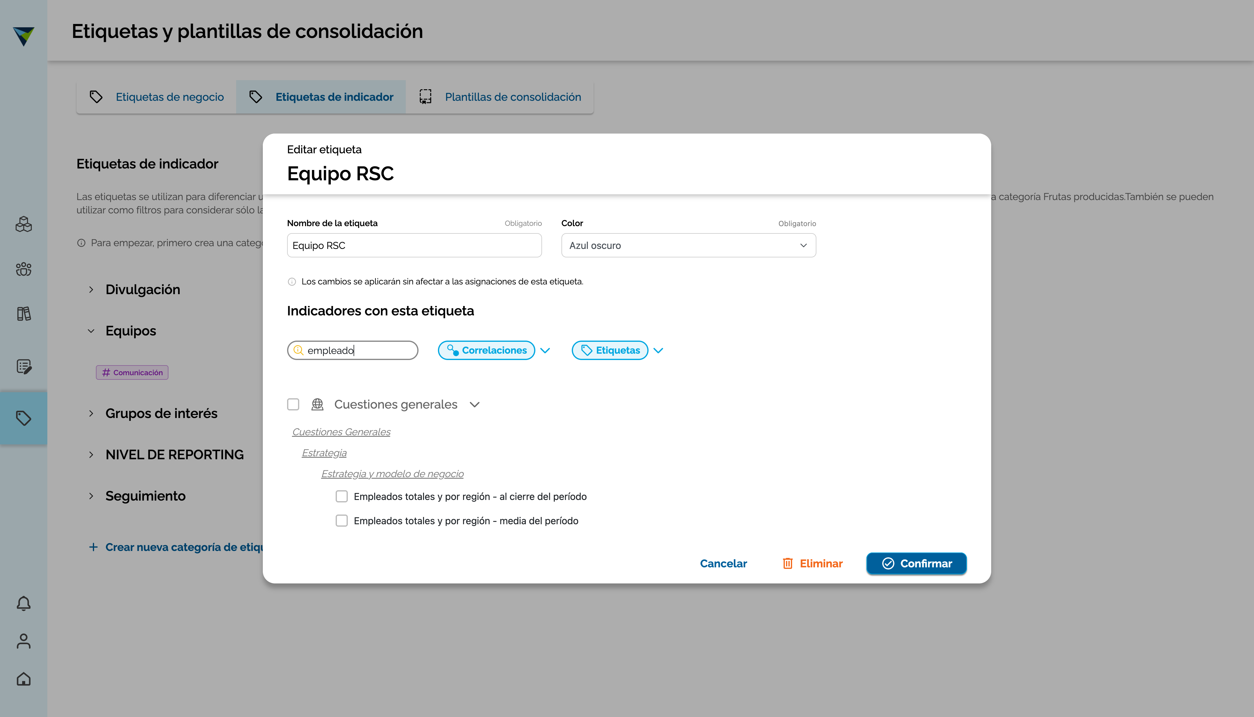 Por ejemplo, vamos a asignar esta etiqueta a todos los indicadores sobre empleados que tienen información por categorías, seleccionando varios indicadores.