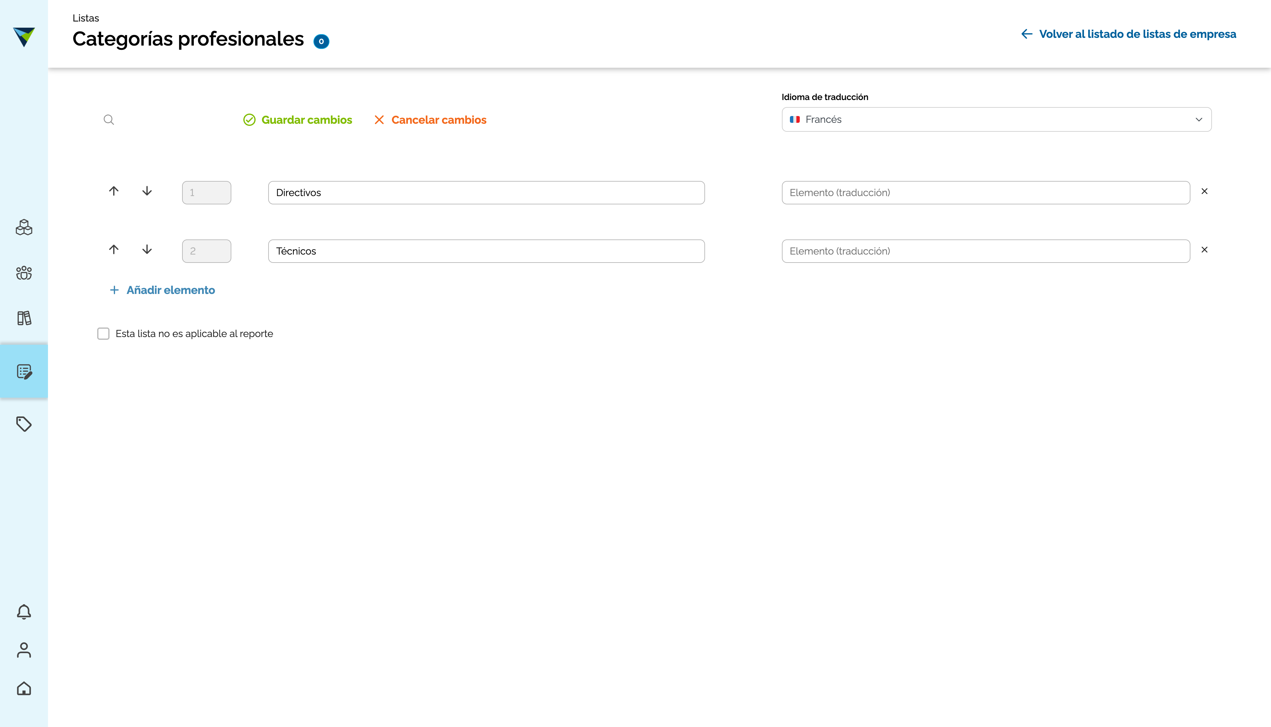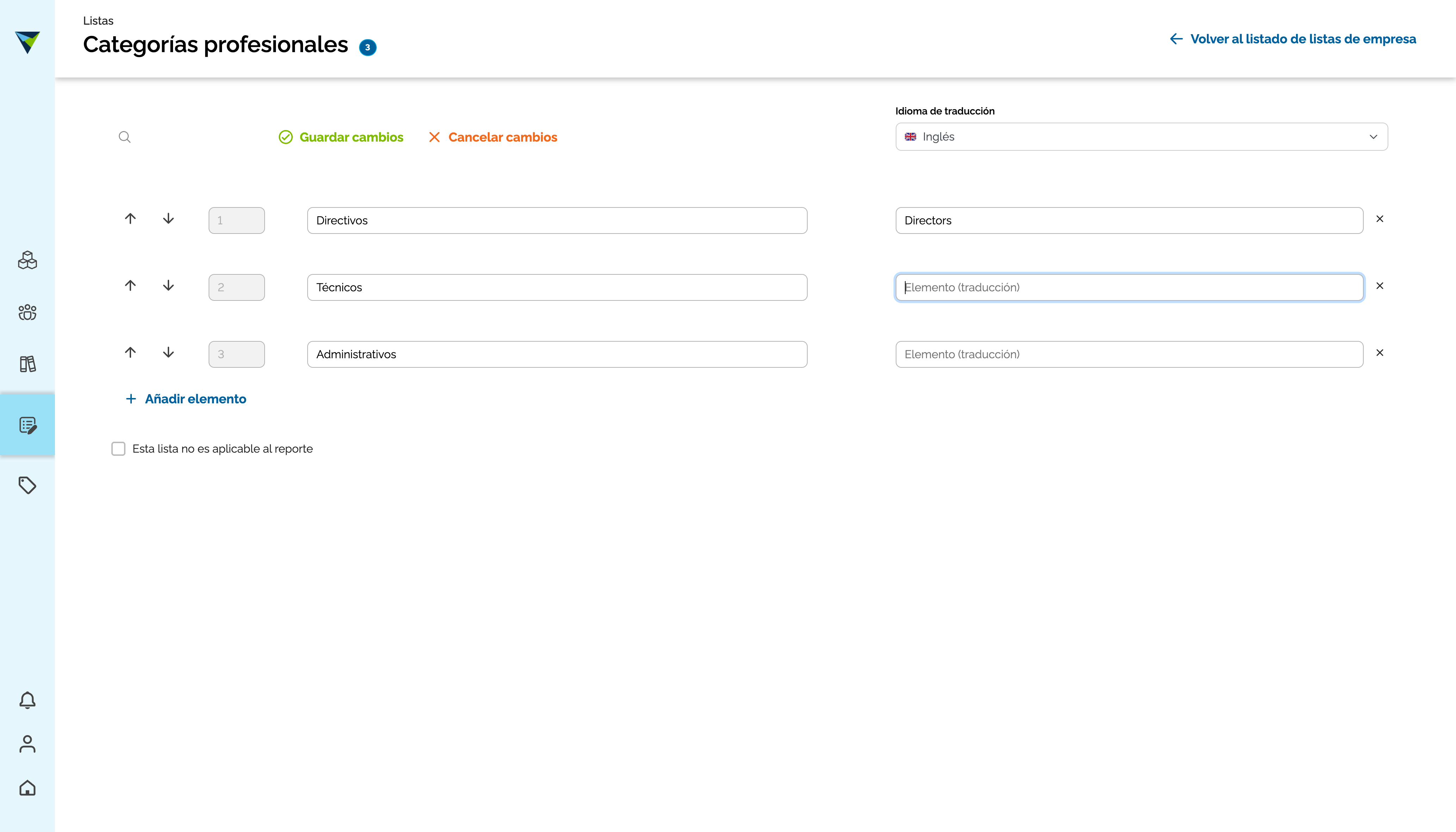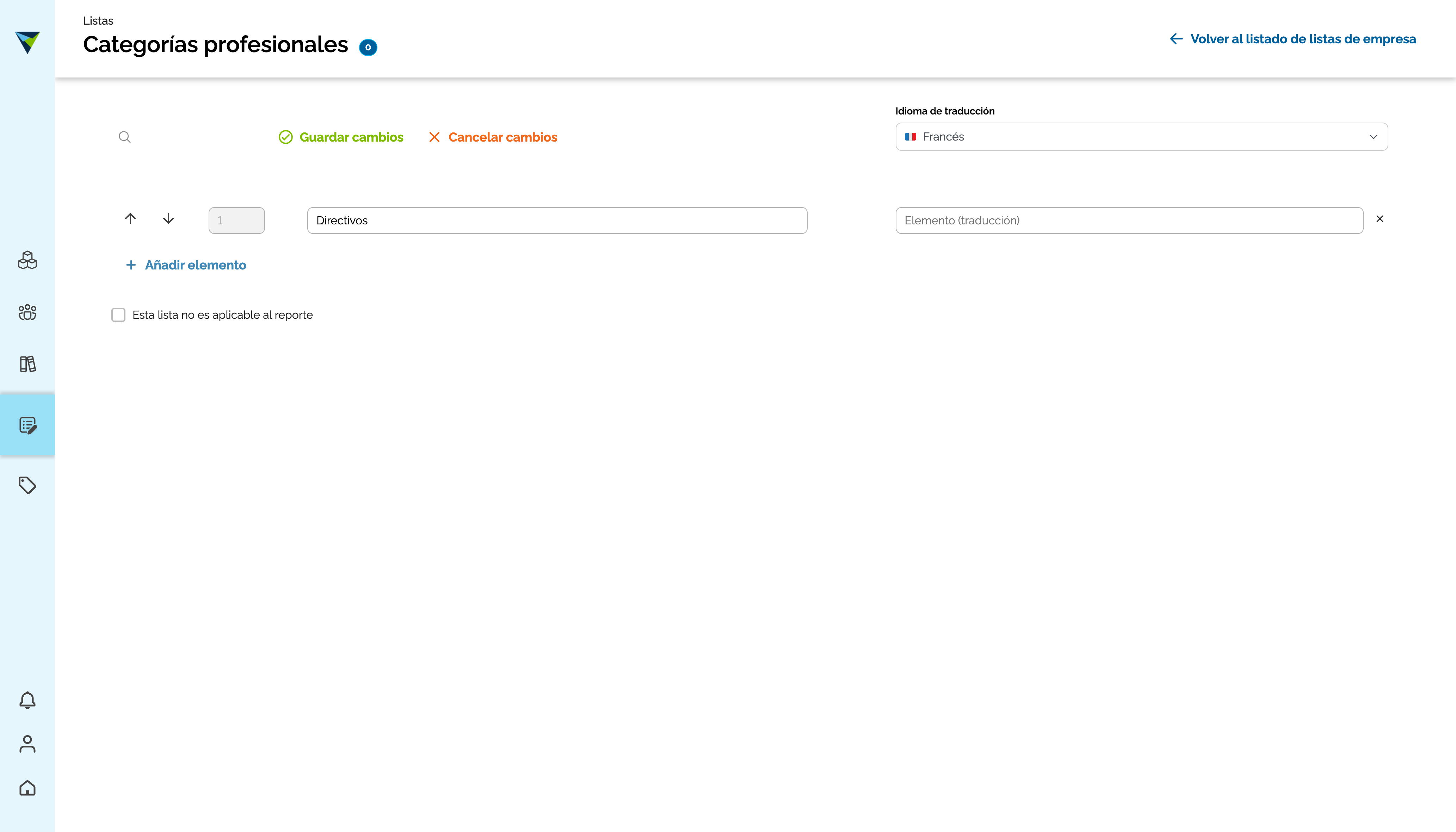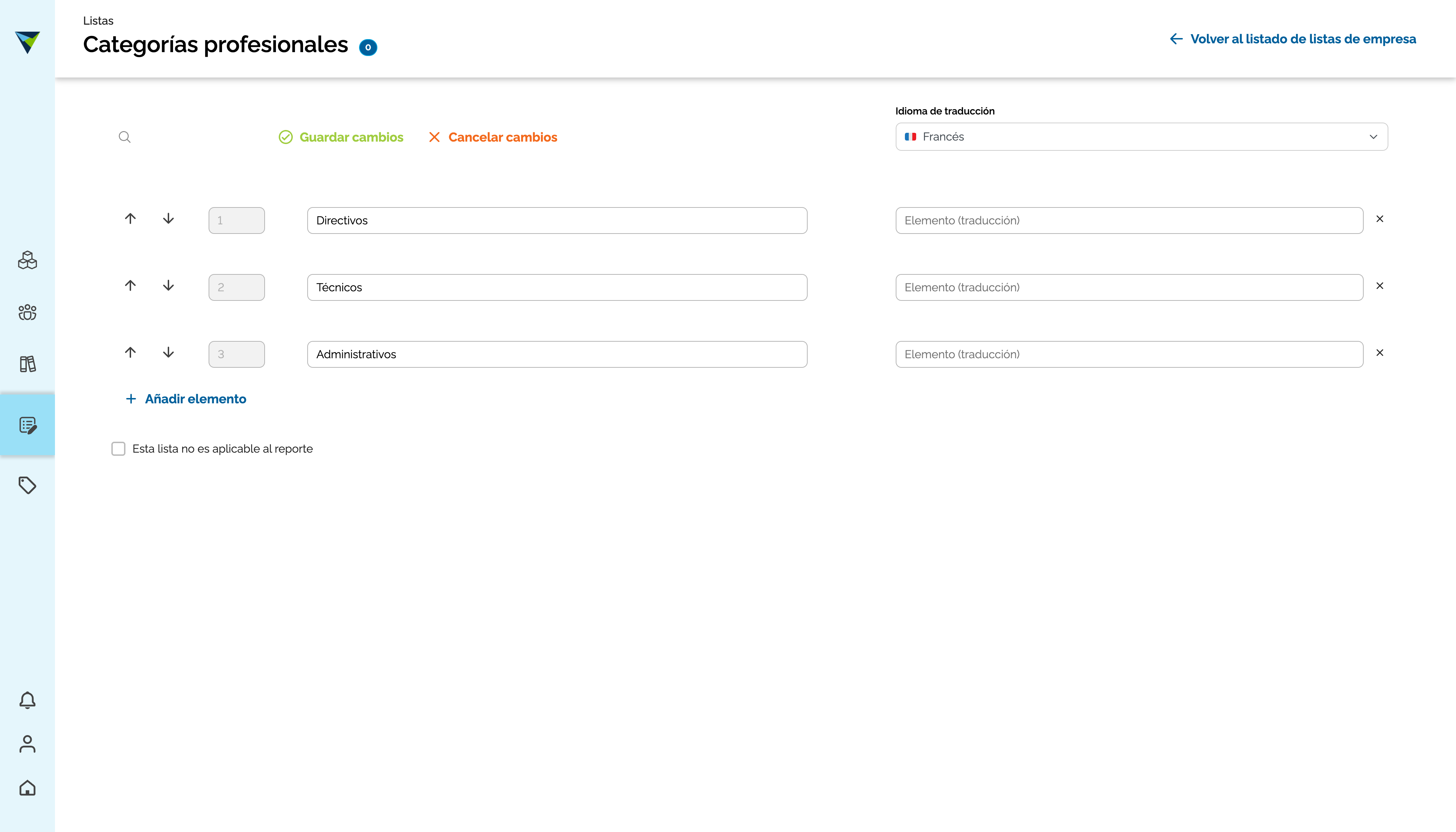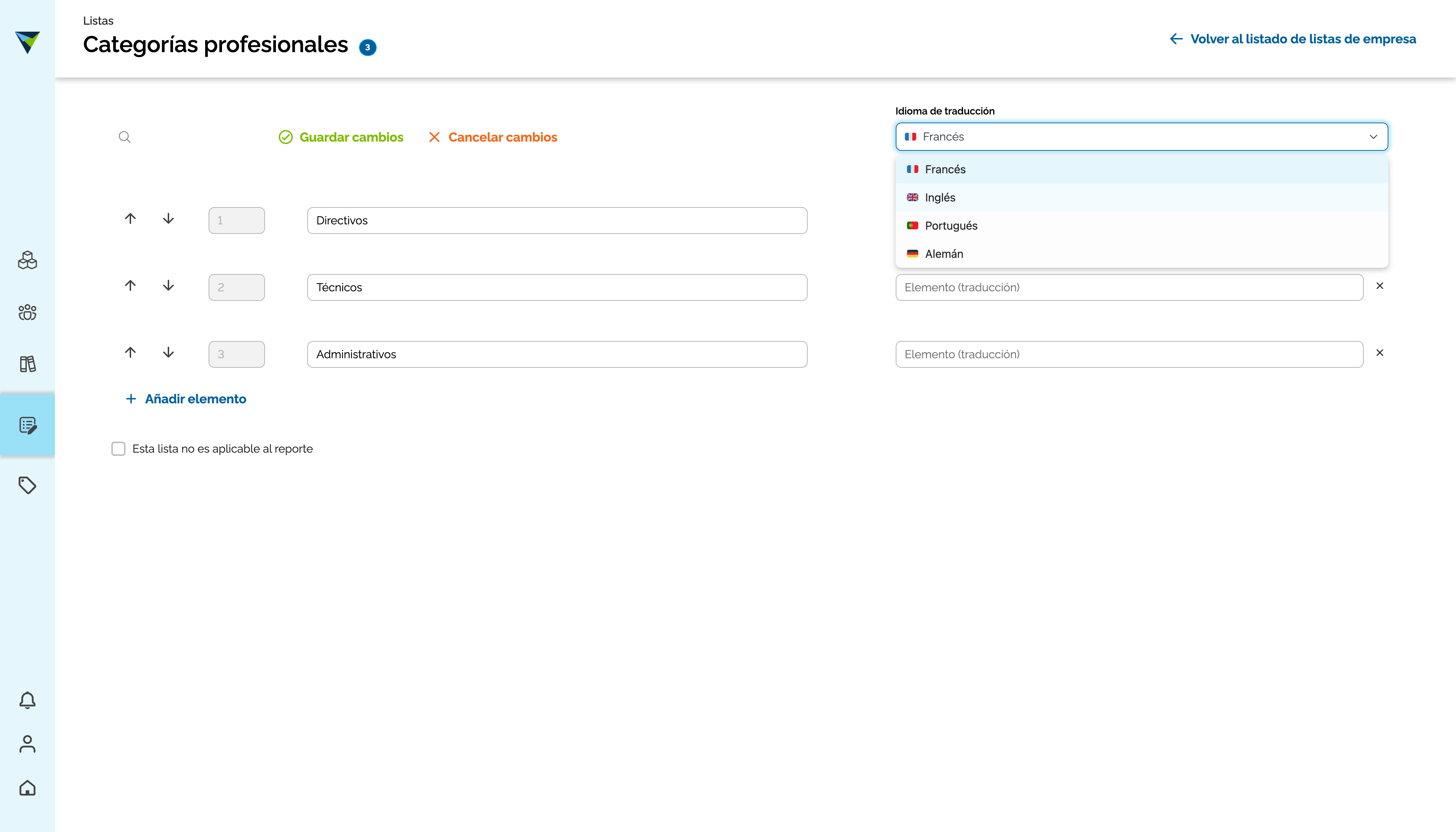 Una vez que la lista está completa y no hay más categorías profesionales que use la empresa ni idiomas necesarios, se guarda y finaliza bloqueando la lista. Esto es imprescindible para que se pueda usar.
