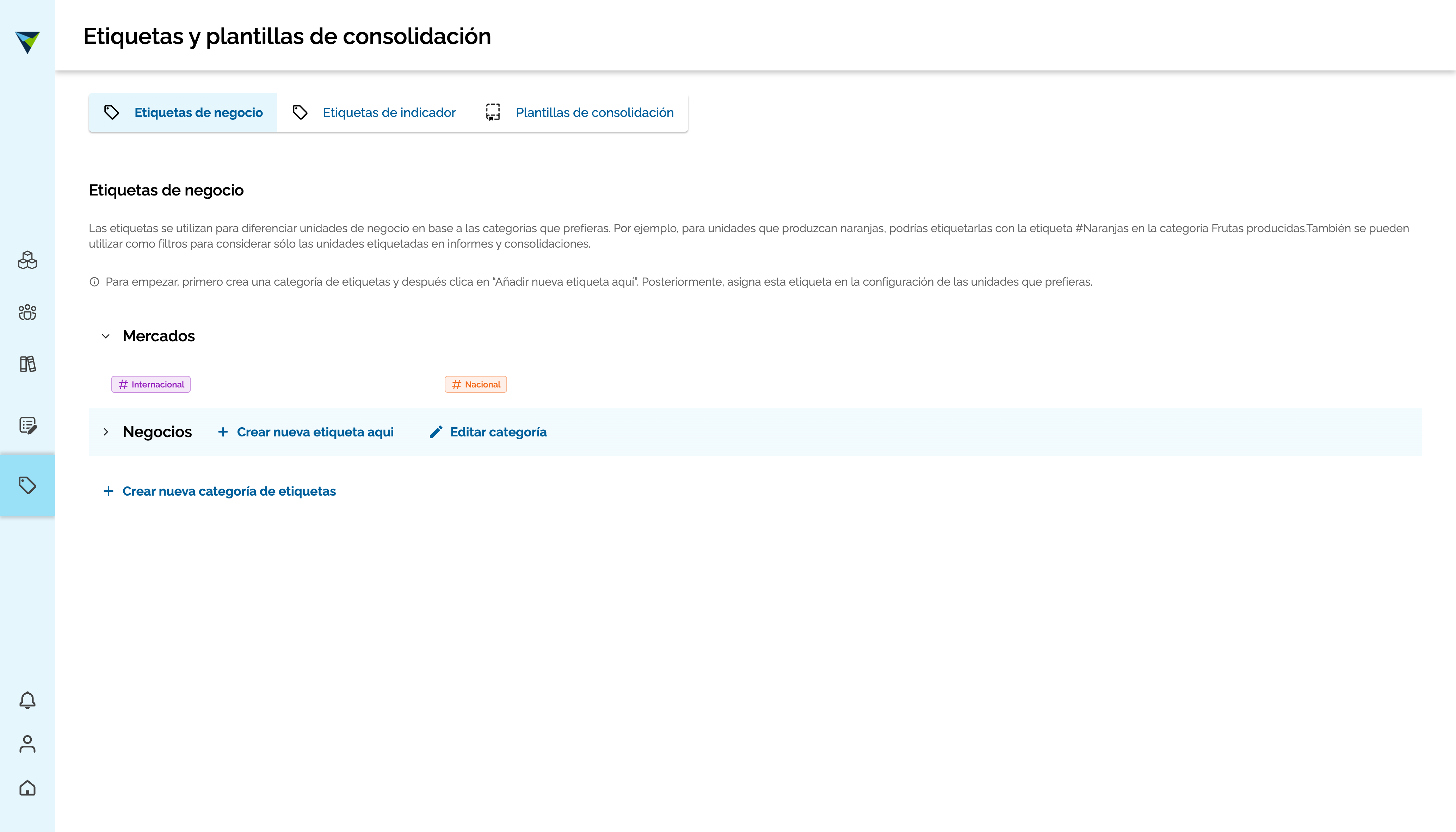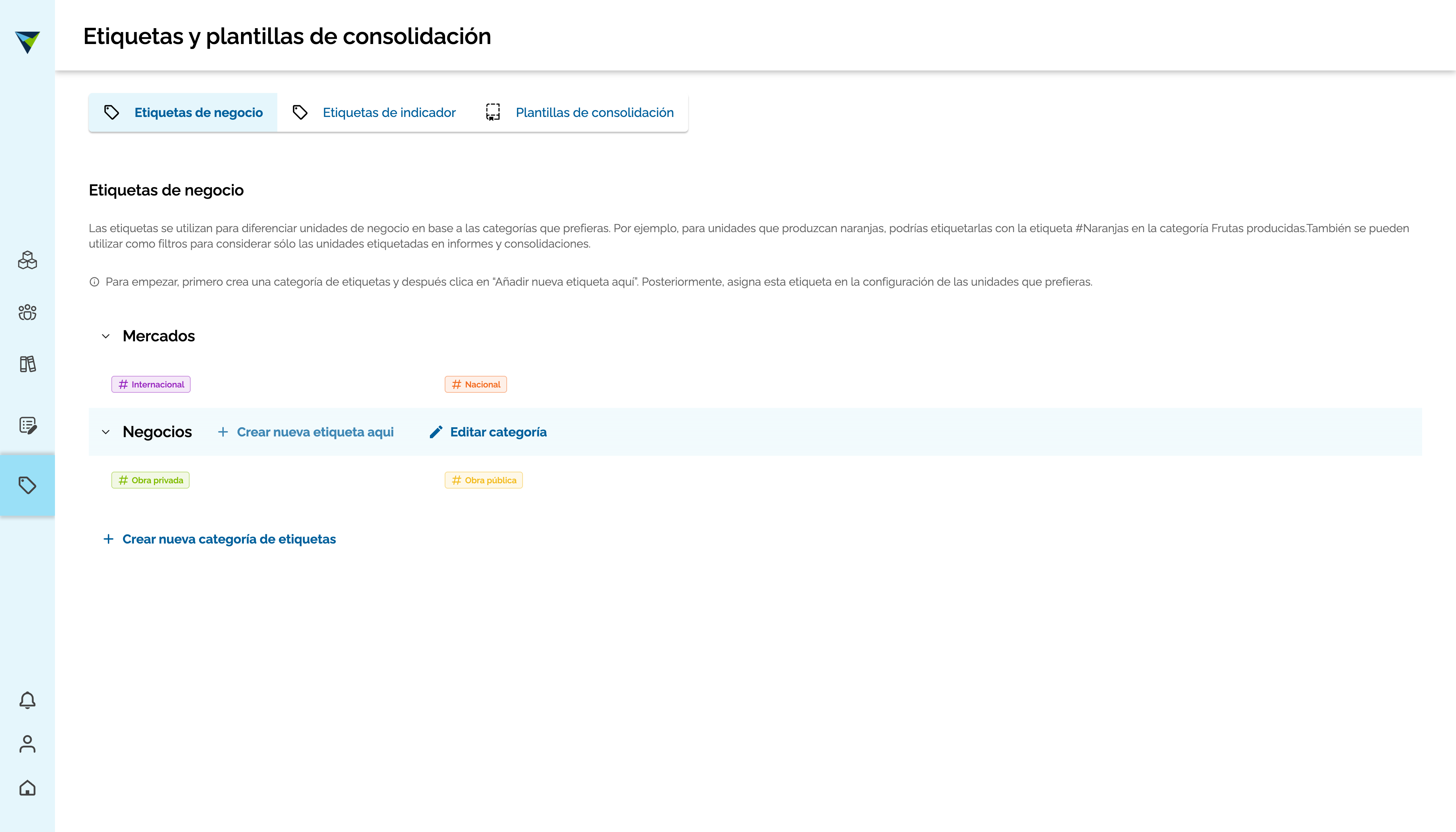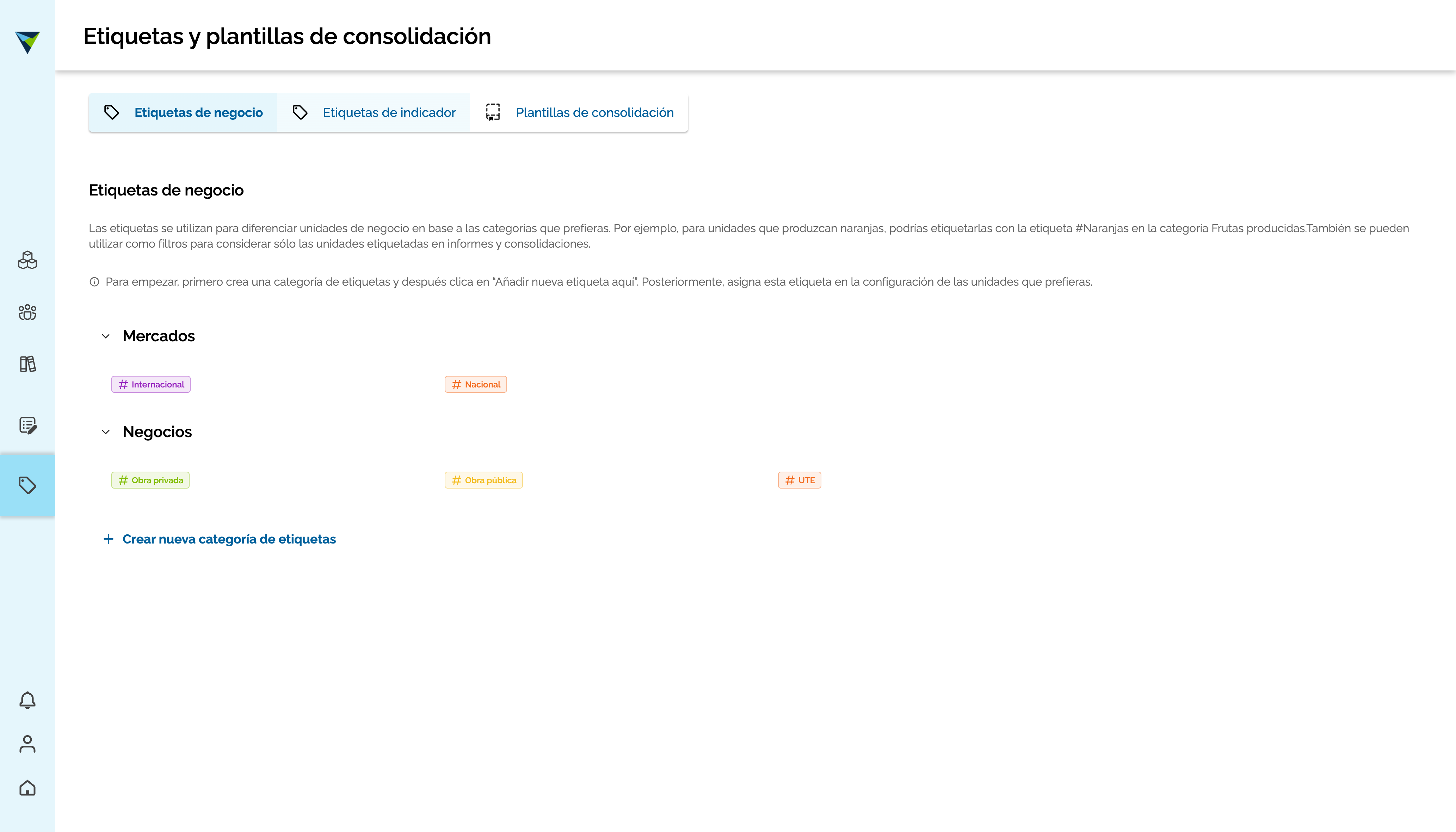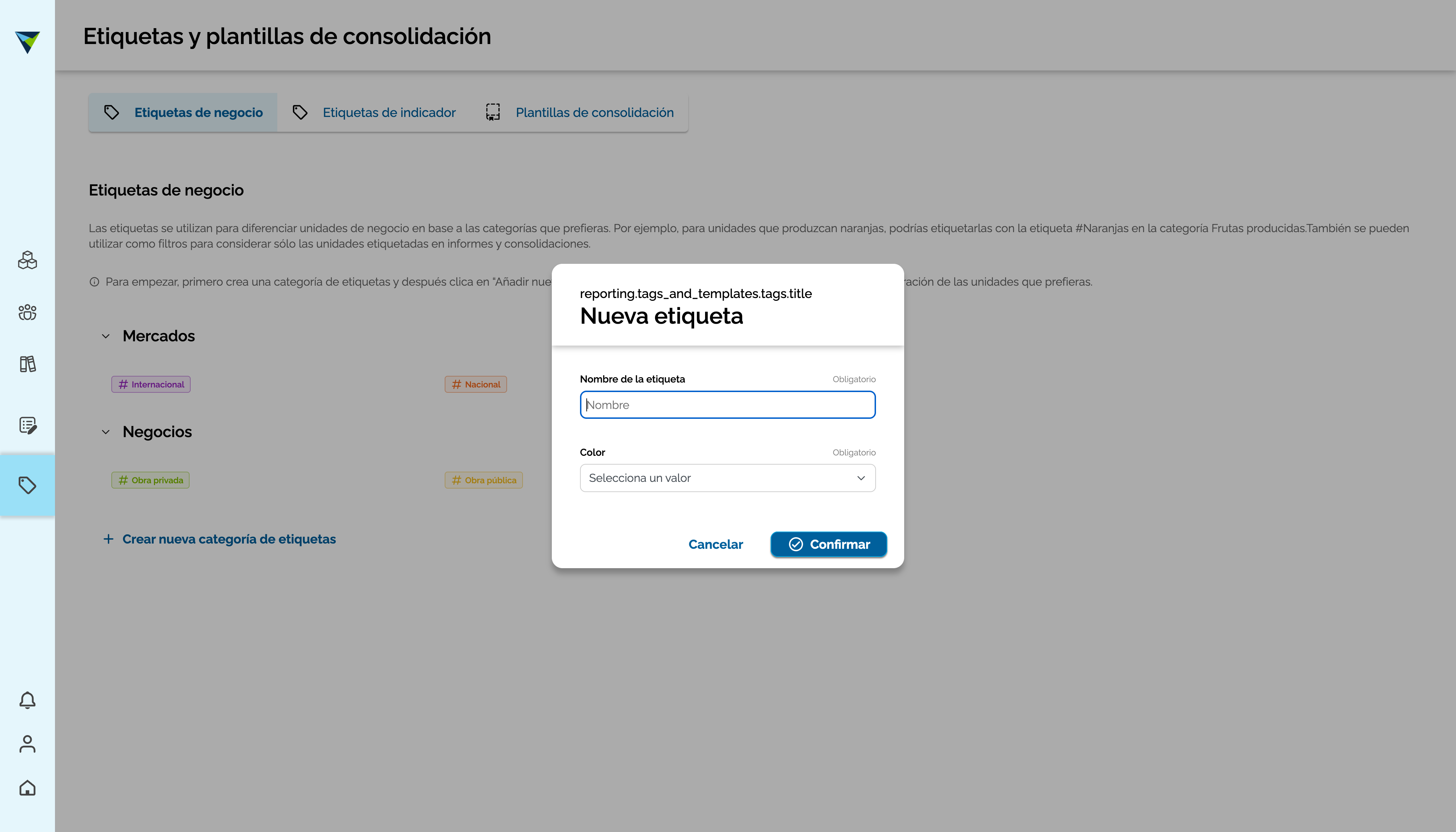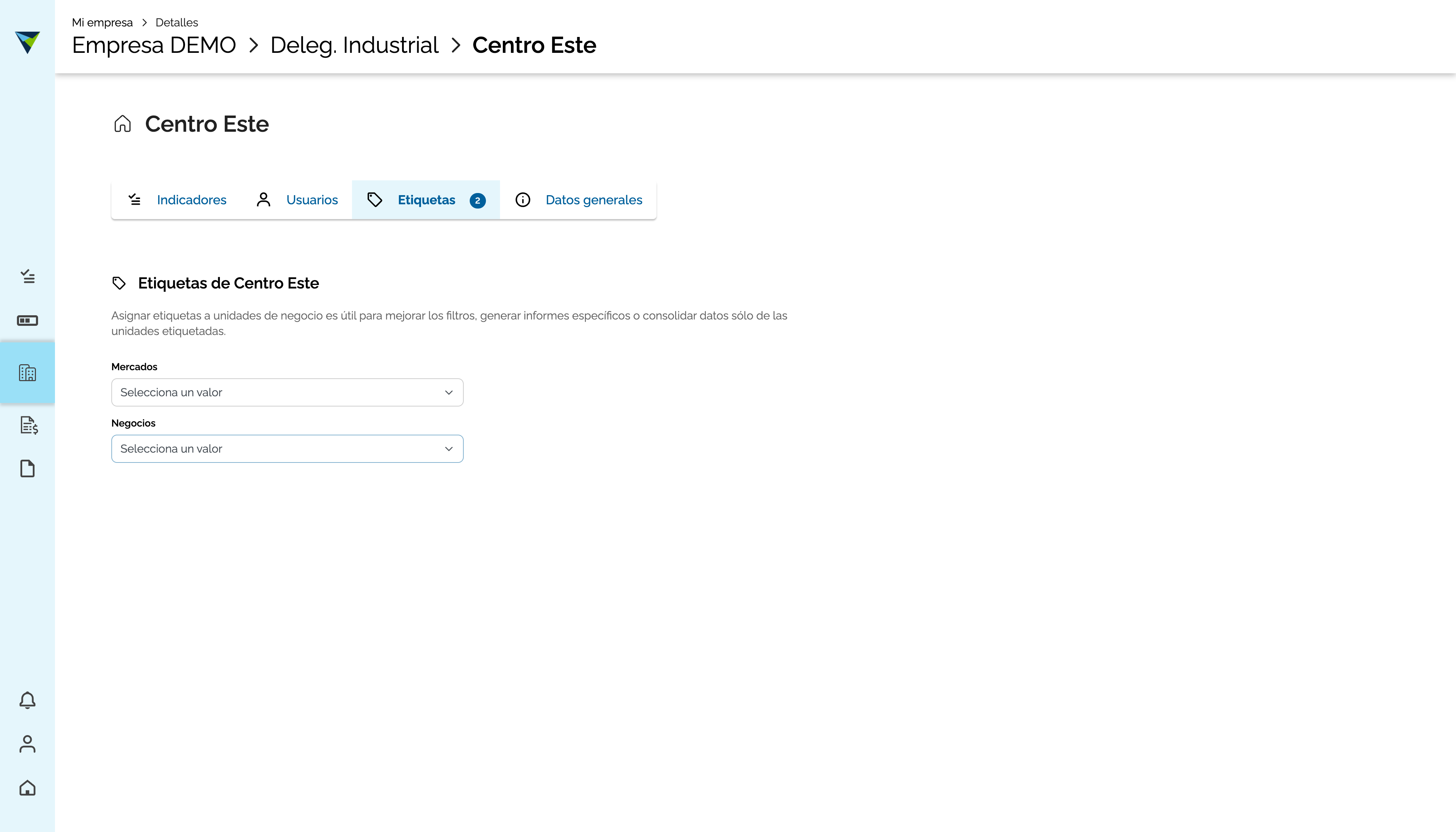 Lo importante de la configuración de reporting es completar las listas de empresa. Esto es un requisito indispensable. Opcionalmente, se pueden definir etiquetas para identificar tanto unidades como indicadores o métricas.