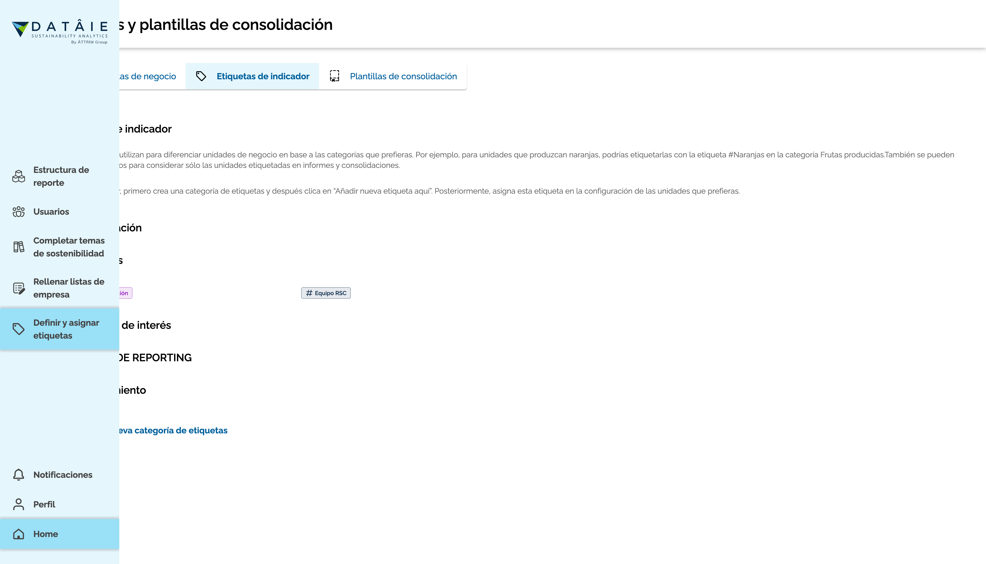 DATAIE Configuración de Reporting - Listas de Empresa y Etiquetas