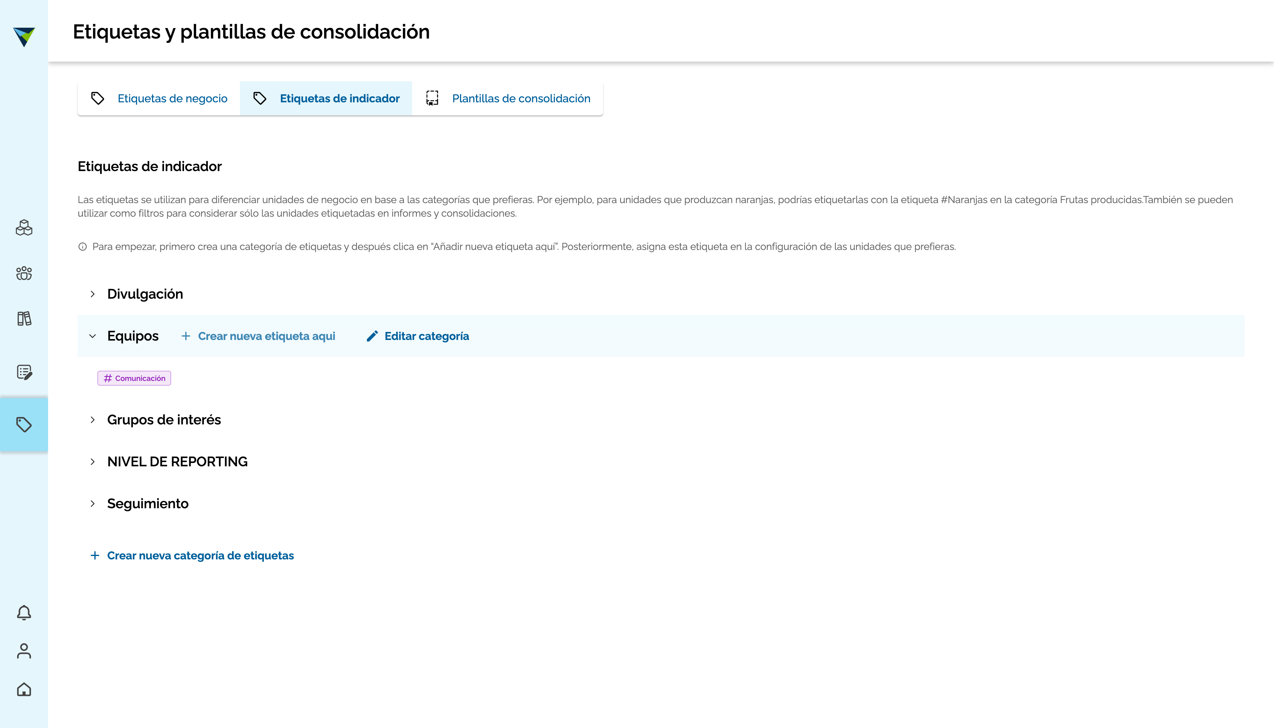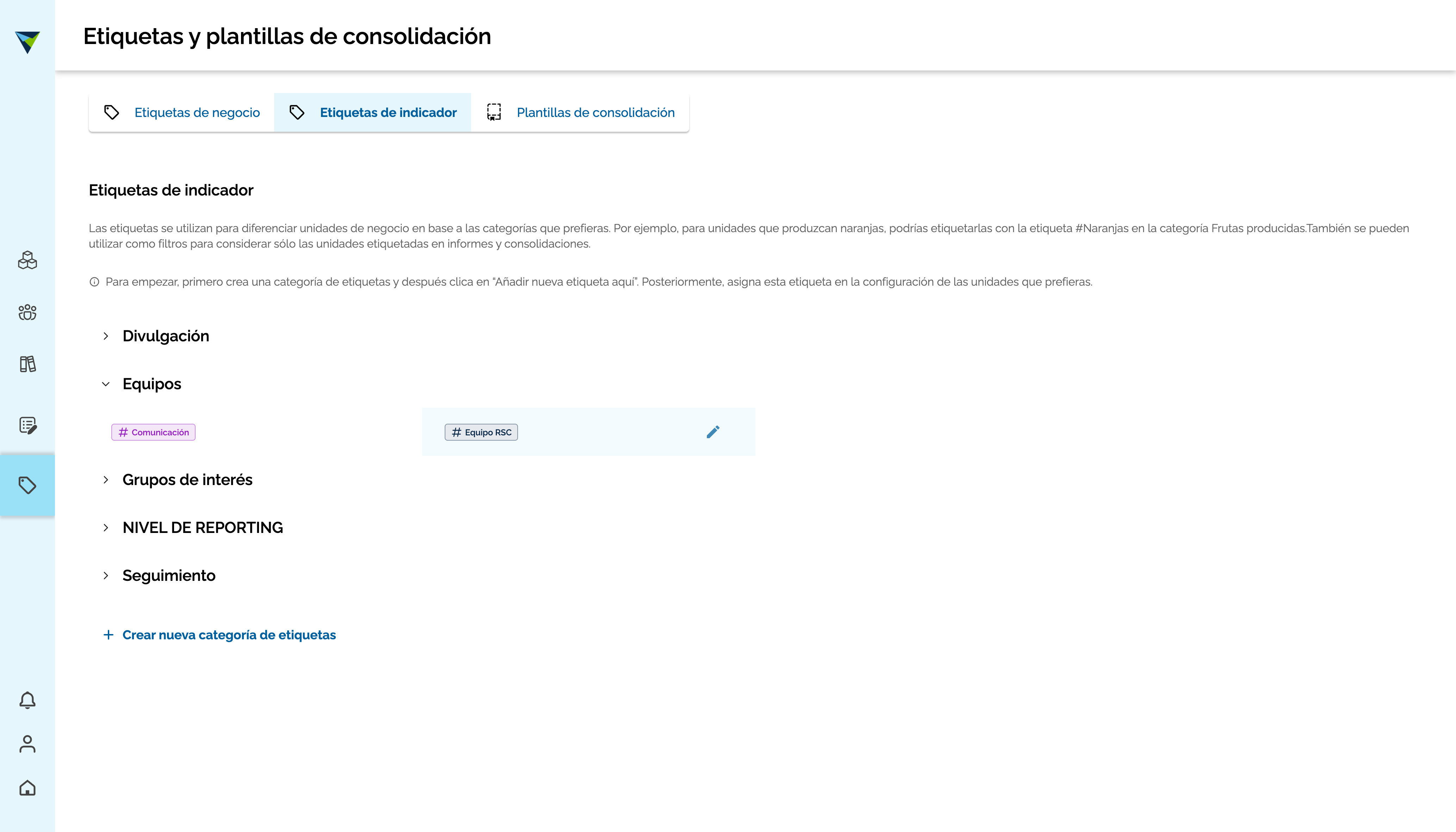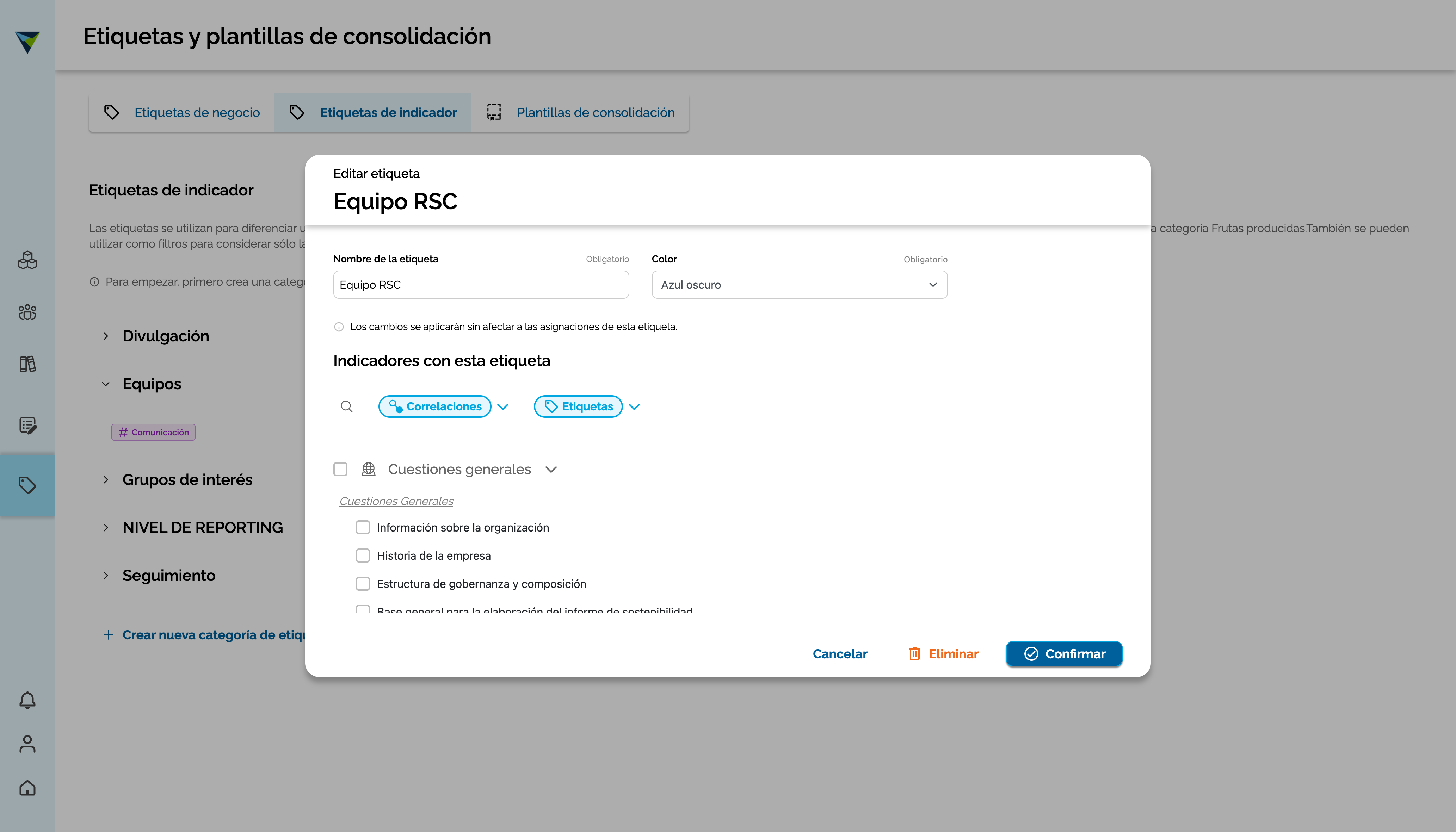 En el caso de ya quiera asignarla a ciertos indicadores puedo volver a la etiqueta, editarla y asignarle indicadores.