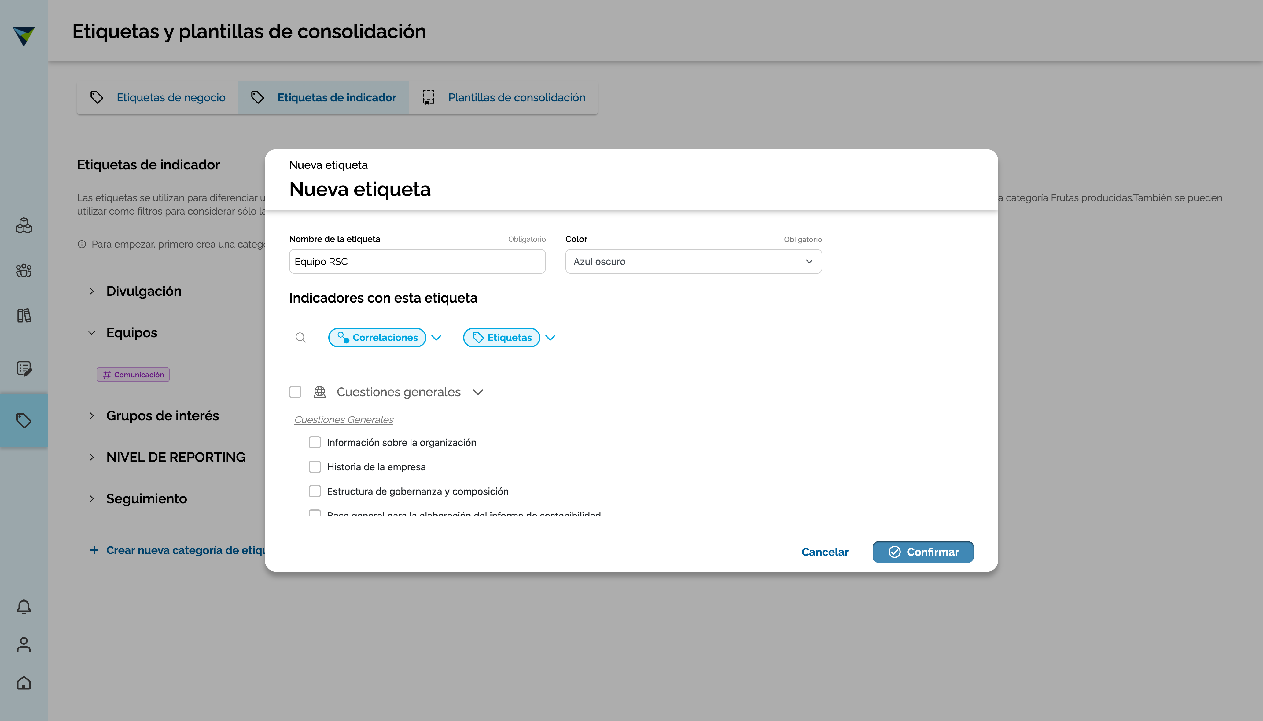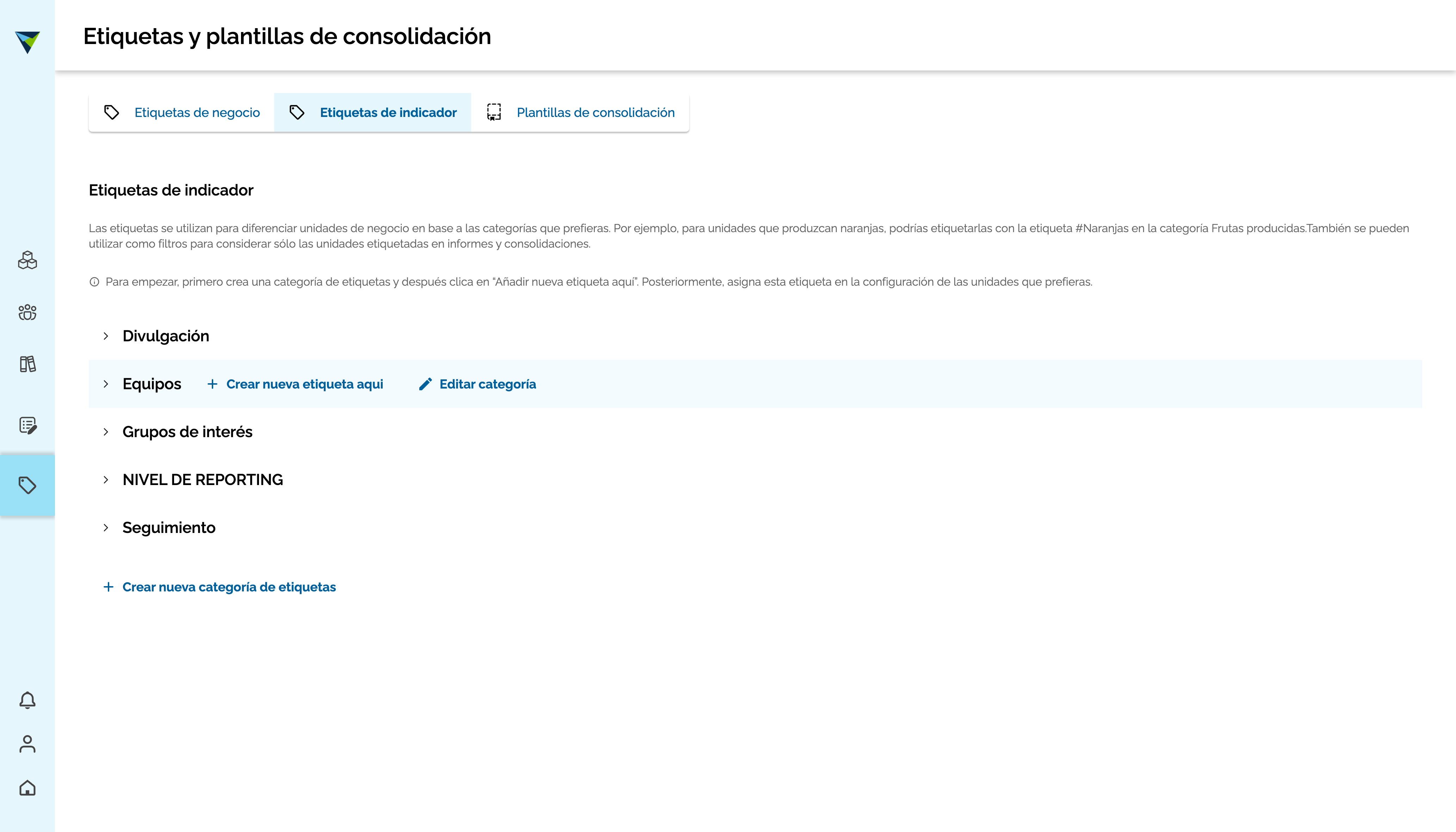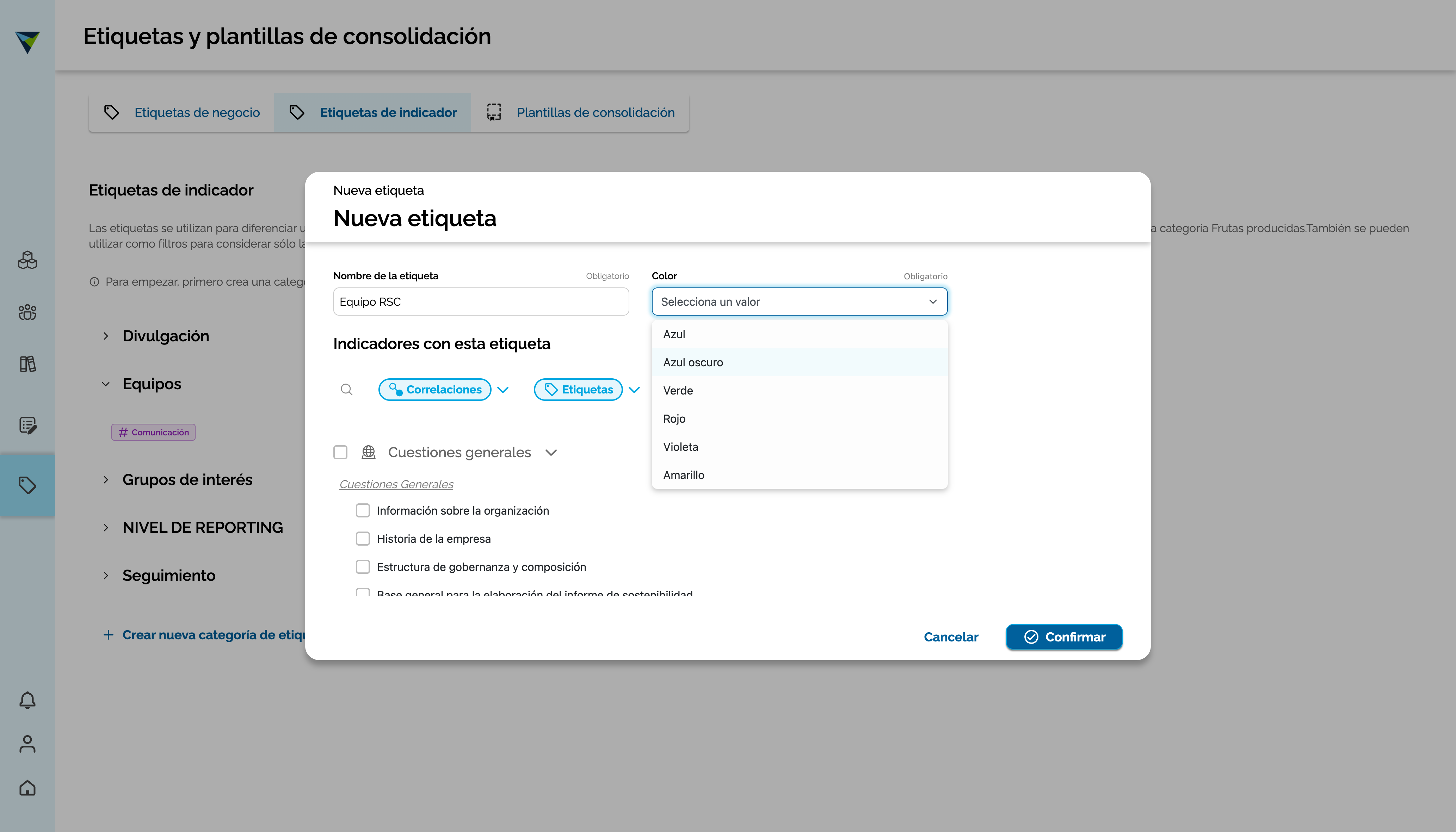 En el caso de ya quiera asignarla a ciertos indicadores puedo volver a la etiqueta, editarla y asignarle indicadores.