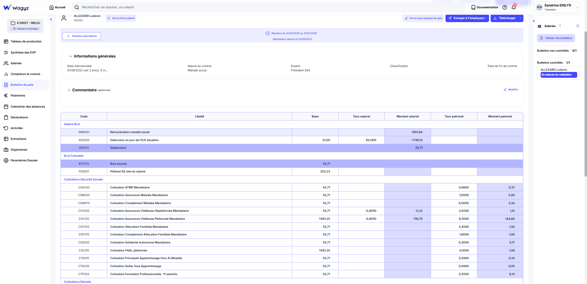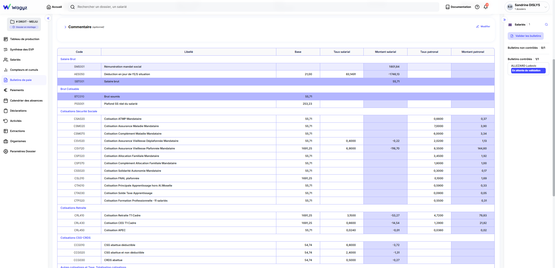 Ensuite, si l'on descend, on remarque ici la cotisation vieillesse plafonnée mandataire, qui n'est pas proratisée en cas d'absence.