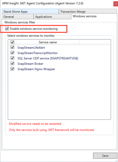 Switch to the Windows Services tab and ensure all service names have a checkmark next to them.