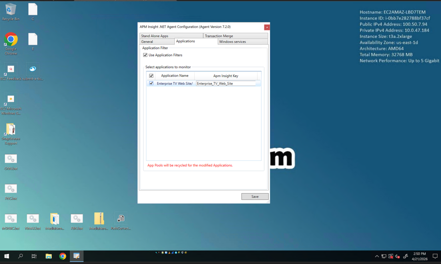 Learn how to configure the APM Insight .NET Agent to start reporting metrics for a cloud instance to the Site24x7 dashboard.
