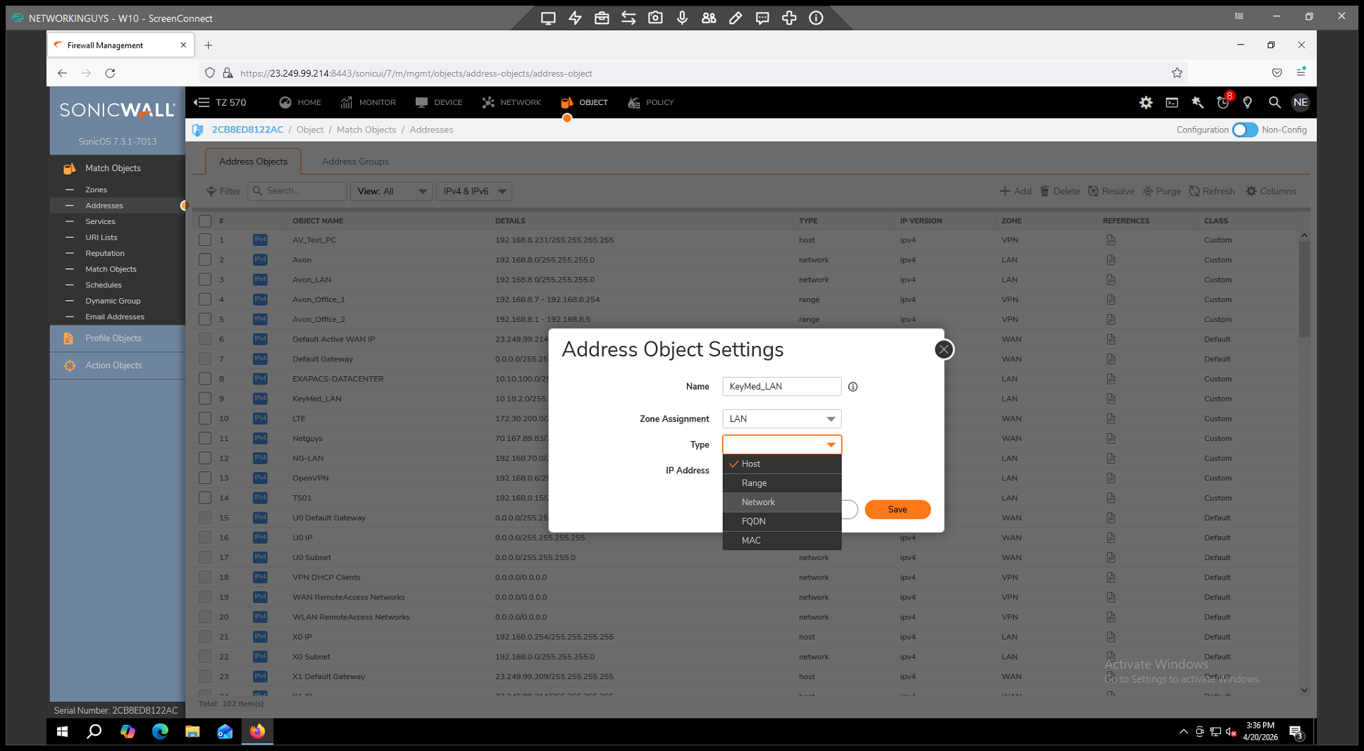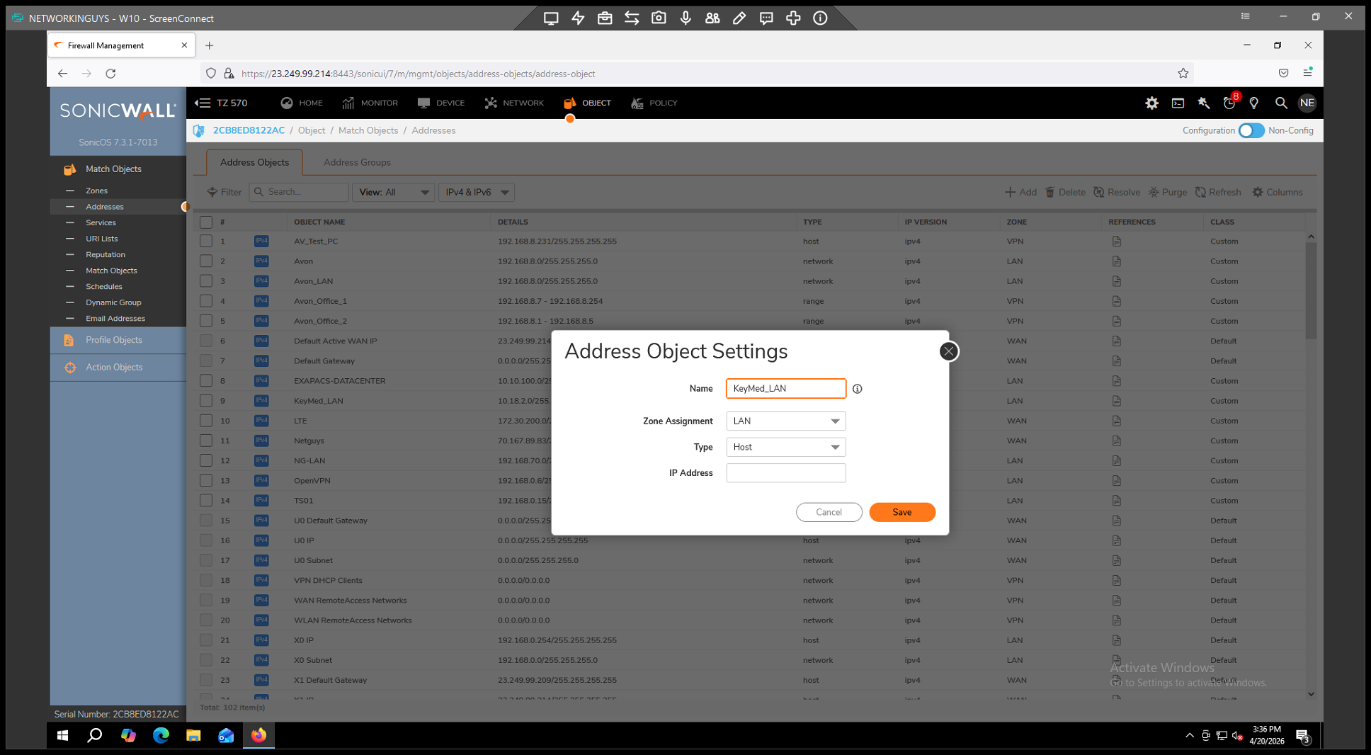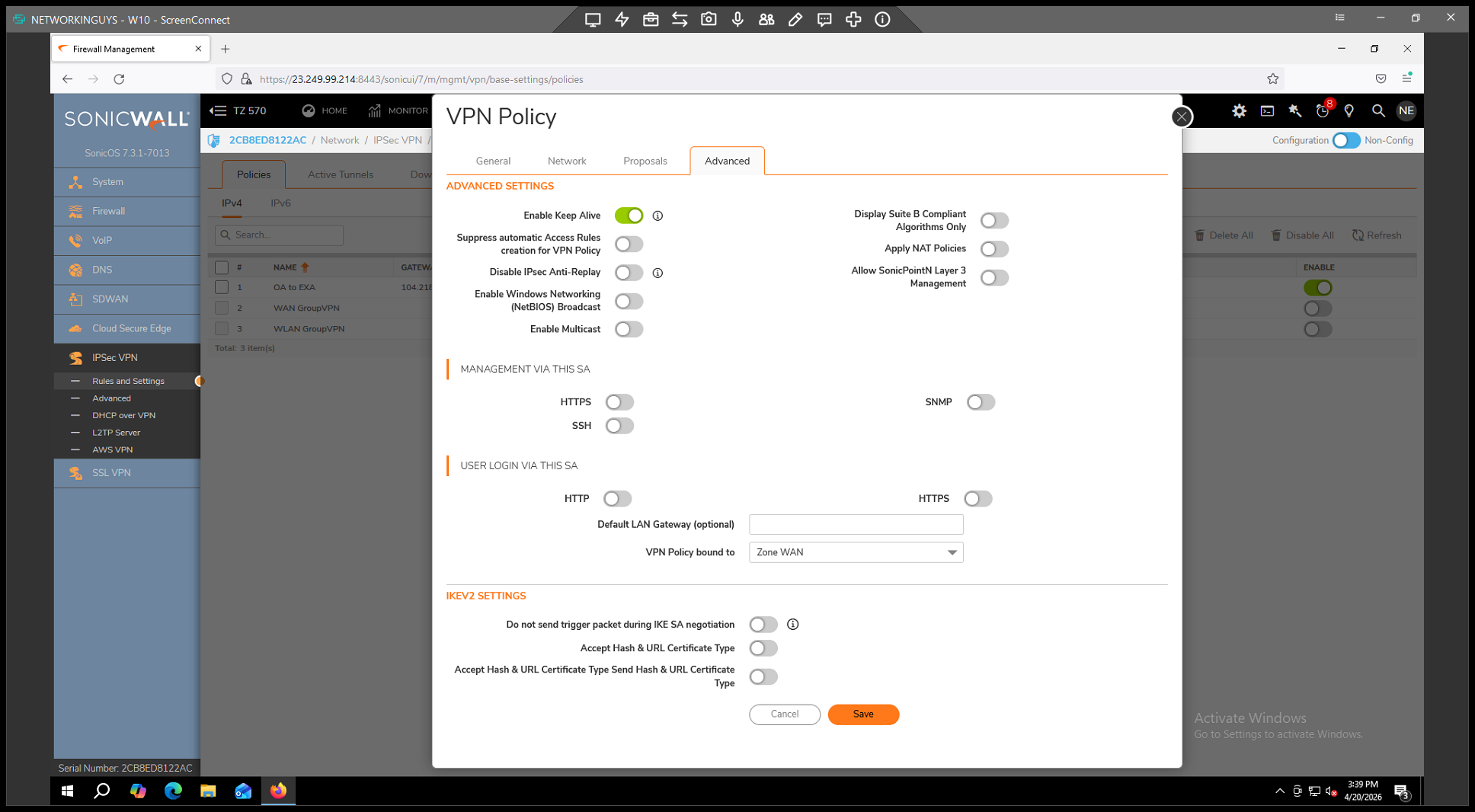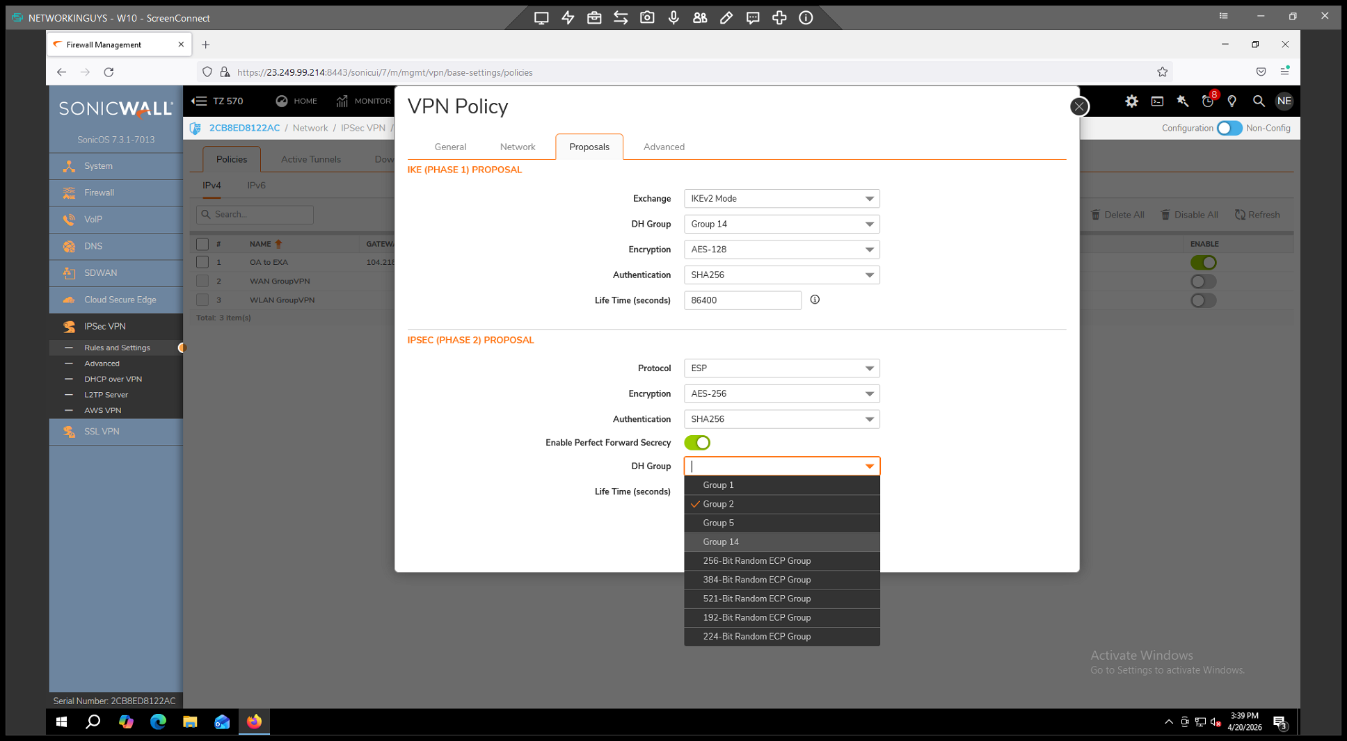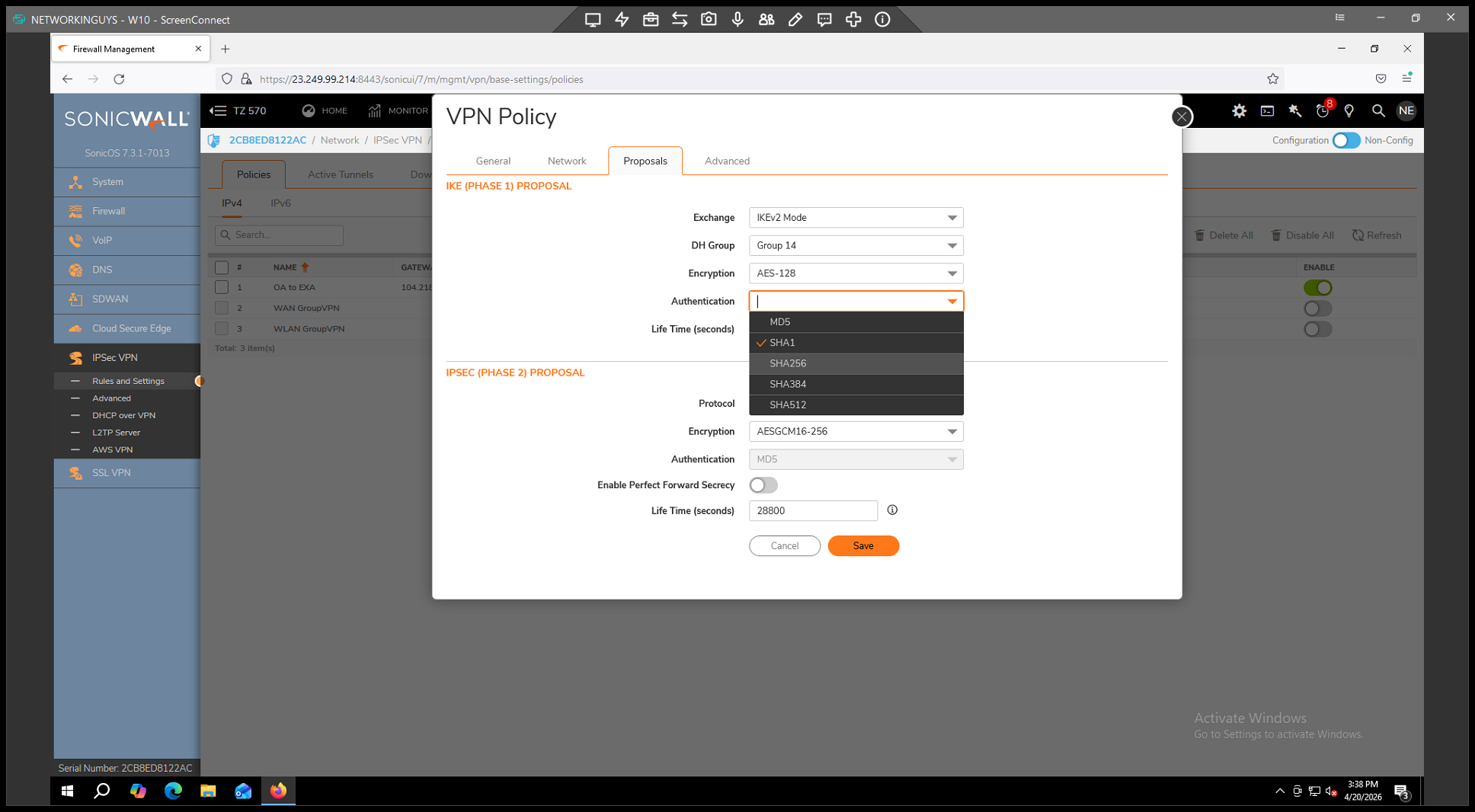 Setting up a Site-to-Site IPsec VPN on a SonicWall firewall involves creating an address object for the remote network, defining the VPN policy, and configuring encryption and authentication protocols. Follow these steps to build and configure your secure VPN tunnel.