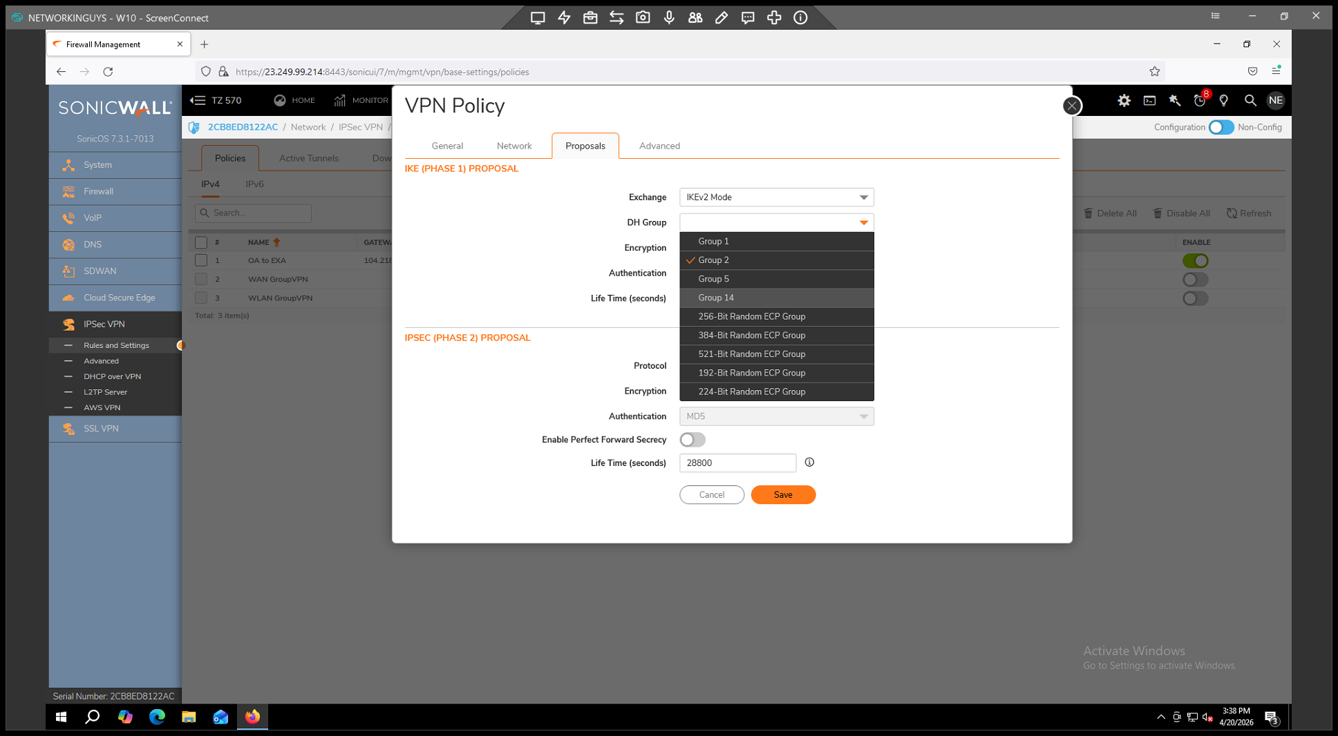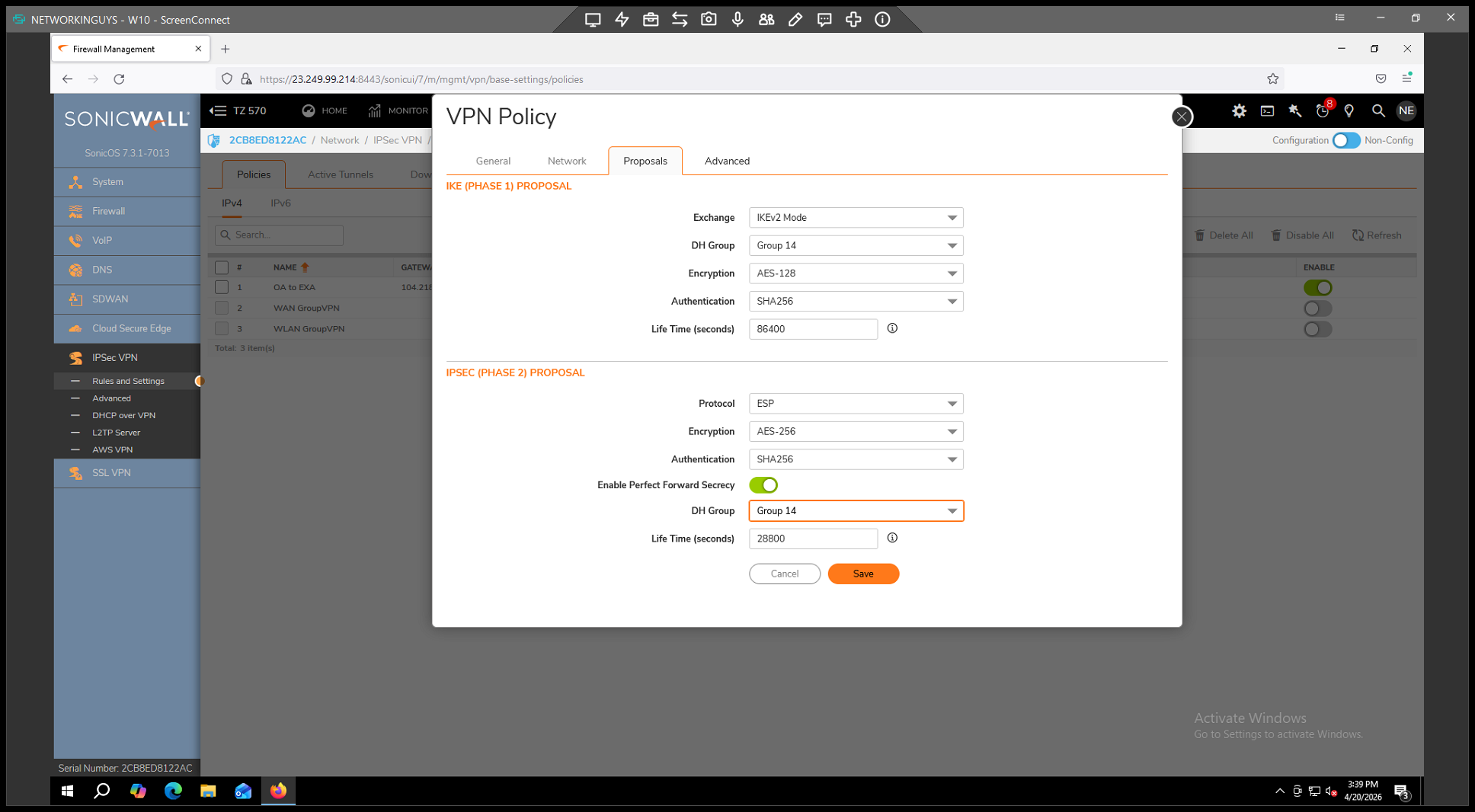 . 2. Under the IKE (Phase 1) Proposal section: *