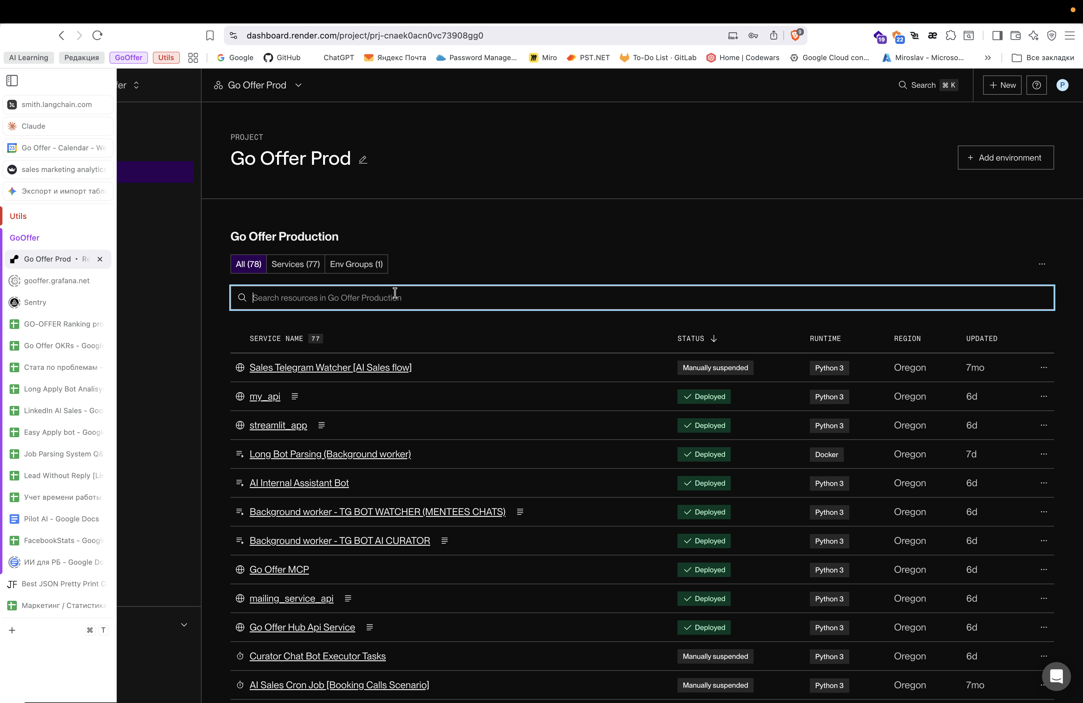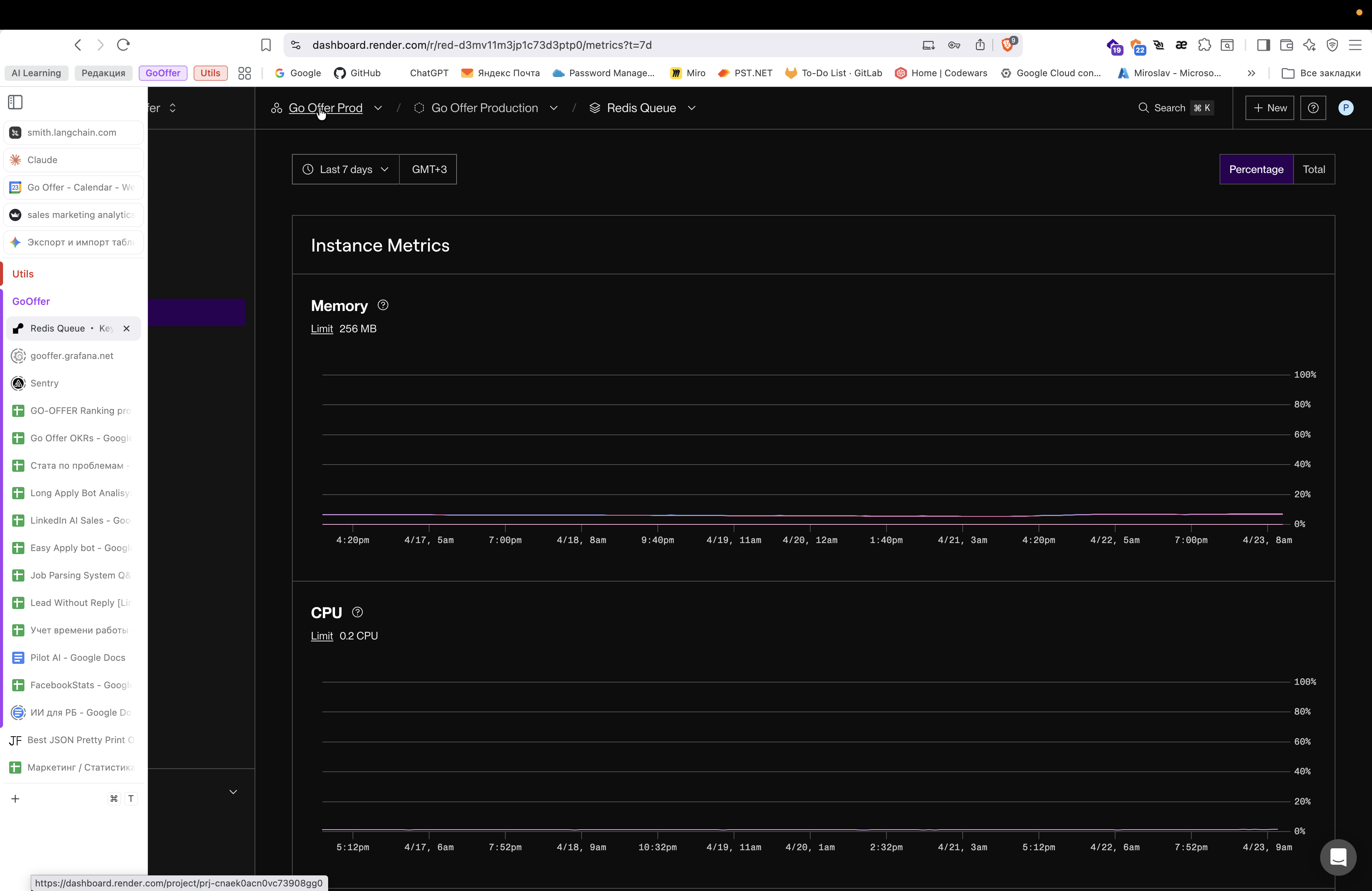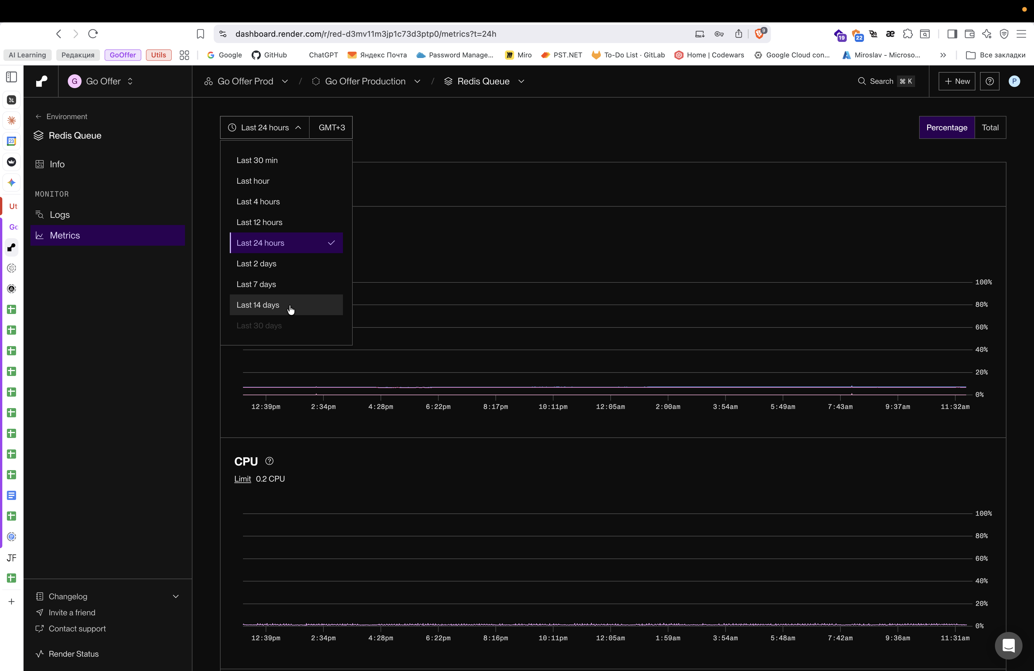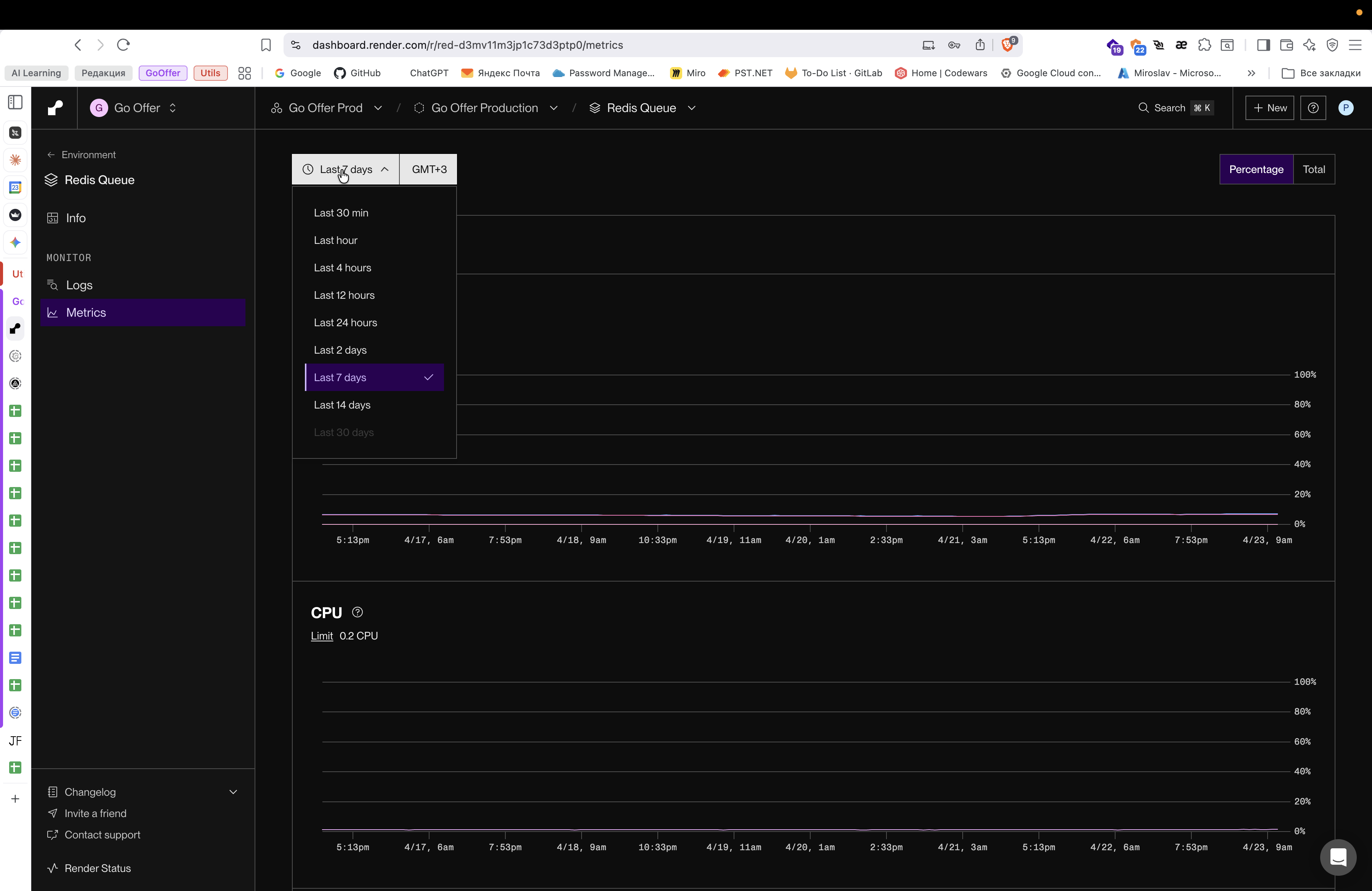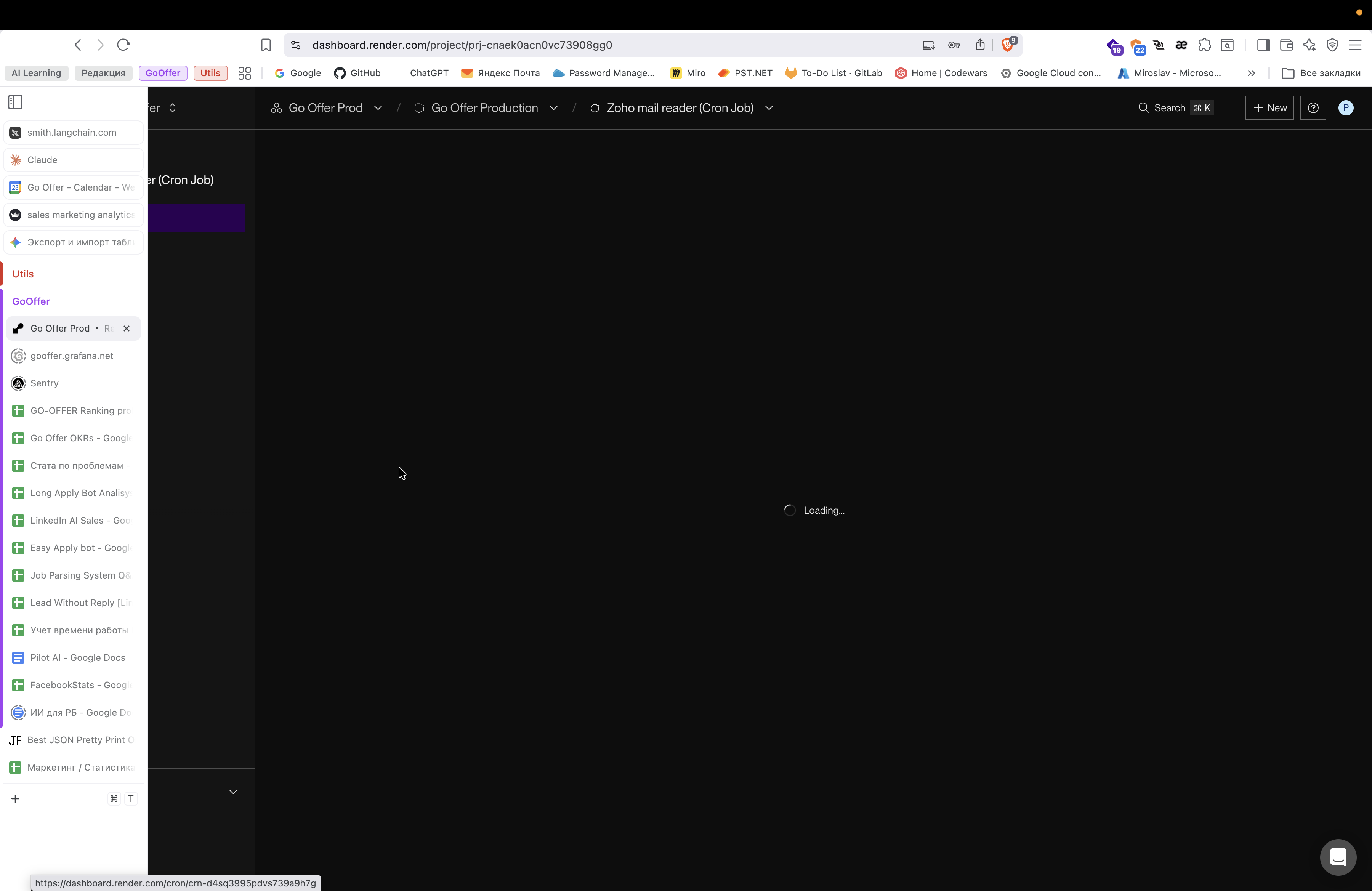 Перейдите в проект Go Offer Prod в дашборде Render.