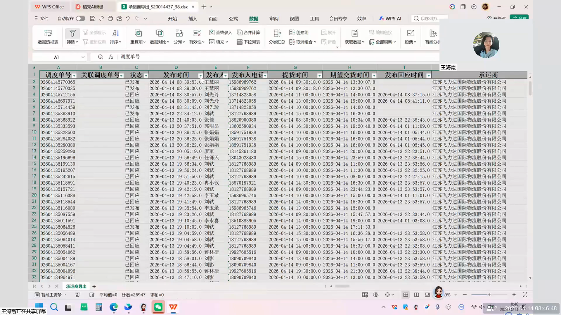 由于存在一票多单(比如一个拖运单对应多个承运单)的情况,导出后需要使用表格软件清理数据。