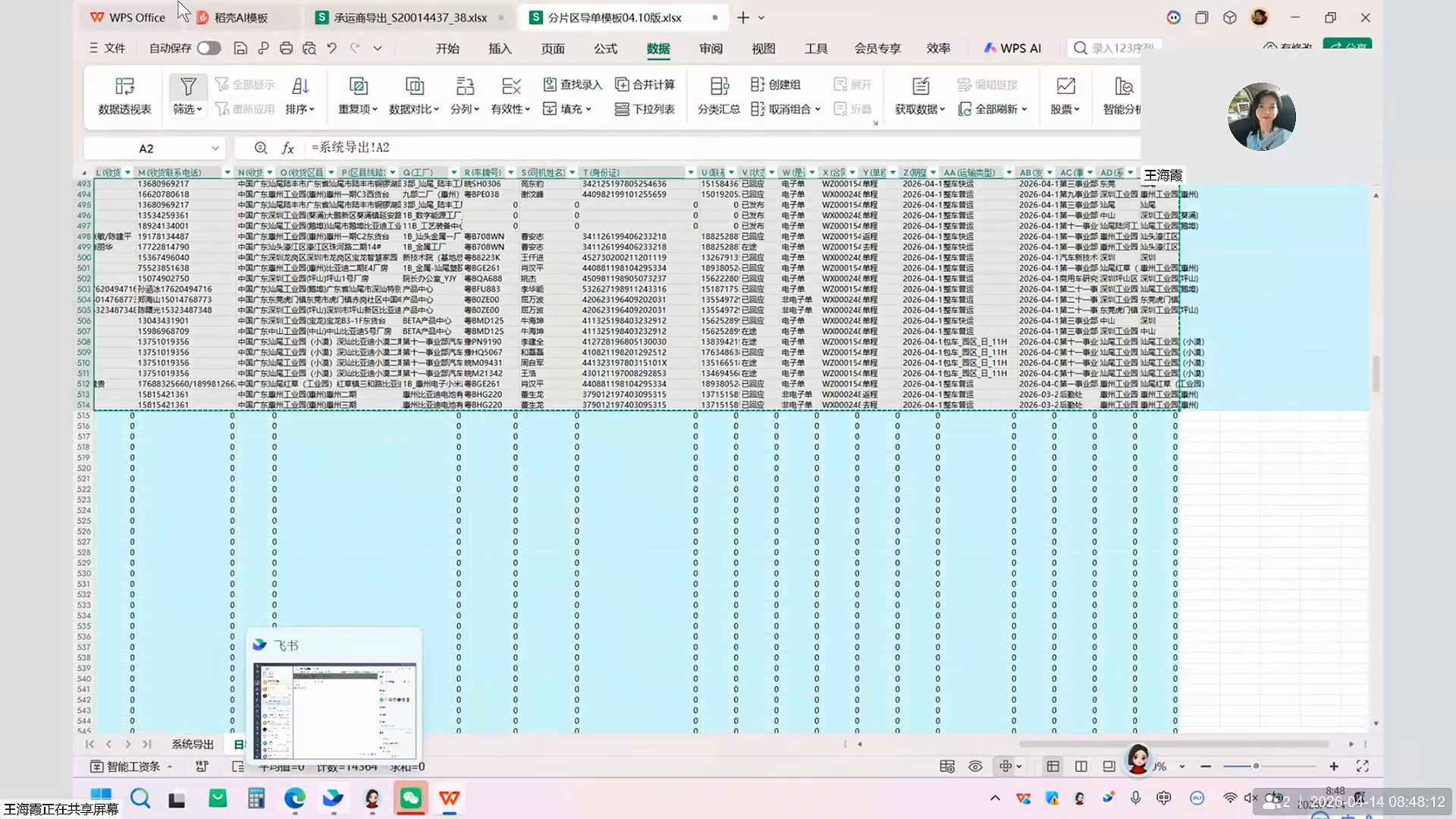 学习如何从 TMS 系统中导出当天的物流订单明细,在 WPS 中去除重复项,随后导入至飞书多维表格中进行发货片区、团队以及线路余量的系统校验。
