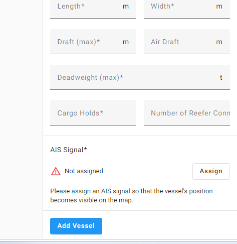 Creating a vessel is necessary to plan your voyages and book stops in terminals.