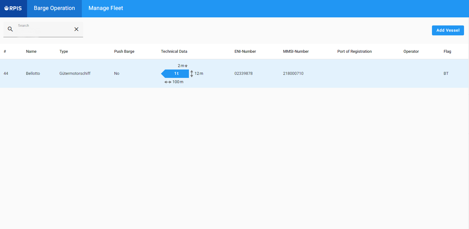 In short: As a barge operator, you can manage your fleet, add vessels, and delete them in RPIS.