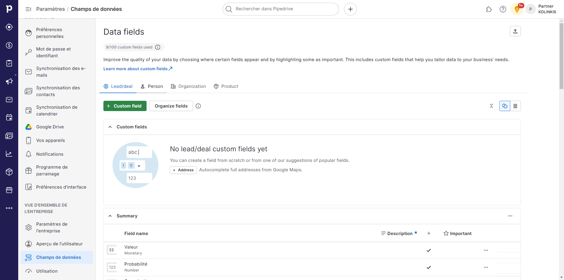 Vérifier les champs personnalisés : Alignez les colonnes de votre fichier avec les champs personnalisés dans Pipedrive pour garantir une importation fluide et précise.