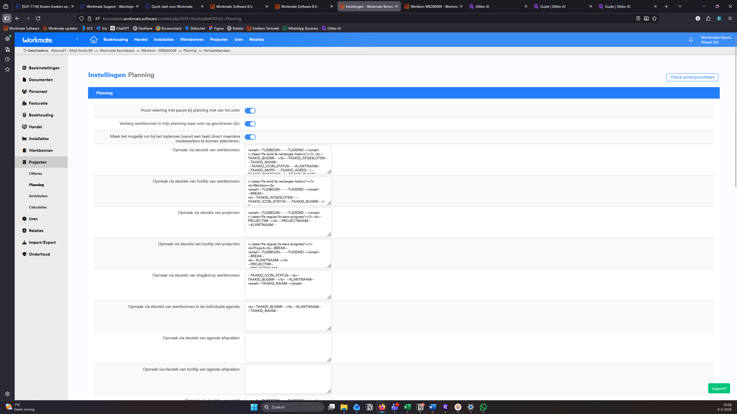 We laten zien hoe je via de instellingen de velden en tooltips van verschillende plantypes, zoals werkbonnen, projecten en afspraken, kunt wijzigen.