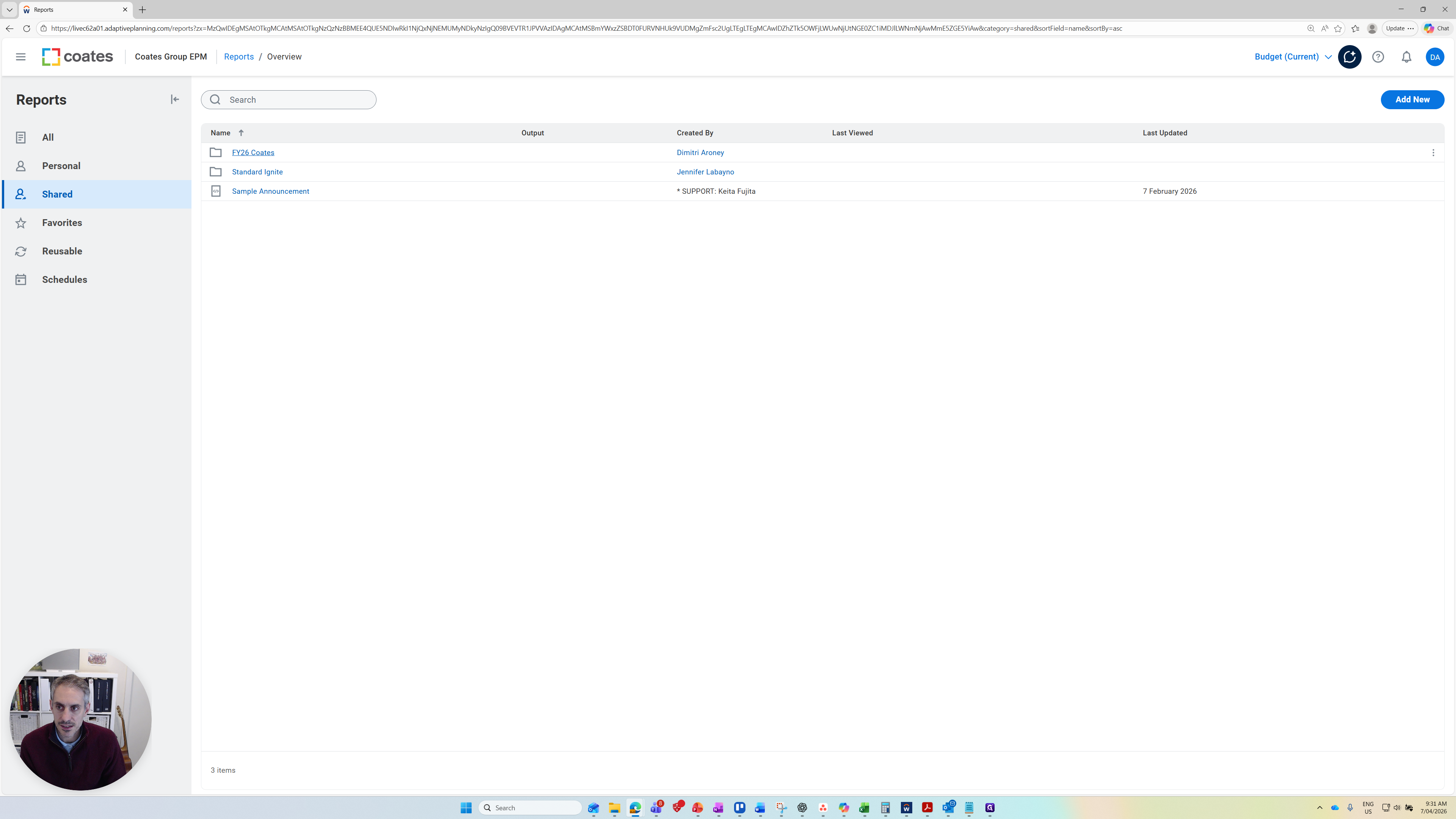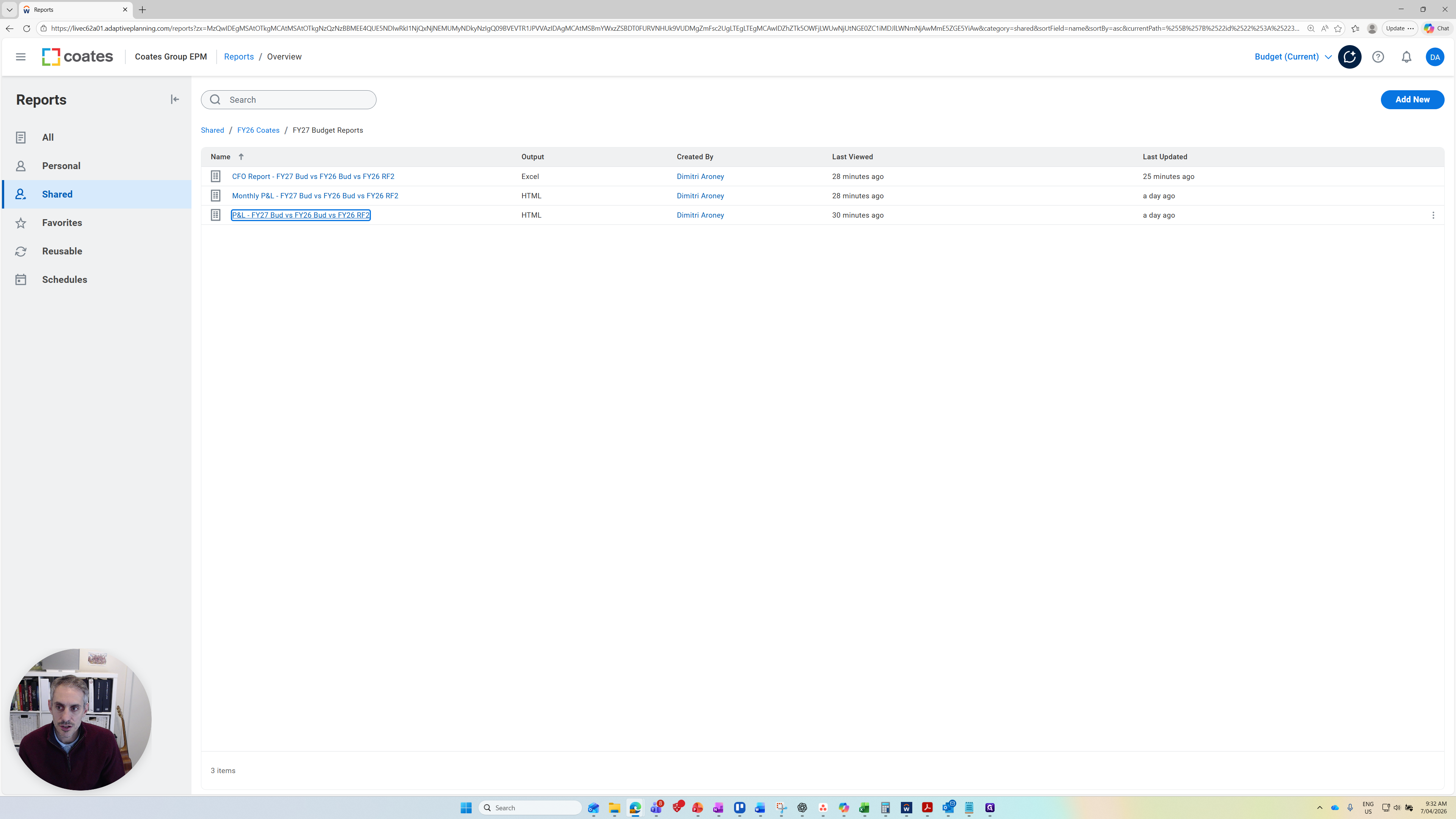 Potentially, more will be added as we continue through the budget session. These are the standard reports built so far. This does not prevent you from creating more reports in the future. There are three reports available. The main one I suggest is the P&L report at the bottom.