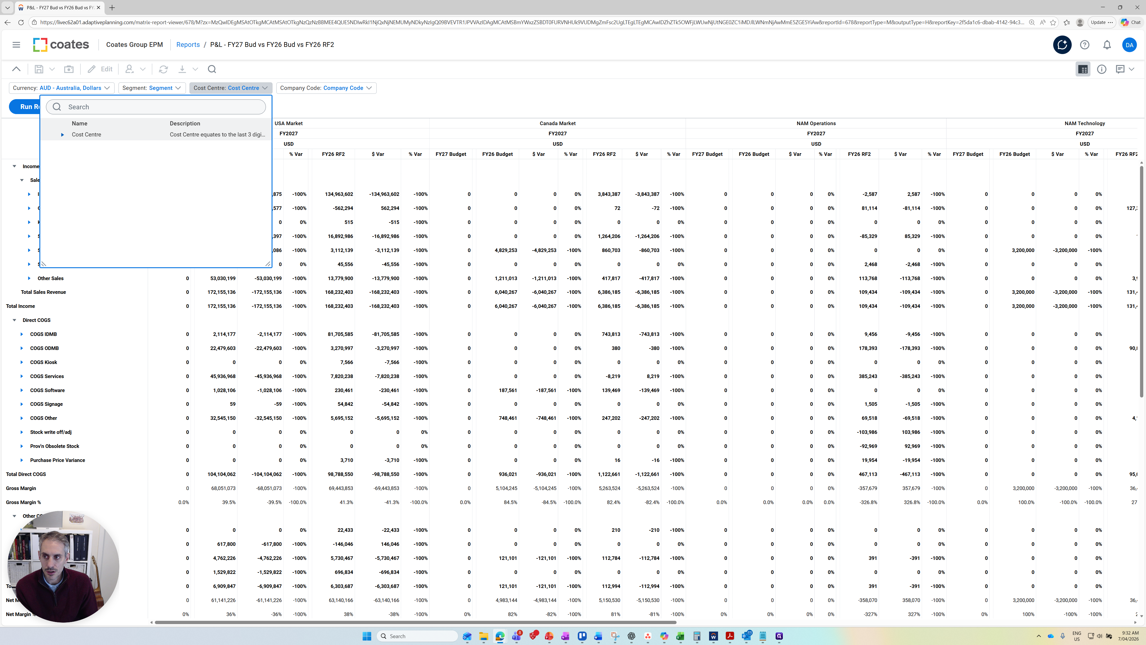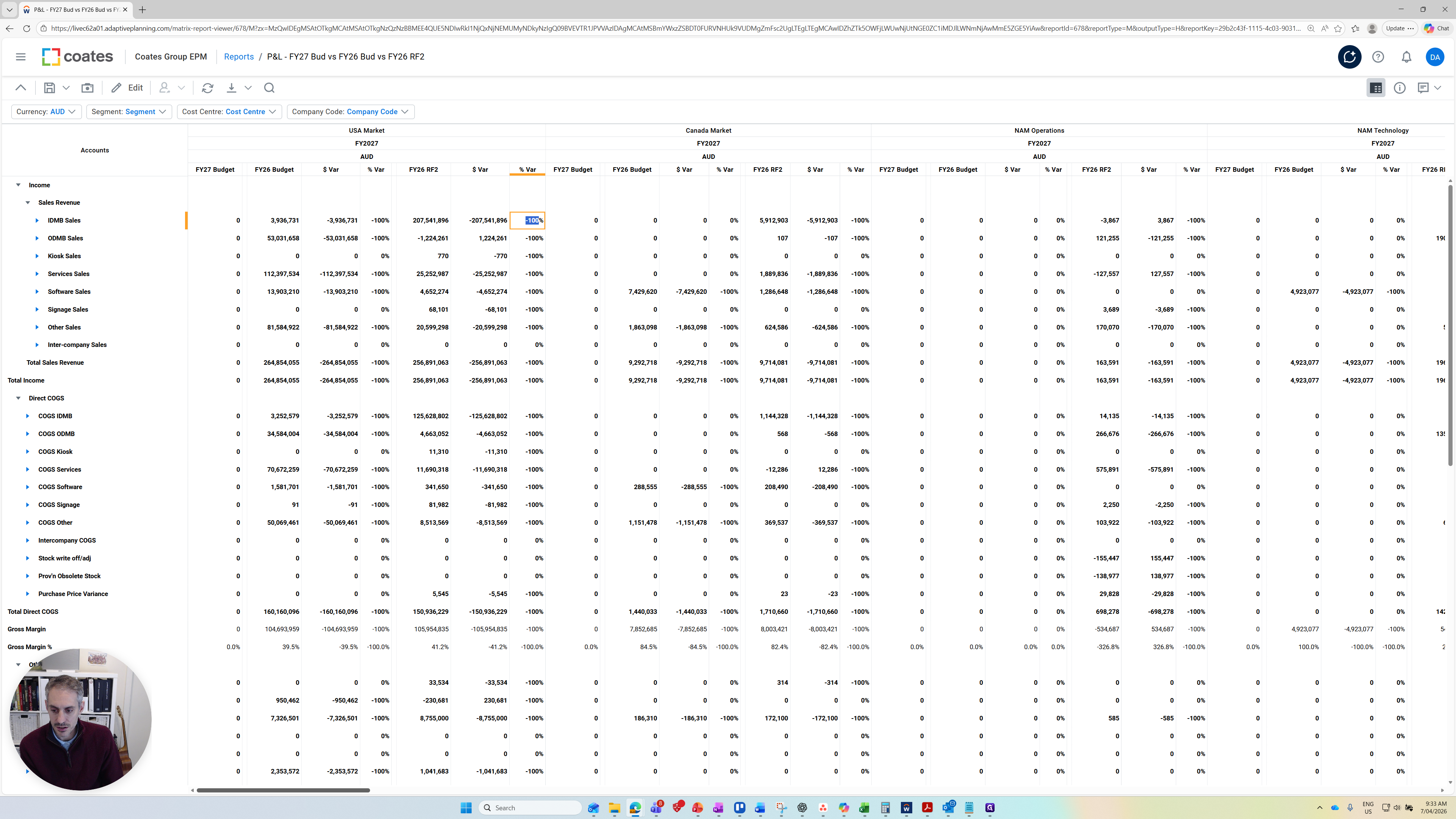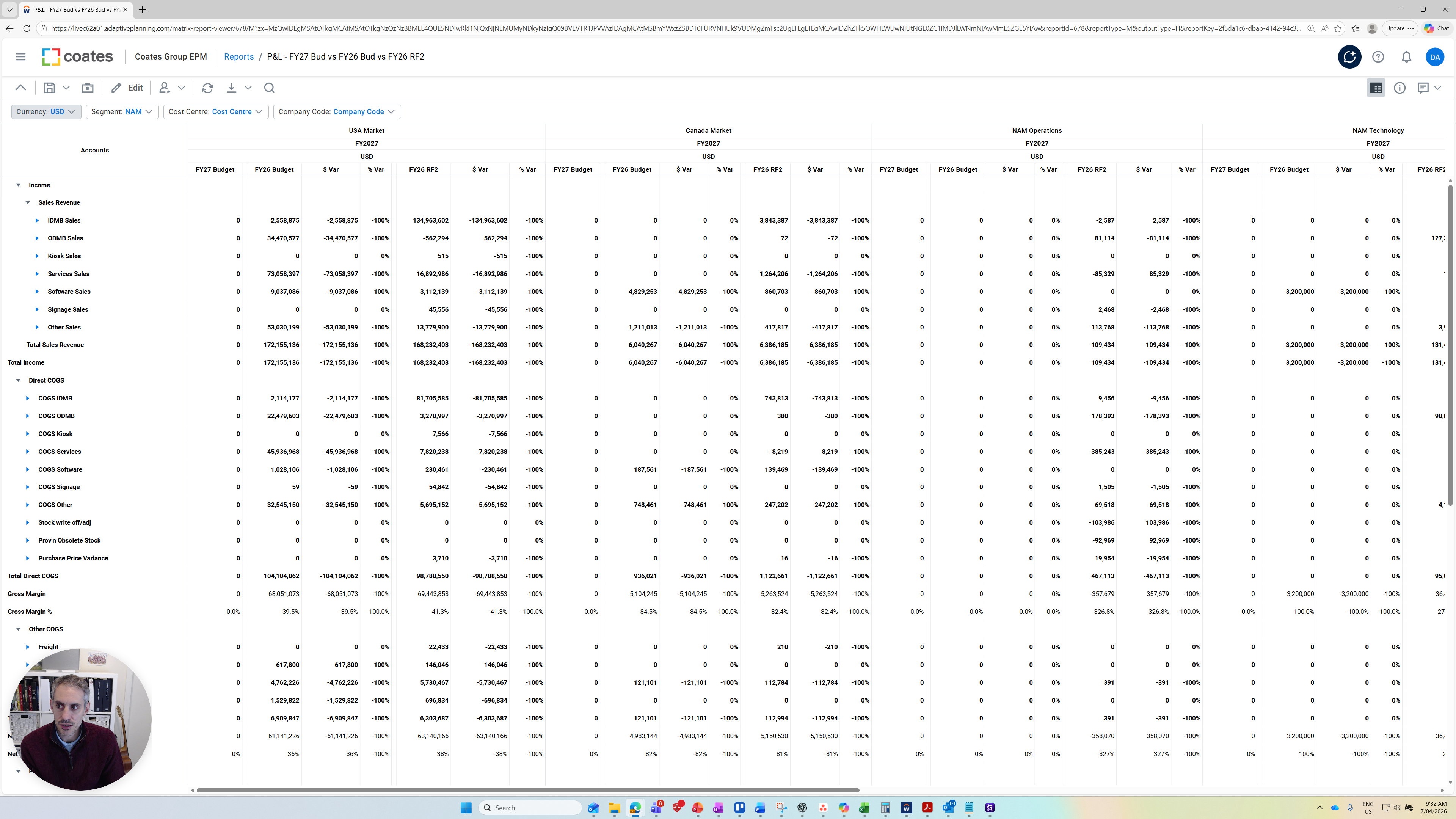The columns we have are FY27 Budget. At the moment, these are all zero because we haven't uploaded any budget values for income yet.