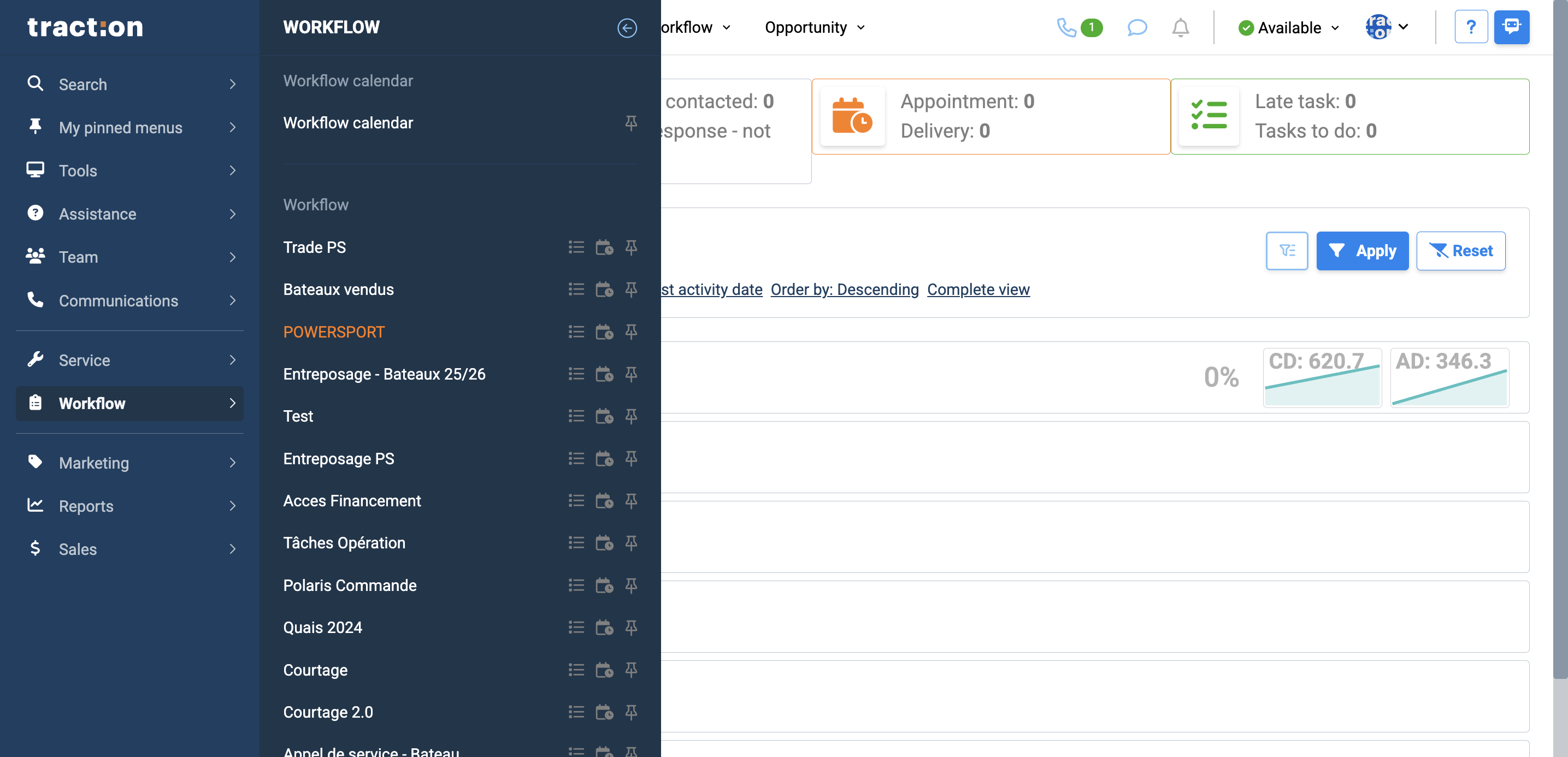 Step-by-step guide on navigating the Workflow menu to access opportunities in PowerSupport. Learn how to efficiently find and manage your cards within the platform.