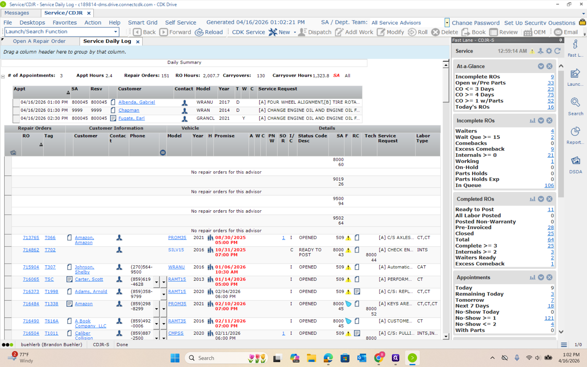 How to Access Your Service Daily Log and View Open ROs - SDL