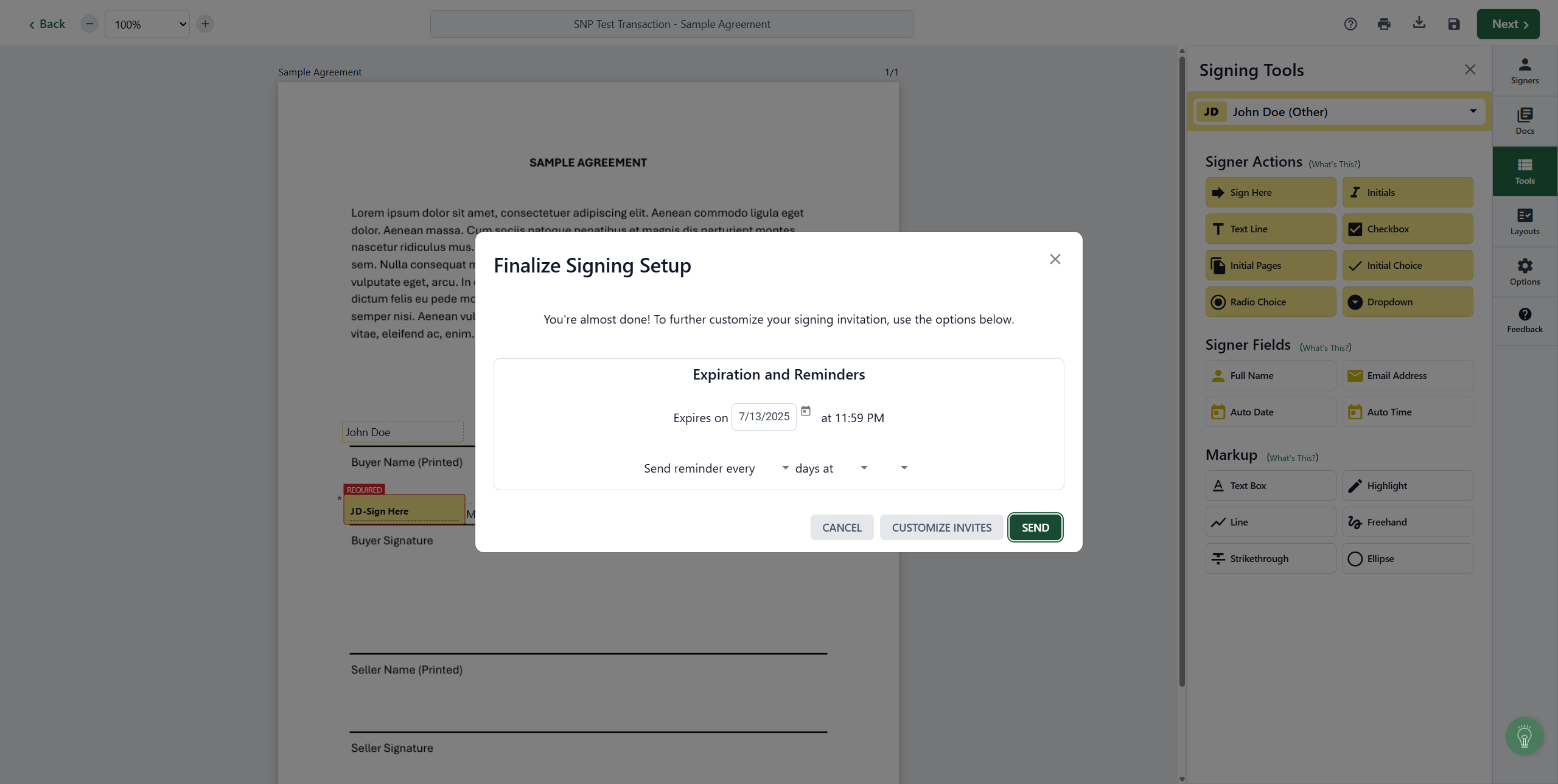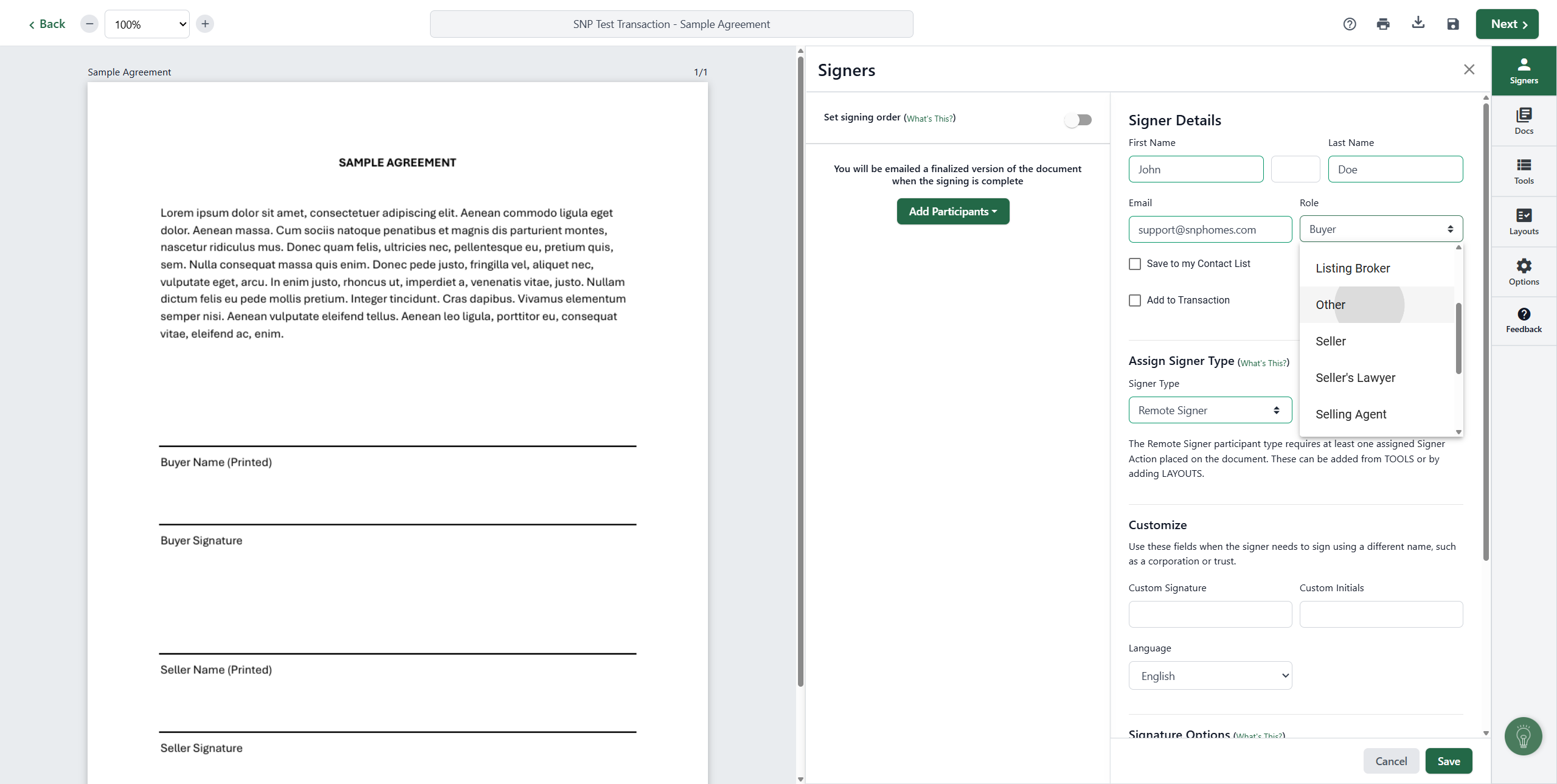 You'll go through the process of adding the new signers information and choosing their role. You can always choose OTHER under 'Role' if none of the other categories fit.