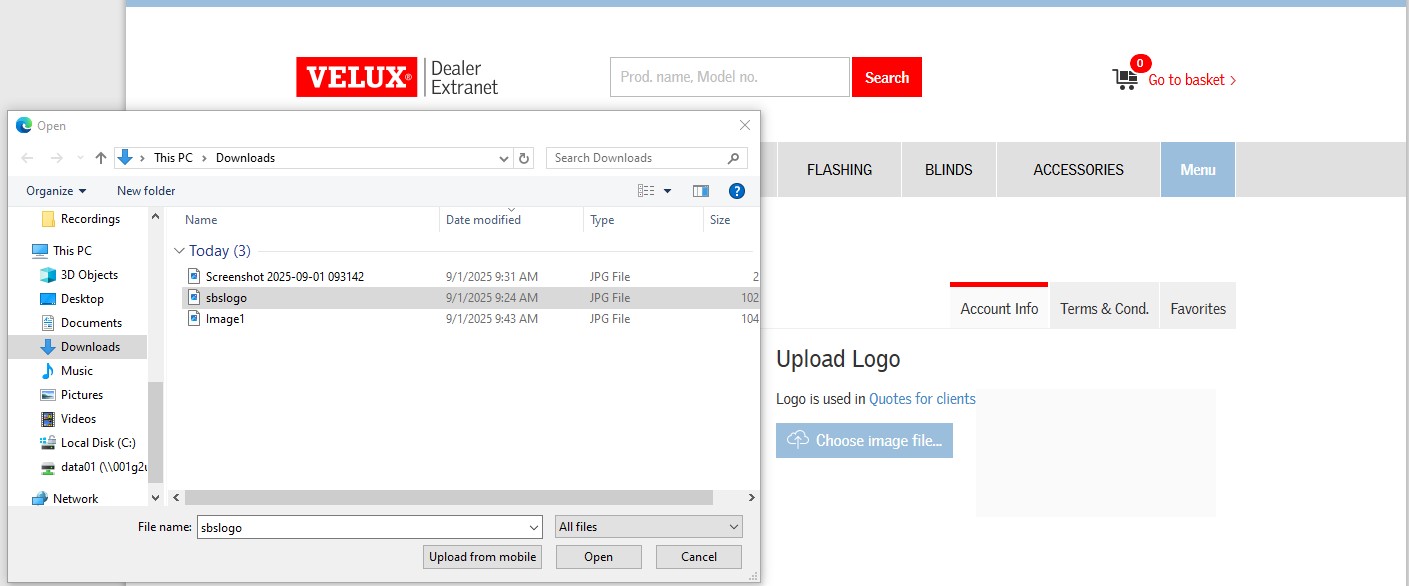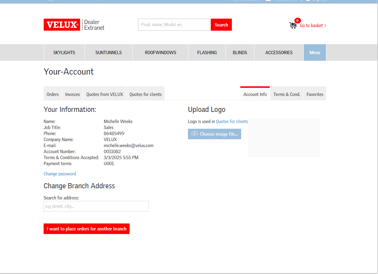 To add your company logo to client quotes, go to Account Info under your account. Navigate to Choose Image File and select your company logo.
