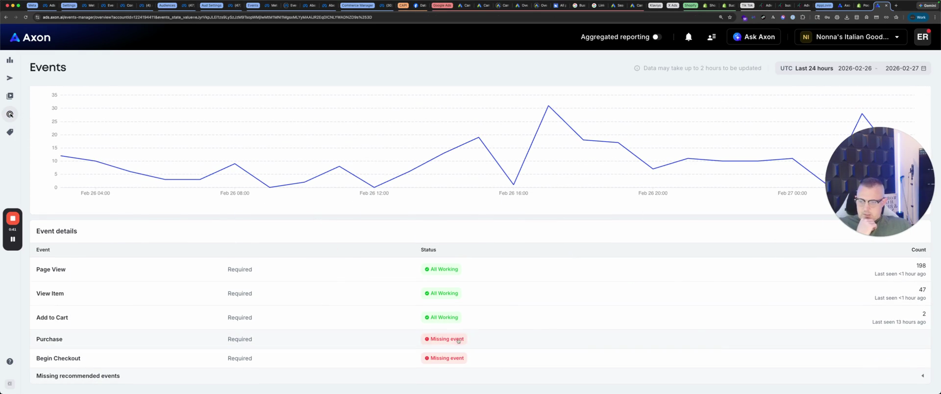 We have events. We're missing events here. We’re missing a purchase, so we need to make sure we’re not.