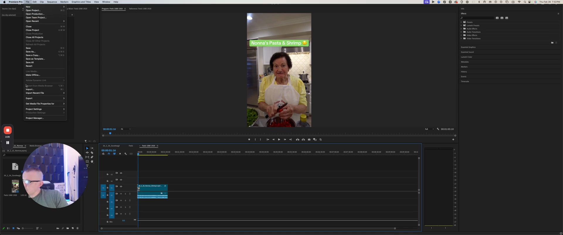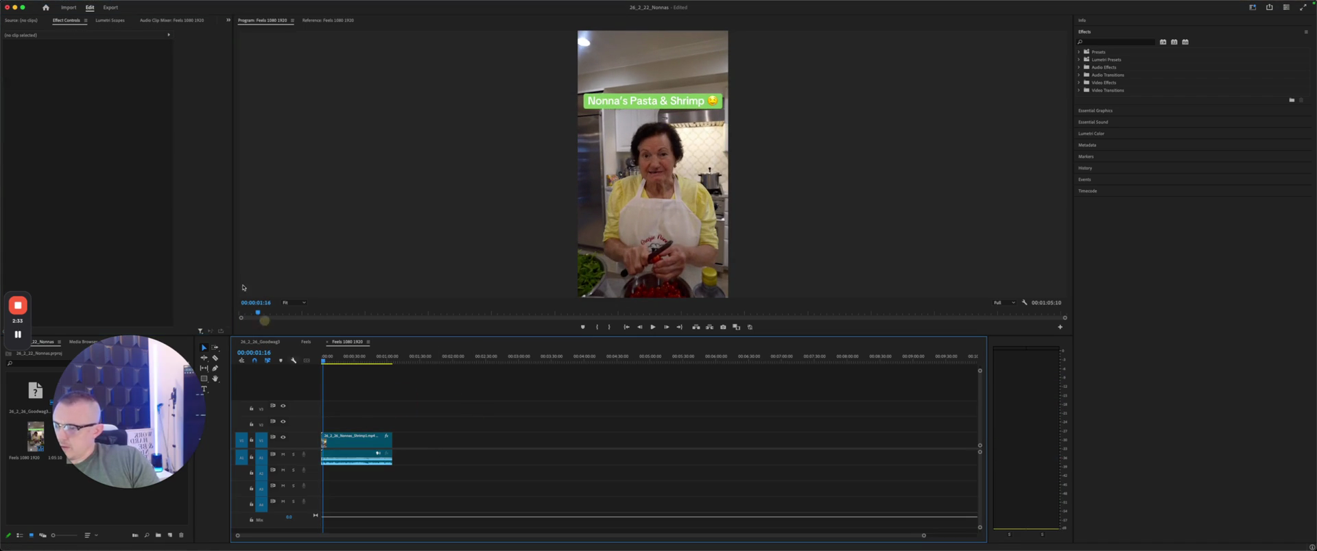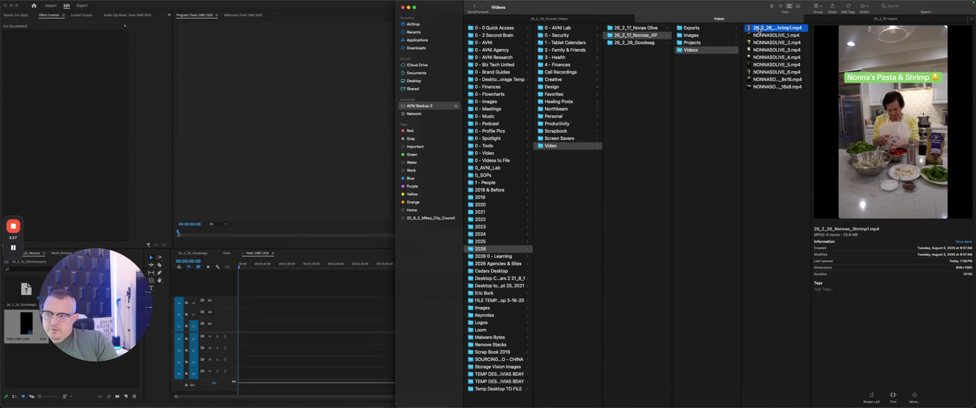 I will take the video I want to use for Nona's, make sure it is properly organized in the correct files, and then drop it in here.